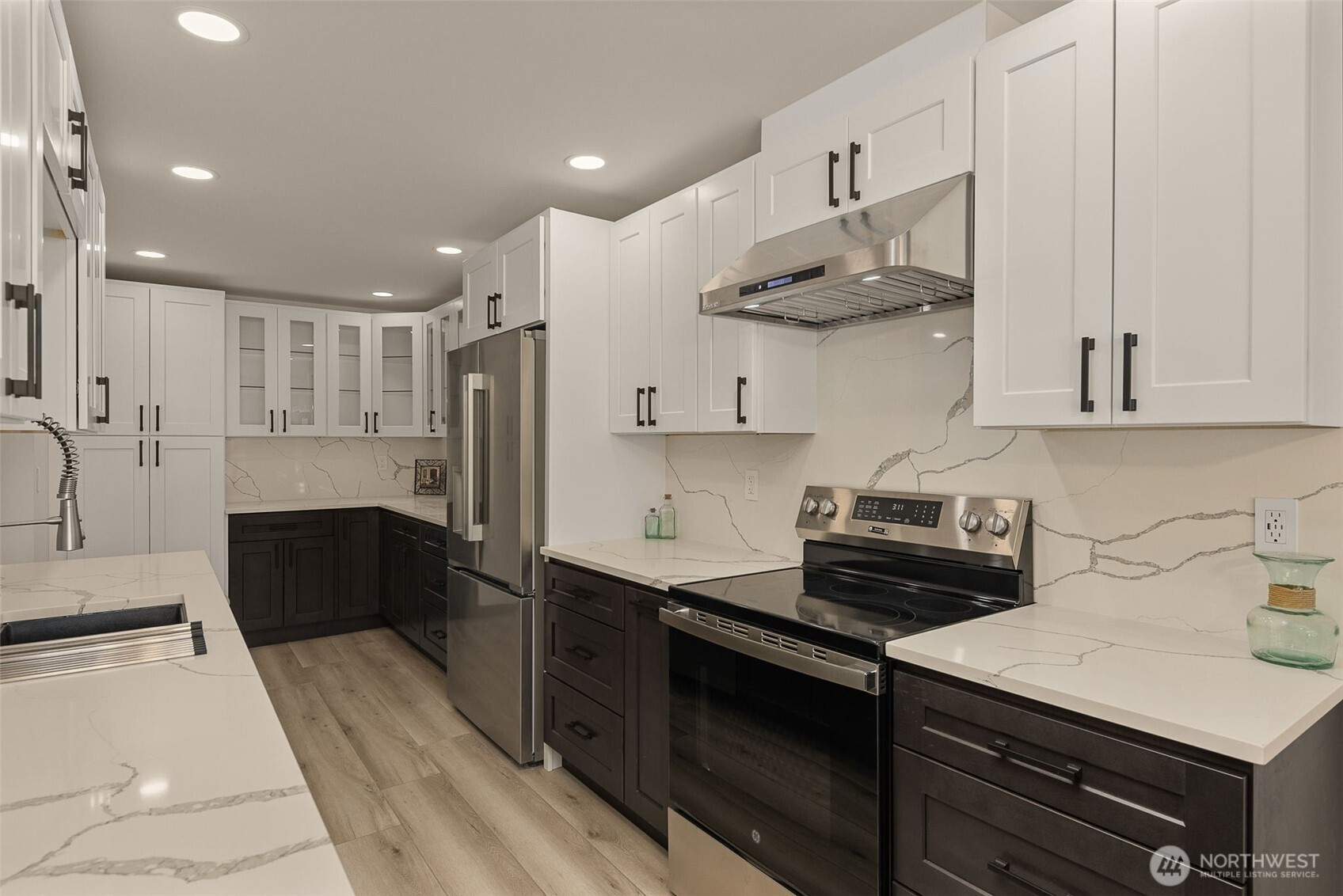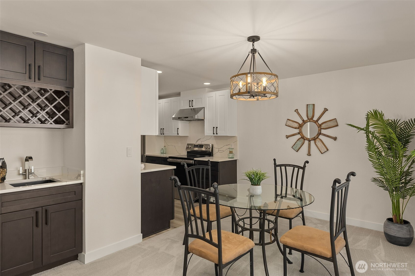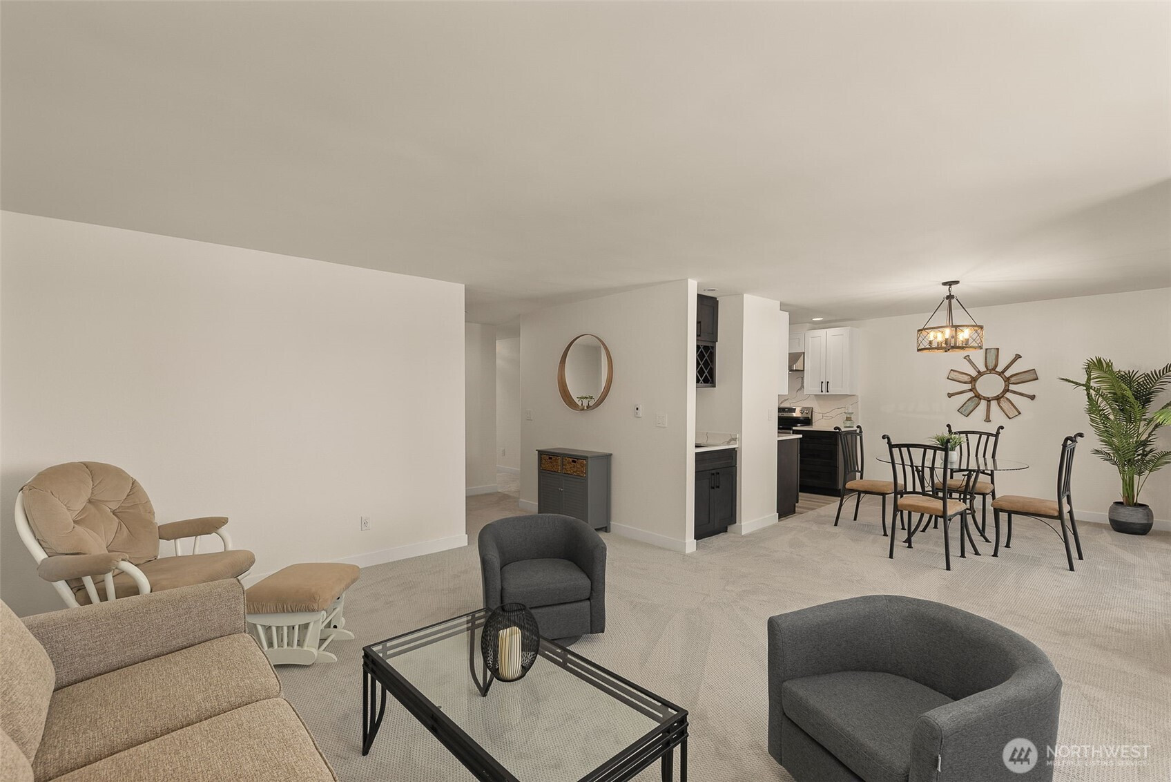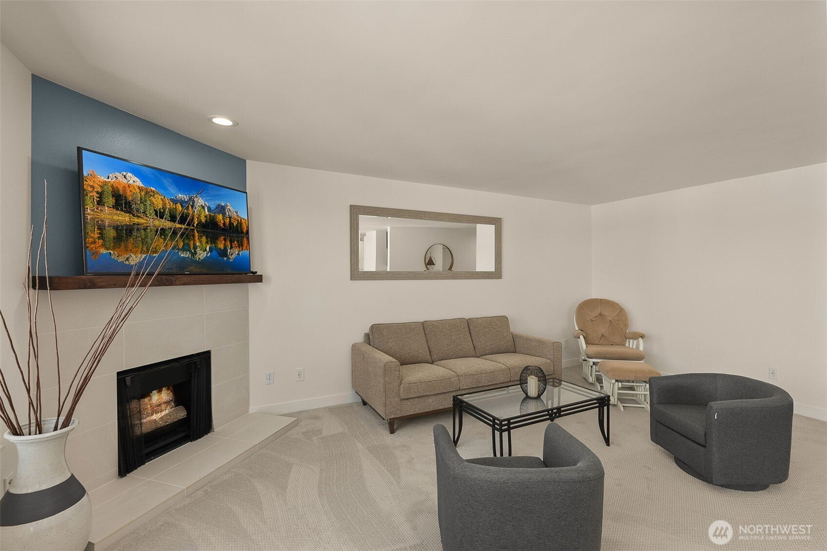 Beautifully Updated Top floor 2bed/1.75 bath/1354 sq ft condo features: New kitchen cabinets-w/pantry cabinet, Quartz counter tops and backsplash, all new appliances incl. washer/dryer, new bathrooms, flooring, doors, trim and paint, updated fireplace surround, and wet bar with cabinet and wine rack. Additional features incl. gas FP, laundry room w/cabinets, nice balcony/deck off dining area, sauna located on 3rd floor, outdoor pool, Includes 1 parking space in shared garage w/elevator access from garage = NO STAIRS, Located within 10 min. N/S bound I-5, Fabulous views from LR, DR, and bedrooms. Seller to Pay 1 yrs worth of HOA dues ($780 a month = $9360).