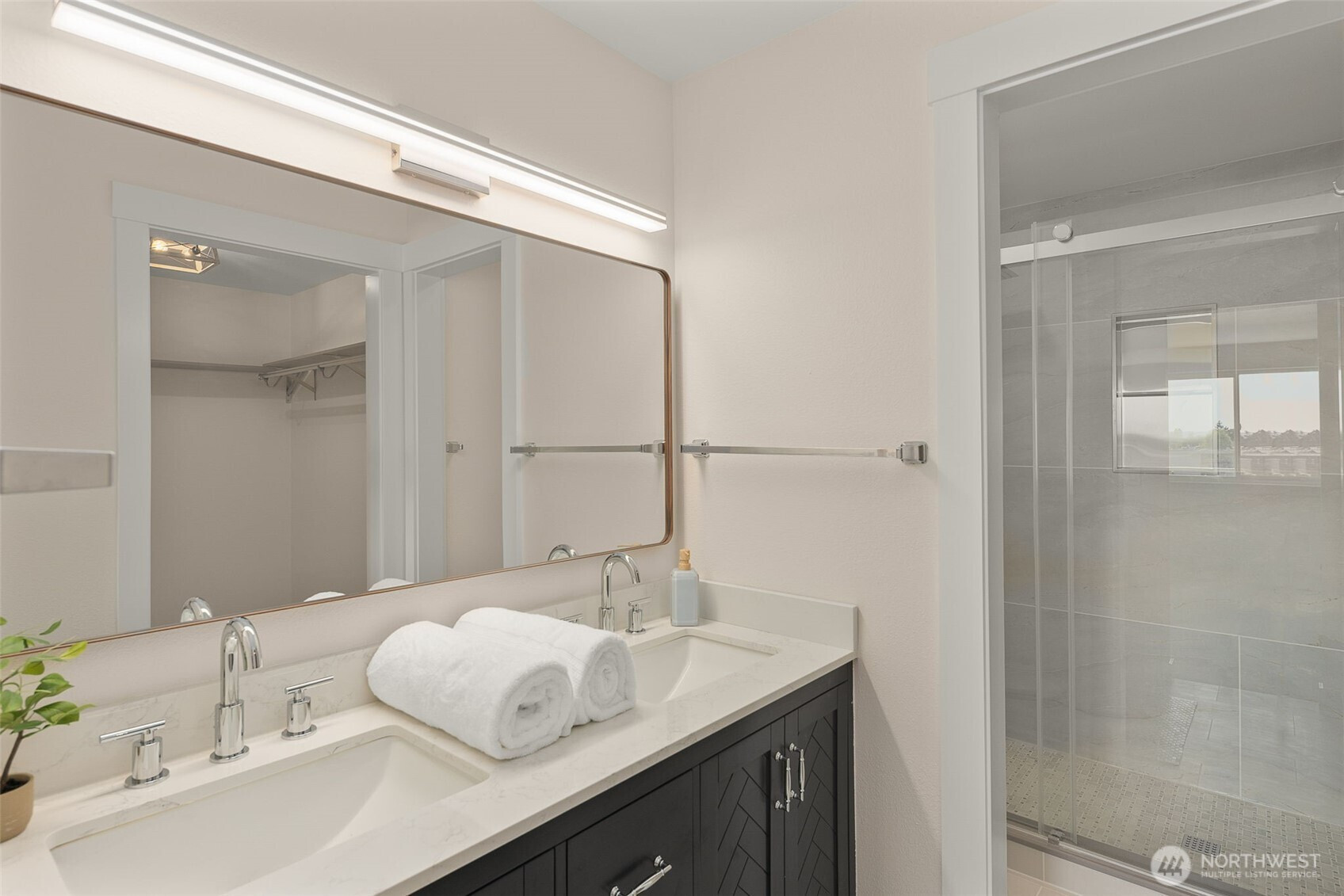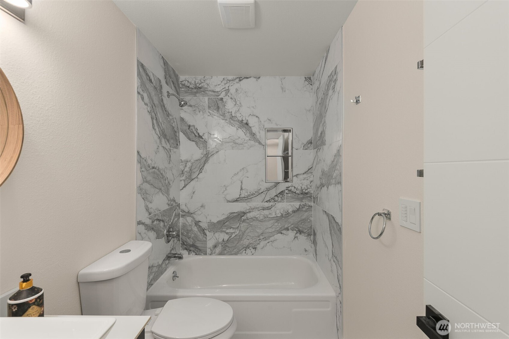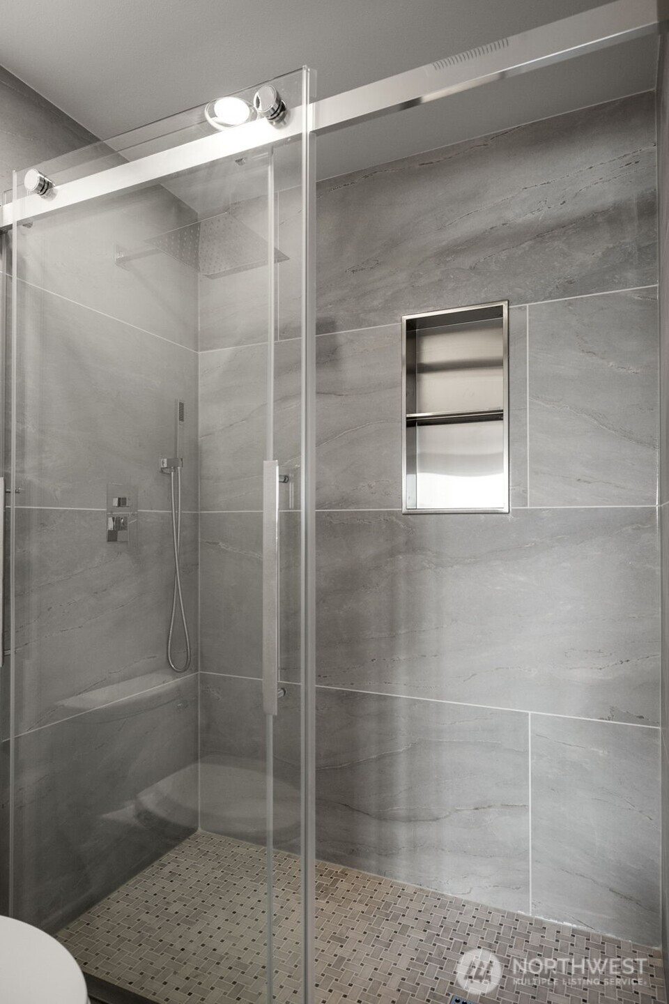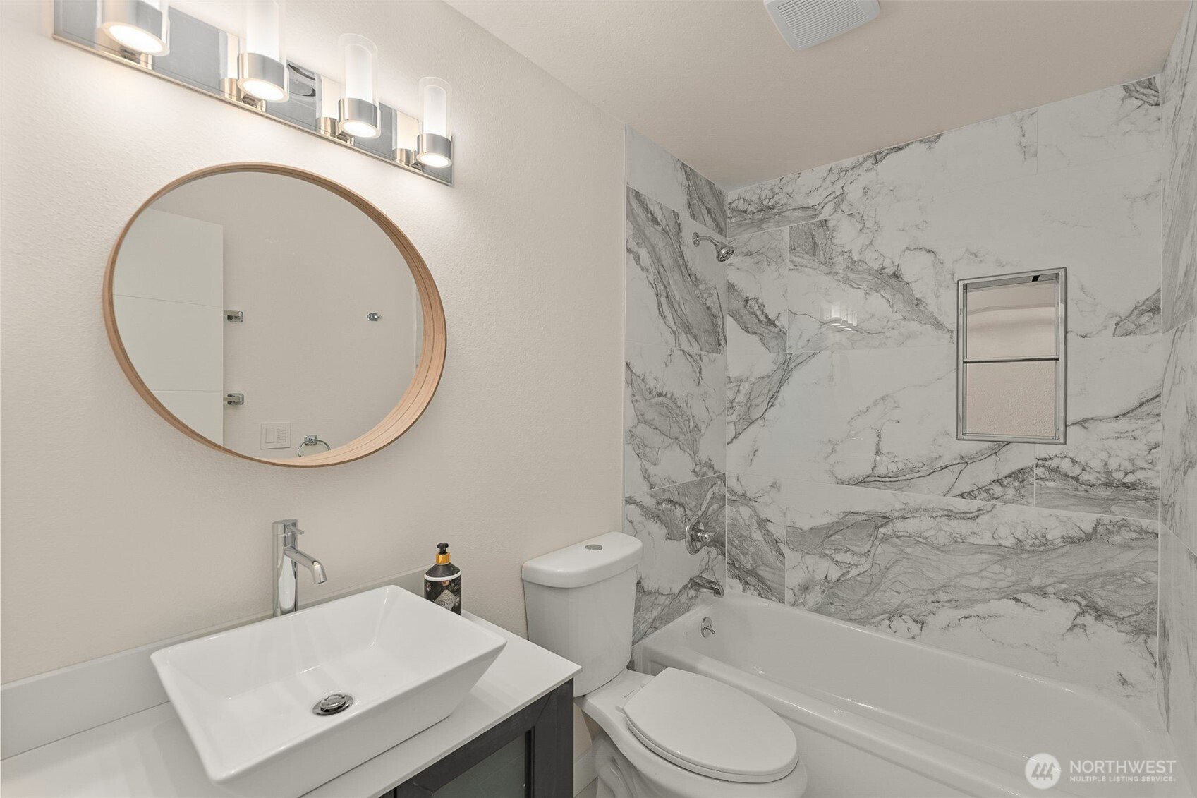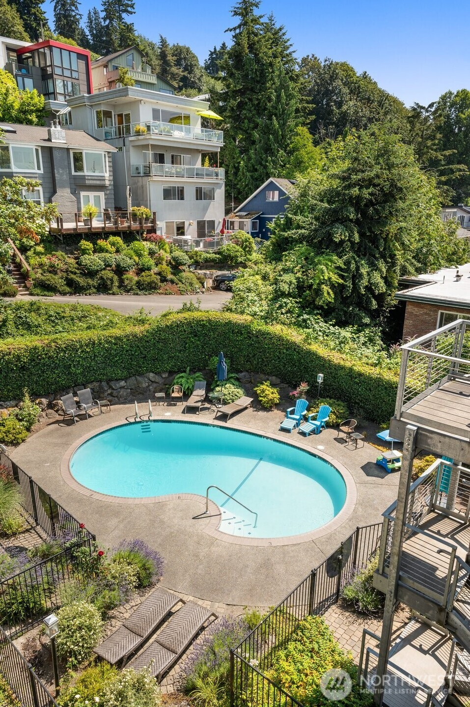 Beautifully Updated Top floor 2bed/1.75 bath/1354 sq ft condo features: New kitchen cabinets-w/pantry cabinet, Quartz counter tops and backsplash, all new appliances incl. washer/dryer, new bathrooms, flooring, doors, trim and paint, updated fireplace surround, and wet bar with cabinet and wine rack. Additional features incl. gas FP, laundry room w/cabinets, nice balcony/deck off dining area, sauna located on 3rd floor, outdoor pool, Includes 1 parking space in shared garage w/elevator access from garage = NO STAIRS, Located within 10 min. N/S bound I-5, Fabulous views from LR, DR, and bedrooms. Seller to Pay 1 yrs worth of HOA dues ($780 a month = $9360).