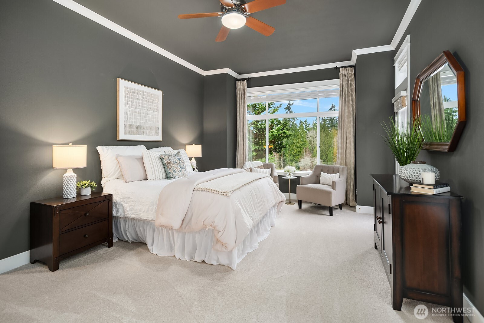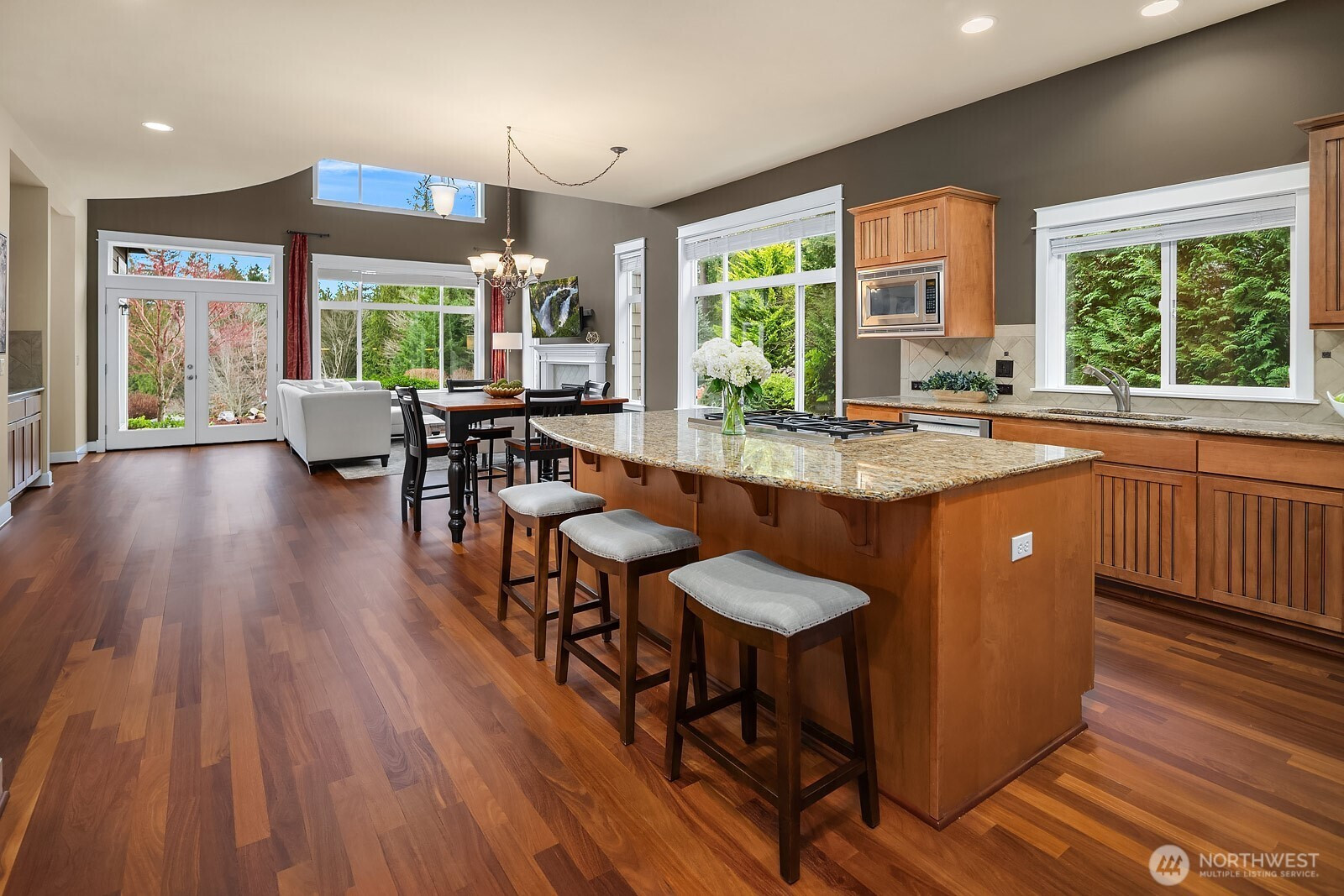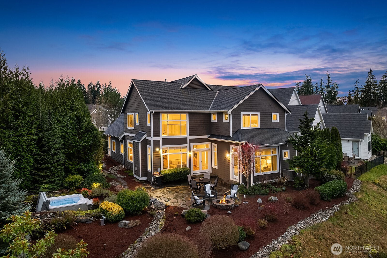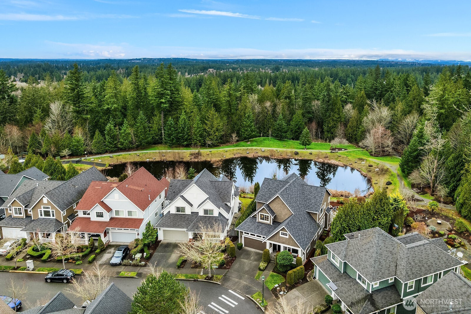 Set on one of the most exceptional lots in Issaquah Highlands, overlooking a tranquil pond with breathtaking views, this impeccably maintained home offers a rare blend of privacy, light, and livability. Vaulted ceilings and walls of windows flood the home with natural light. The main-floor primary suite is a sanctuary with incredible views of the backyard and features a spacious walk-in closet and spa bath. Also on the main level are a private office and an open-concept great room where the kitchen, dining area, and expansive family room come together seamlessly, ideal for relaxed living and entertaining. A versatile bonus space on the main floor offers flexibility for a home gym, hobby room, or abundant storage. Upstairs, a second primary suite with ensuite bath provides an ideal setup for guests or multi-generational living, along with an additional bedroom, full bath, open bonus loft, and convenient laundry room. Step outside to a one-of-a-kind backyard retreat, set on one of the largest lots in the Highlands. Thoughtfully landscaped for privacy and beauty, this serene outdoor space features a hot tub, built-in firepit, and lush plantings, all perfectly positioned to take in the peaceful pond setting, your own private escape. Exceptional storage is found throughout the home, including a discreet third garage bay, ideal for bikes, outdoor gear, tools, and seasonal items. Enjoy nearby parks and trails, top-rated Issaquah schools, and quick access to I-90 for an easy commute.