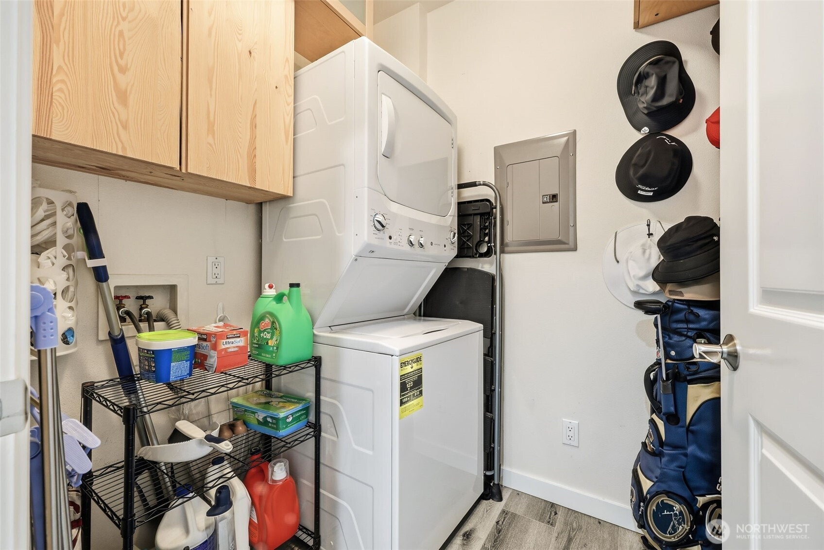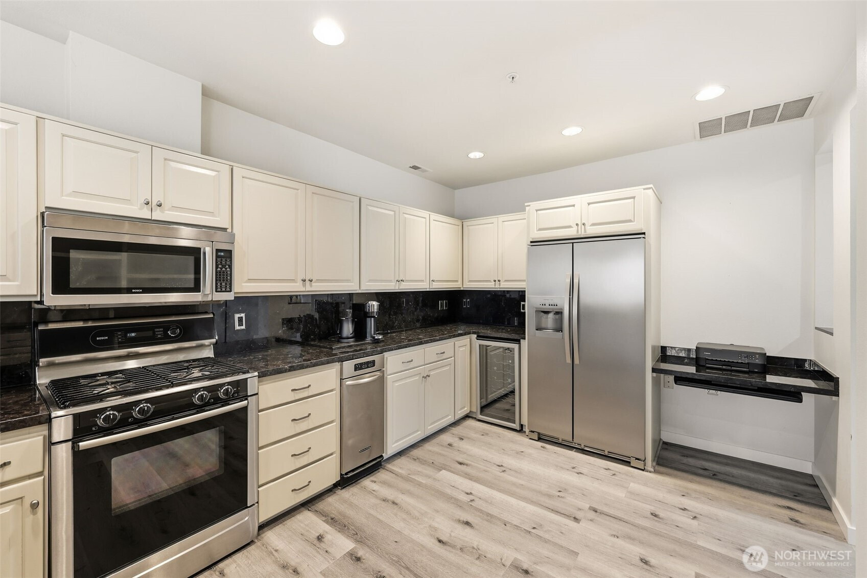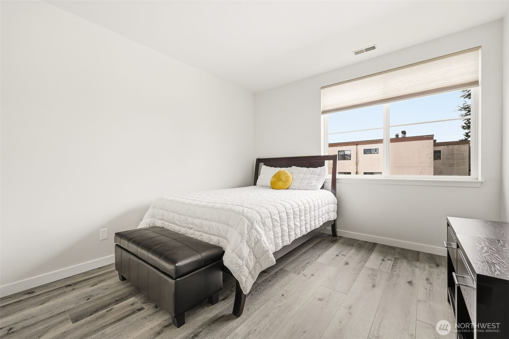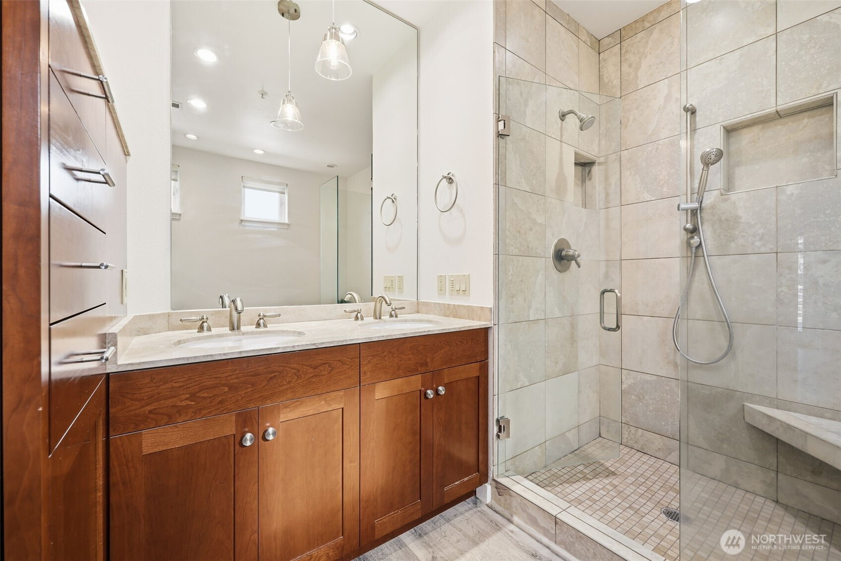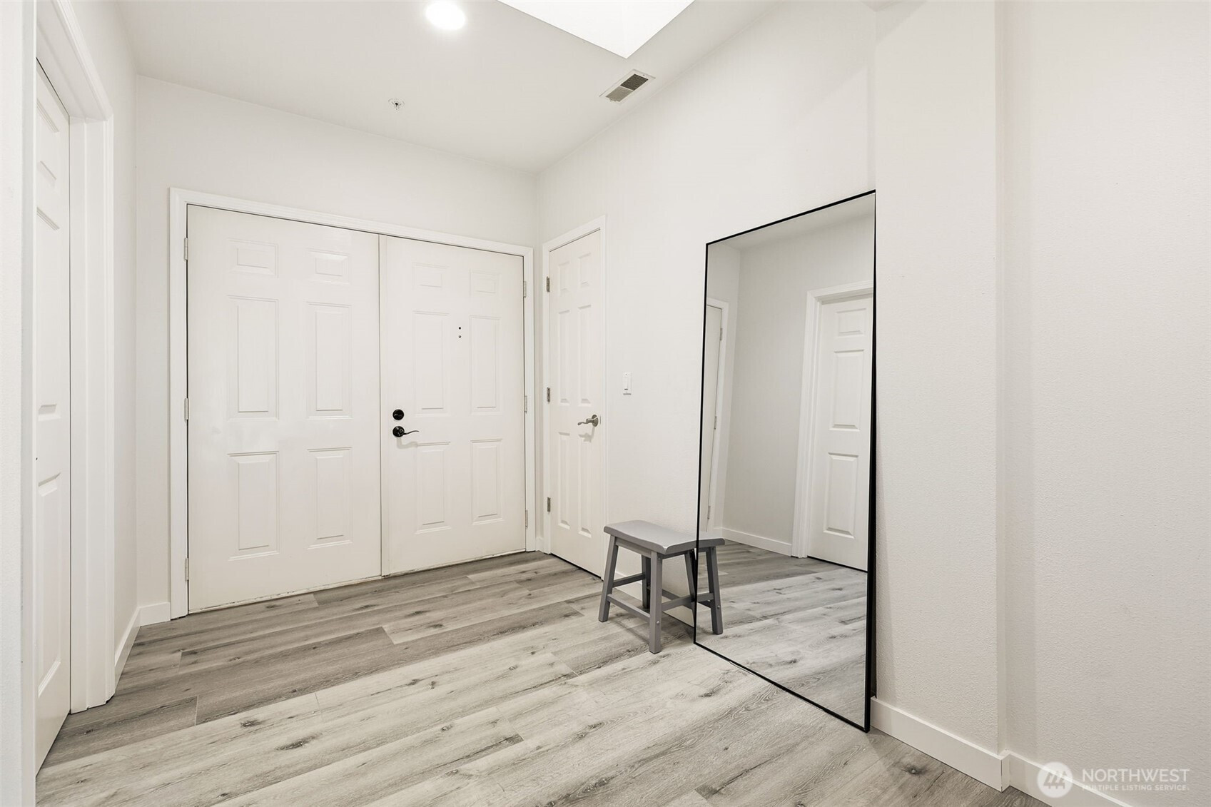 Experience the rare intersection of panoramic serenity and modern sophistication in this premier top-floor corner unit. Positioned to capture partial Puget Sound views and lush canopy vistas, this residence offers a level of privacy and light seldom found in urban living. Every detail has been curated to provide a move-in-ready sanctuary optimized for a refined lifestyle. The open-concept living area features dramatic vaulted ceilings that create an airy, expansive atmosphere. A brand-new modern chandelier serves as the focal point, casting a glow over the sophisticated interior. Two new glass doors lead to your private balcony, bridging the gap between the living room and coastal air. High-end updates include new HOA-approved Luxury Vinyl Plank (LVP) flooring throughout, ensuring a quiet-zone environment. This high-performance home includes 2 dedicated secured parking spaces, elevator access, and a gas fireplace. Managed with excellence, the building features secured entry and a prime location within the Windward community. This is a strategic asset for those who value privacy, serenity, and coastal convenience. Situated in the heart of Des Moines desirable waterfront corridor, you are minutes from the regions best lifestyle assets.