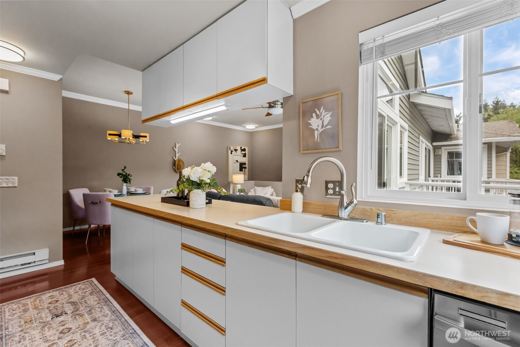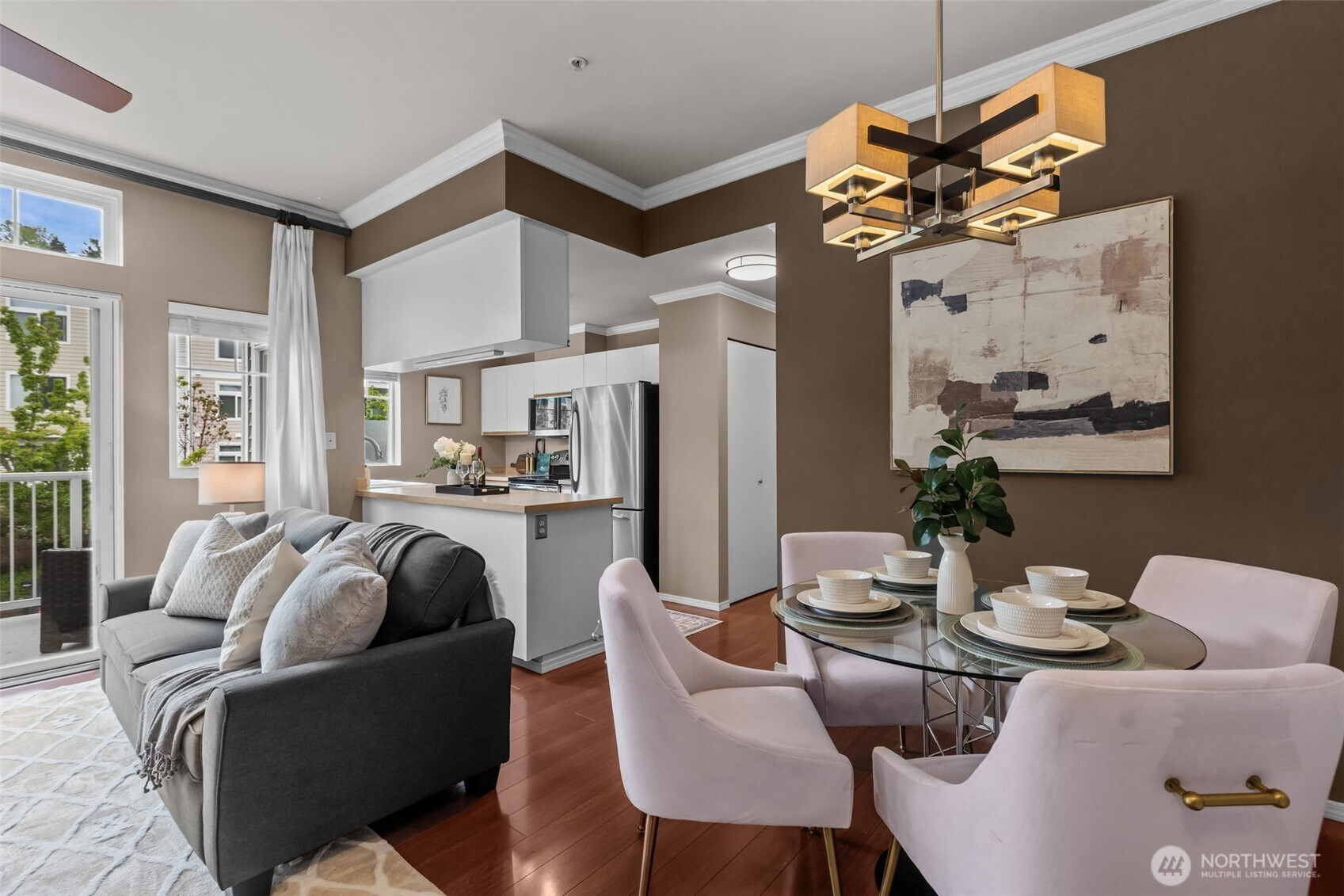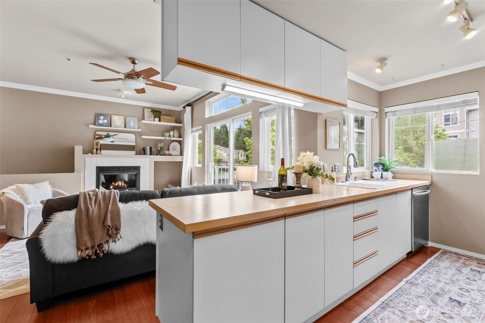 Welcome home to this beautiful, low maintenance townhome with everything you need. Park in your own private garage with extra storage space, and make your way upstairs to an elevated one-story living space. Beautiful cherry wood floors gleam in your open concept living room with fireplace, dining room, and kitchen. Enjoy counter space for days and plenty of cabinet storage amongst your stainless steel appliances. Among your spacious bedroom and walk in closet you will find a generous bathroom with soaking tub all next to in-unit W/D, newer water heater, and extra storage. This well kept community has a special assessment the seller has already paid off and the work already completed. Enjoy the outdoors with a ½ mile walk to Green River Trail and pedestrian bridge, easy transit with just under 2 miles walk/bike to the new Kent Des Moines light rail station, easy access to I-5, and only a 10min drive to Southcenter mall and 13min drive to Seatac Airport. Come make your home in this sweet and luxurious space with a location and convenience that are truly hard to beat!