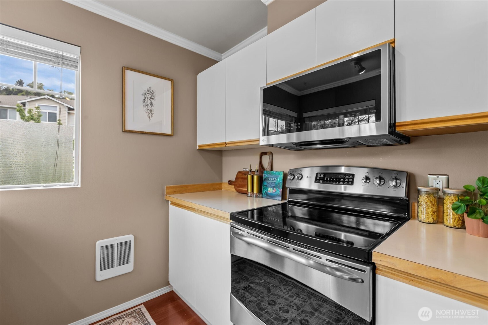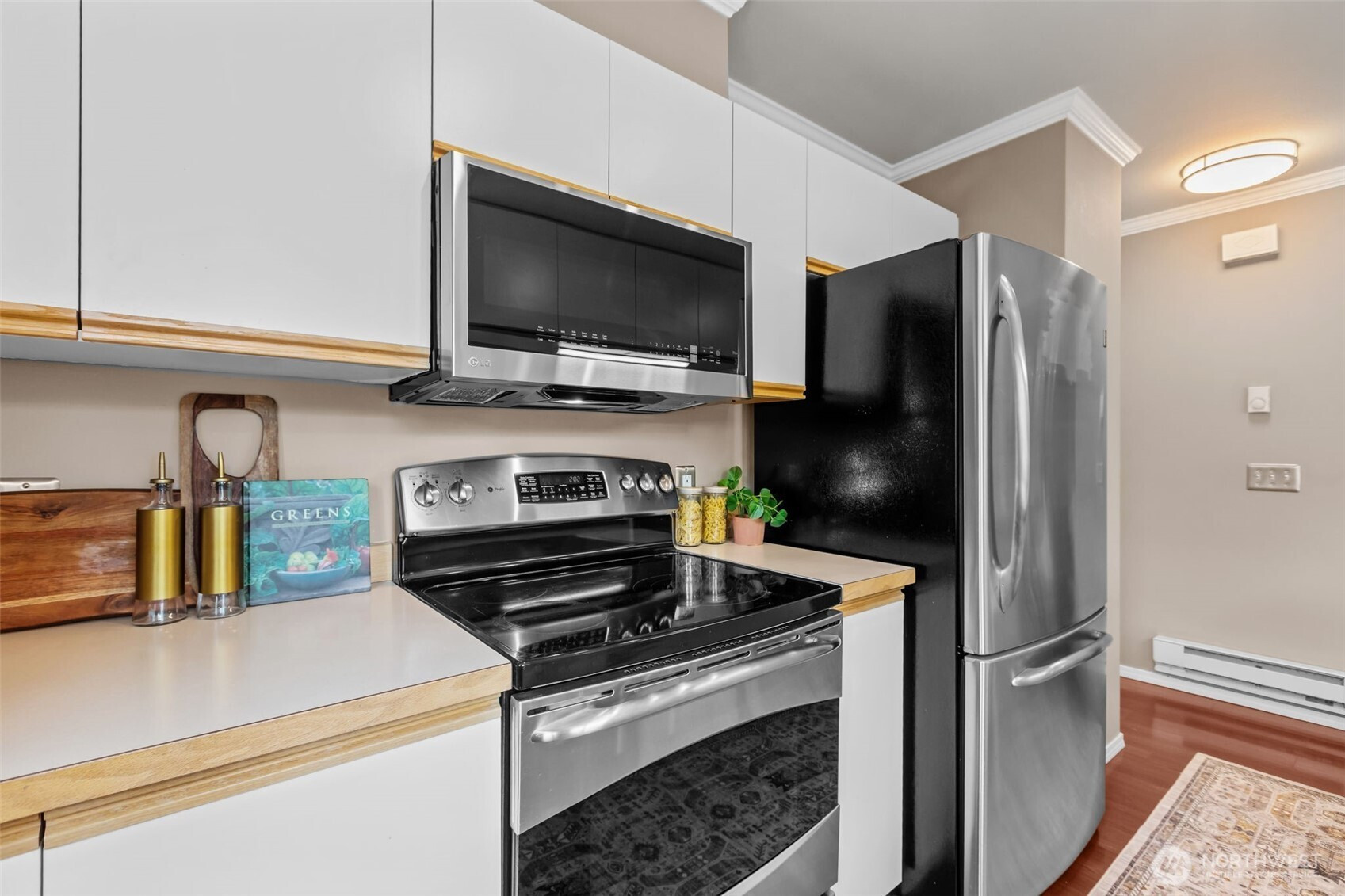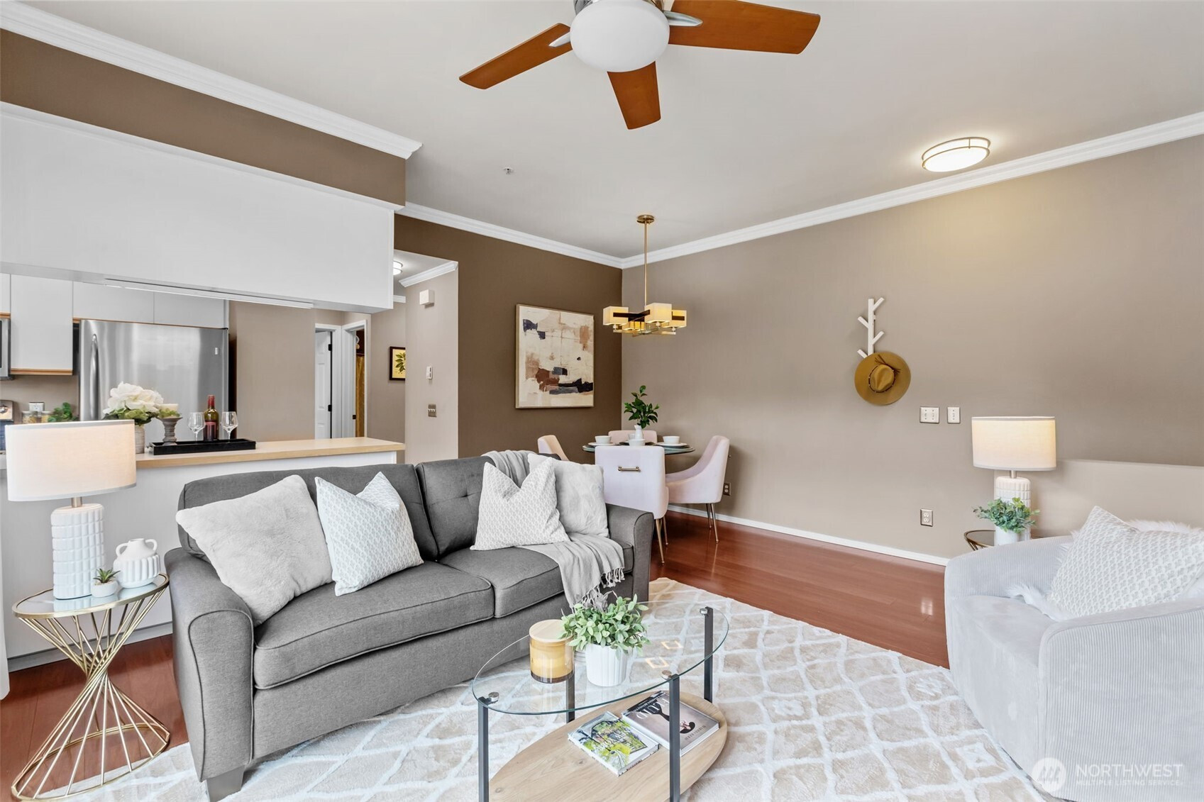 Welcome home to this beautiful, low maintenance townhome with everything you need. Park in your own private garage with extra storage space, and make your way upstairs to an elevated one-story living space. Beautiful cherry wood floors gleam in your open concept living room with fireplace, dining room, and kitchen. Enjoy counter space for days and plenty of cabinet storage amongst your stainless steel appliances. Among your spacious bedroom and walk in closet you will find a generous bathroom with soaking tub all next to in-unit W/D, newer water heater, and extra storage. This well kept community has a special assessment the seller has already paid off and the work already completed. Enjoy the outdoors with a ½ mile walk to Green River Trail and pedestrian bridge, easy transit with just under 2 miles walk/bike to the new Kent Des Moines light rail station, easy access to I-5, and only a 10min drive to Southcenter mall and 13min drive to Seatac Airport. Come make your home in this sweet and luxurious space with a location and convenience that are truly hard to beat!