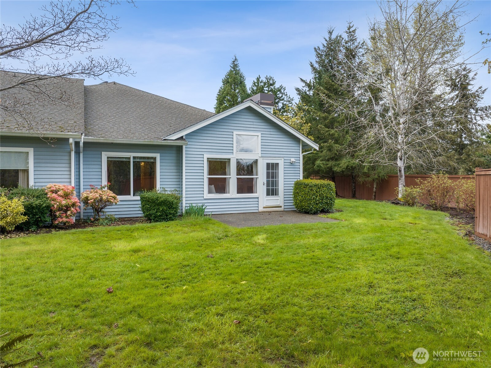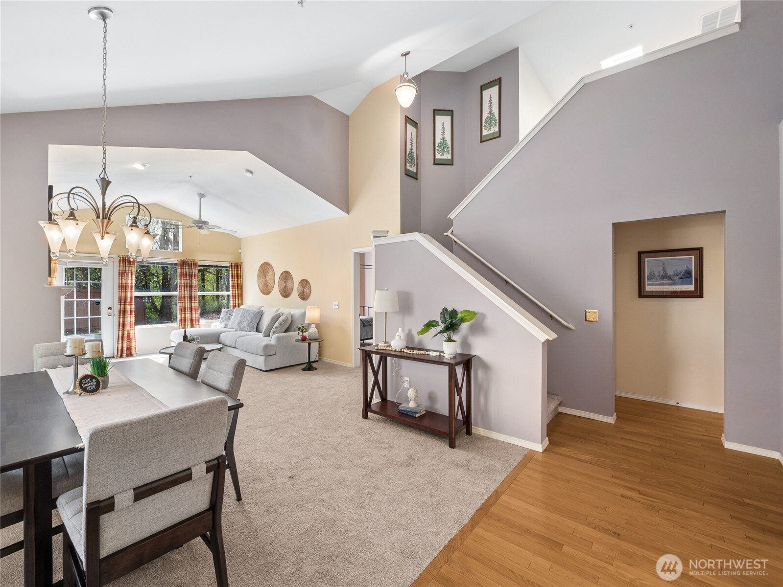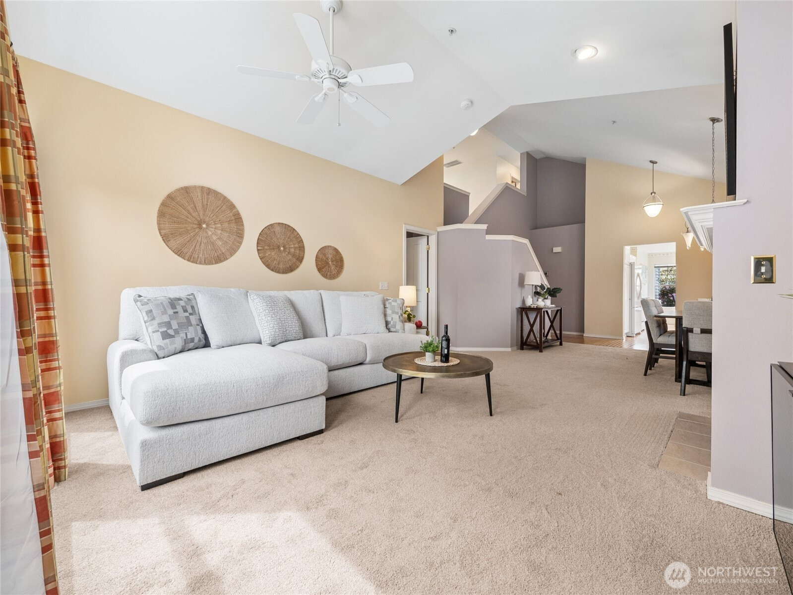 Pristine patio-style end-unit townhome in the gated community of The Pointe at Riverview, perfectly positioned against a tranquil permanent native growth area for a peaceful, natural backdrop. Located at the end of the community, on a dead-end, ensures exceptional privacy, and conveniently located next to two guest parking spots! -- This light-filled residence lives large with soaring vaulted ceilings, abundant windows, and quality finishes throughout. The thoughtful design features natural, calming colors and a sought-after main-level primary suite, complete with a spacious walk-in closet and a five-piece bath with dual vanity. The kitchen is bright and welcoming, opening seamlessly to the dining area and inviting living room with cozy gas fireplace—ideal for both everyday living and entertaining. Upstairs offers two generously sized bedrooms, a 3/4 bath, and an open loft that functions perfectly as a home office or relaxed sitting area. Enjoy your own plush, level yard and patio—perfect for summer evenings or morning coffee. Additional highlights include gas heat, beautiful hardwoods, new carpets, white millwork, on-trend lighting & ceiling fan, and lots of white-vinyl windows to let the natural light in. Enjoy an attached two-car garage for convenience, storage, and security, plus the added benefit of a quiet end-unit location with exceptional natural light. A wonderful opportunity for easy living in a well-maintained, gated community!