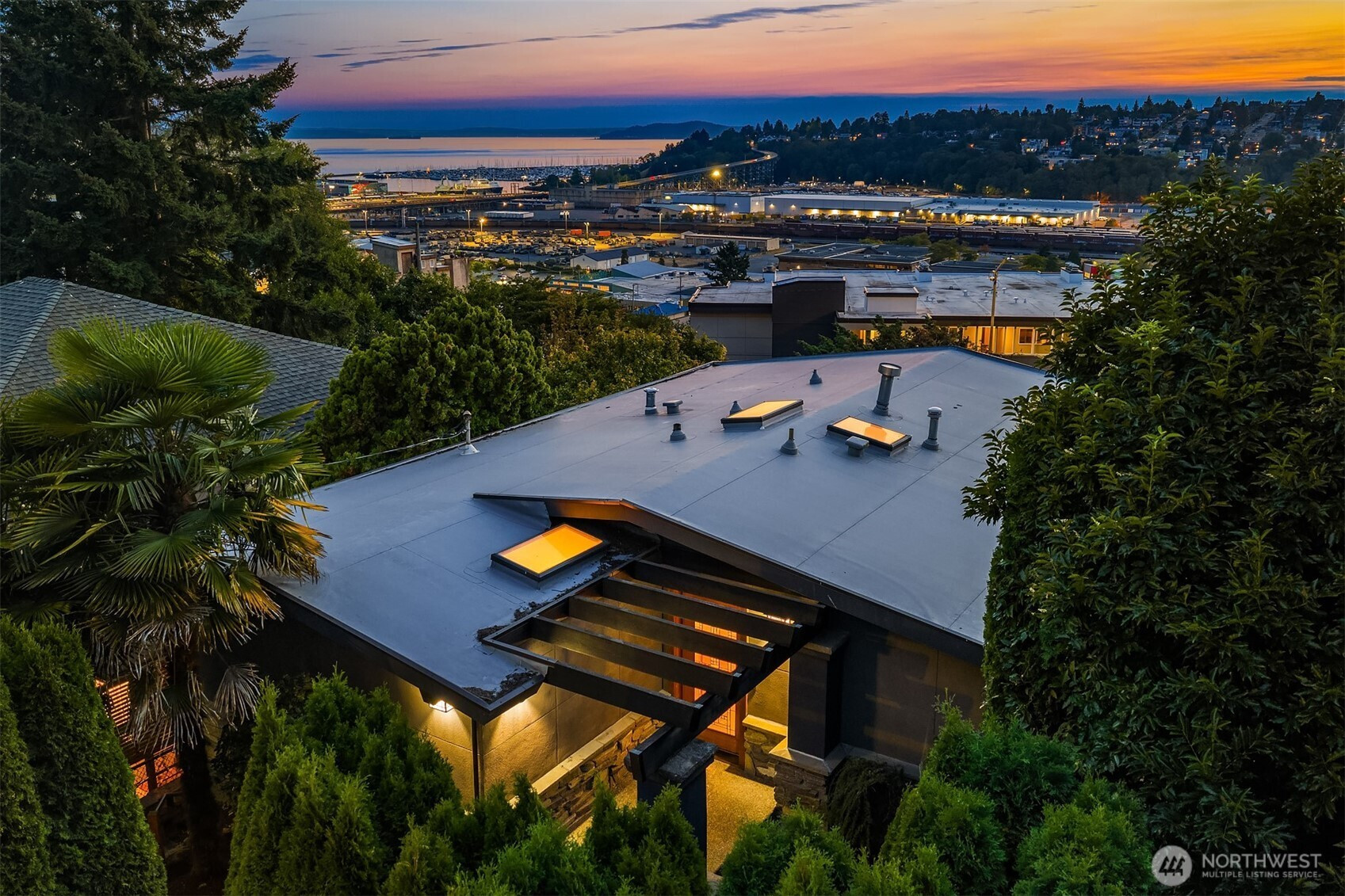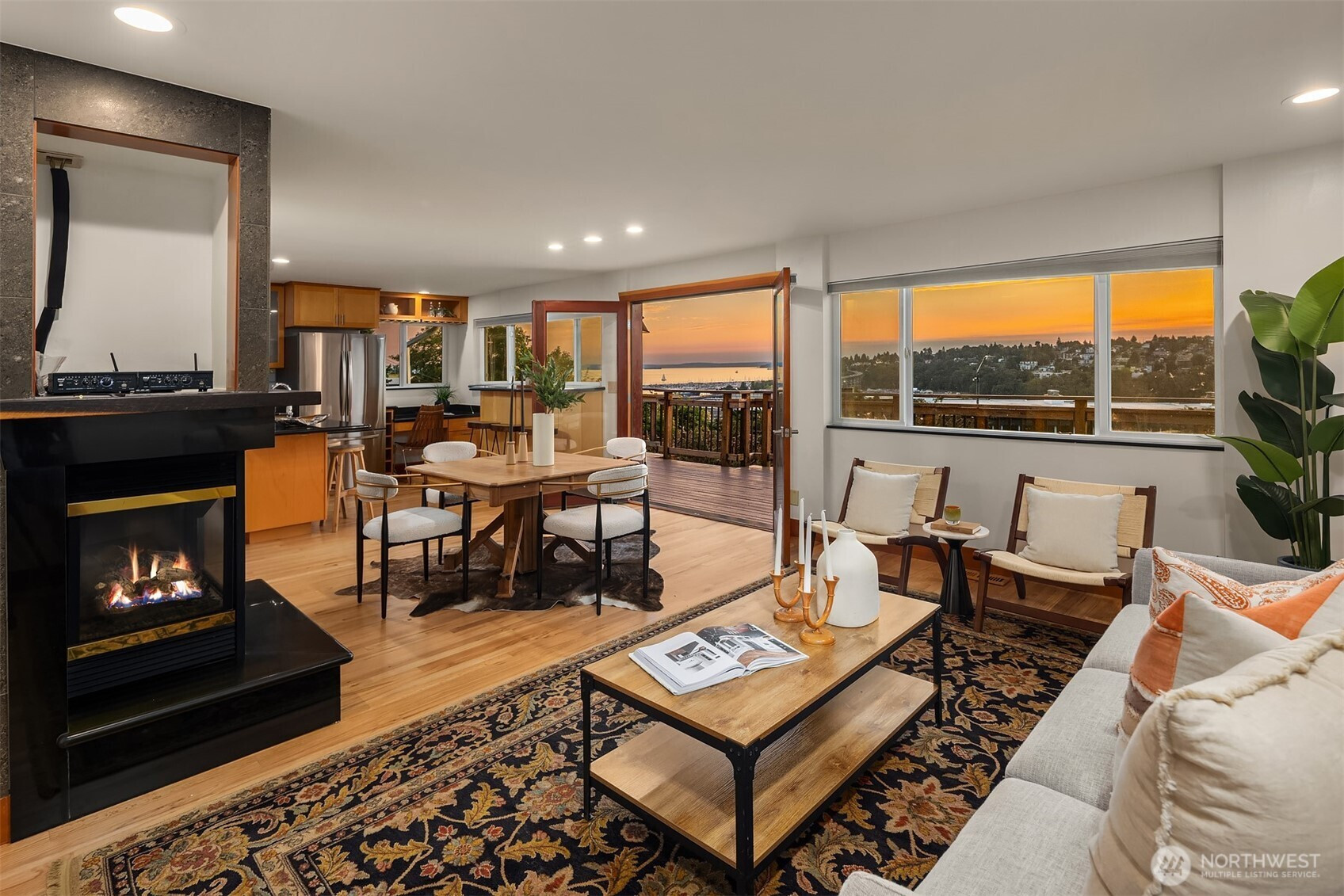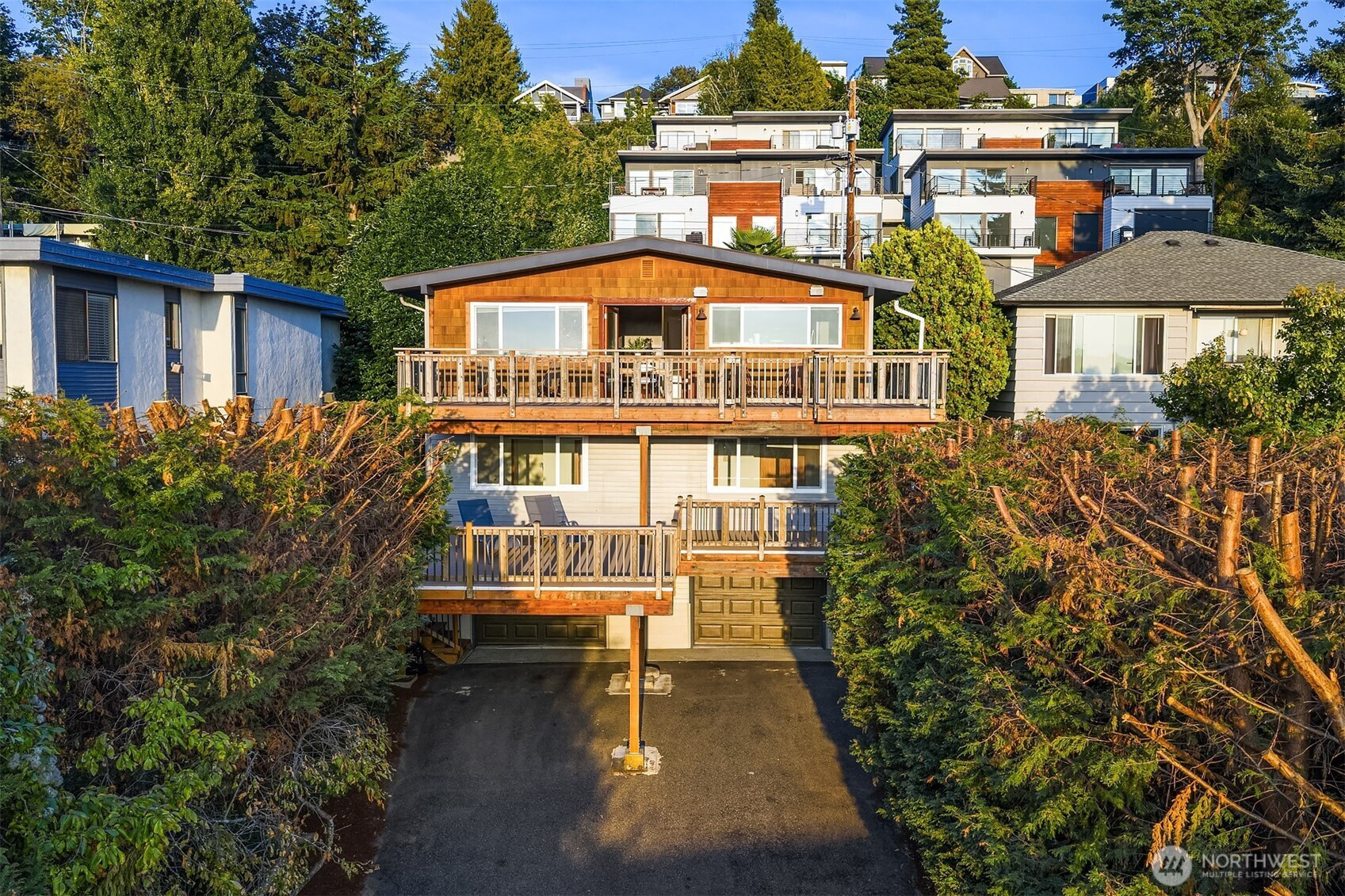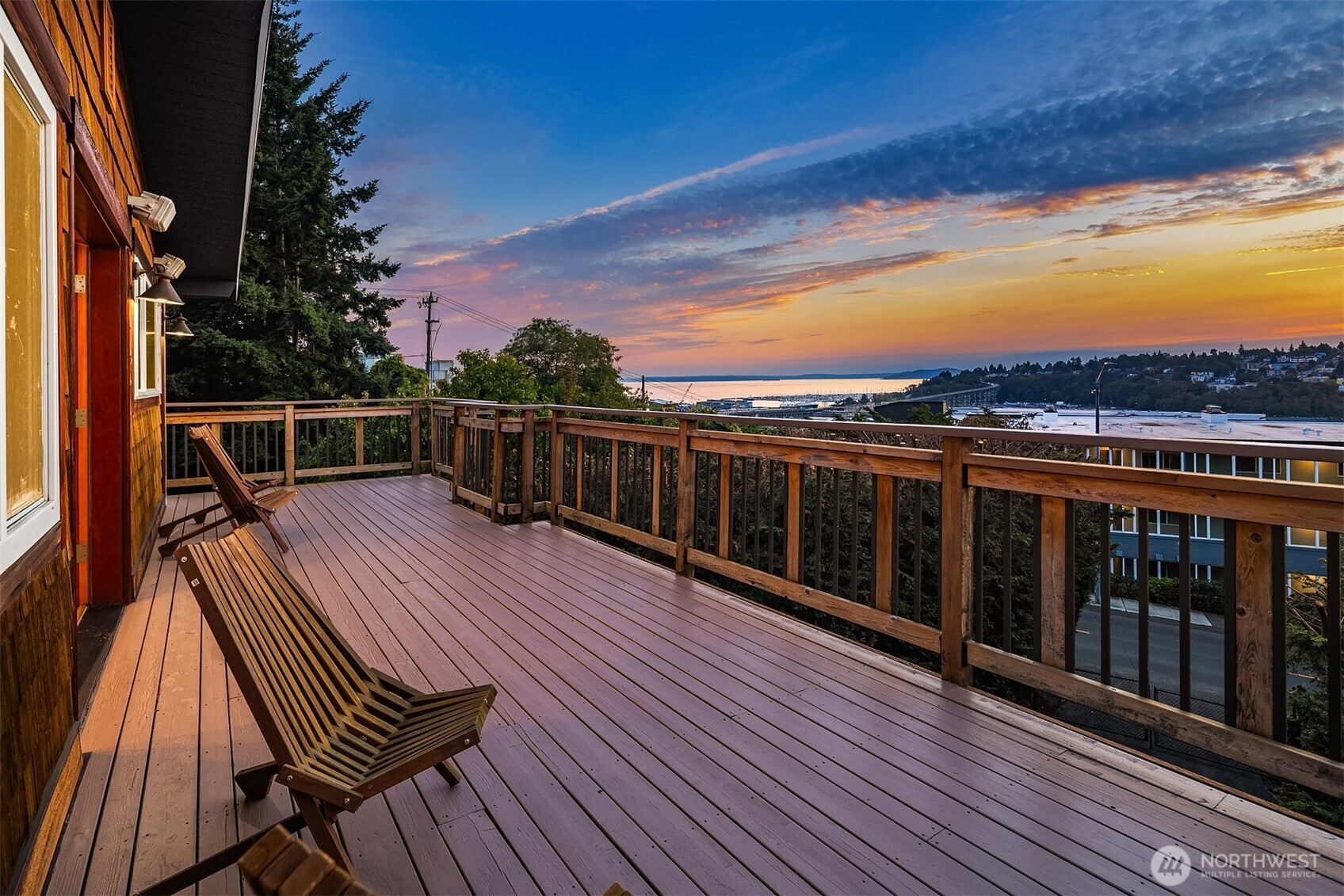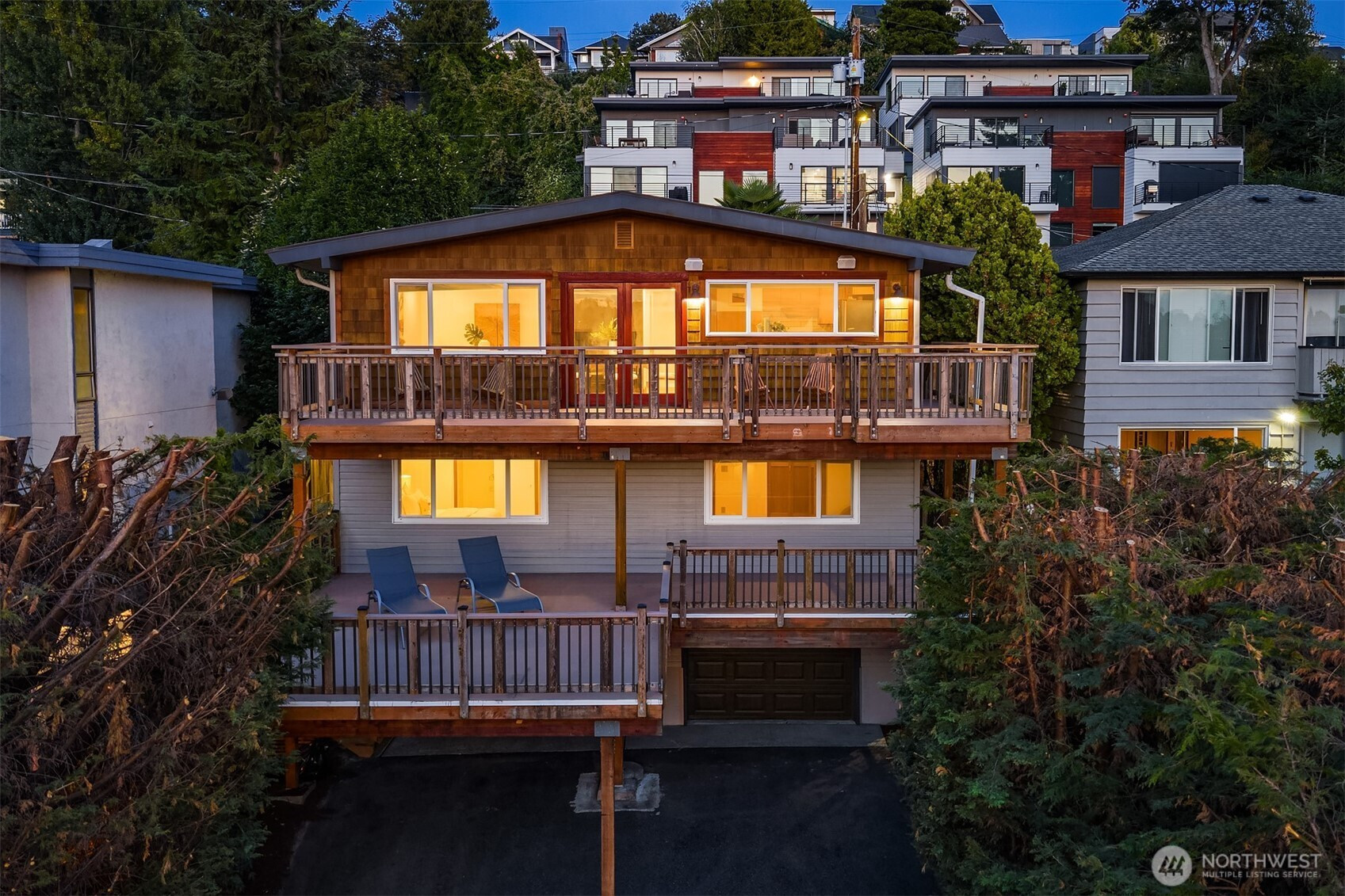 Beautifully updated Queen Anne mid-century with sweeping views of the Sound, Olympics, and Magnolia. Light-filled main level opens to a spacious deck with dramatic west-facing sunsets. Upper-level primary retreat features a custom closet and ensuite bath. The versatile lower level, with separate entrance and power meter, easily converts to a MIL suite. Rare attached double garage plus carport and extra off-street parking. Zoned L2 for development potential. Strong rental history with whole-house rents of $5K+/mo.