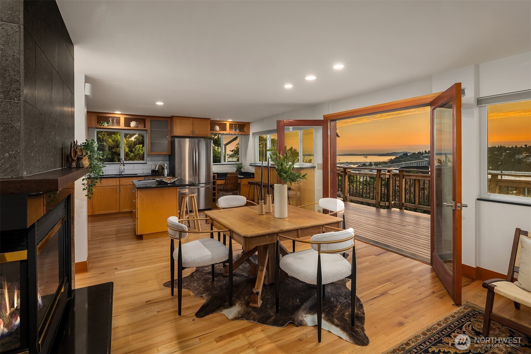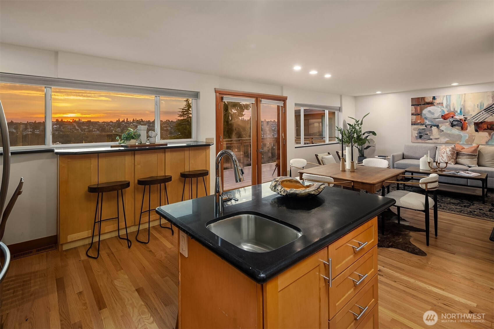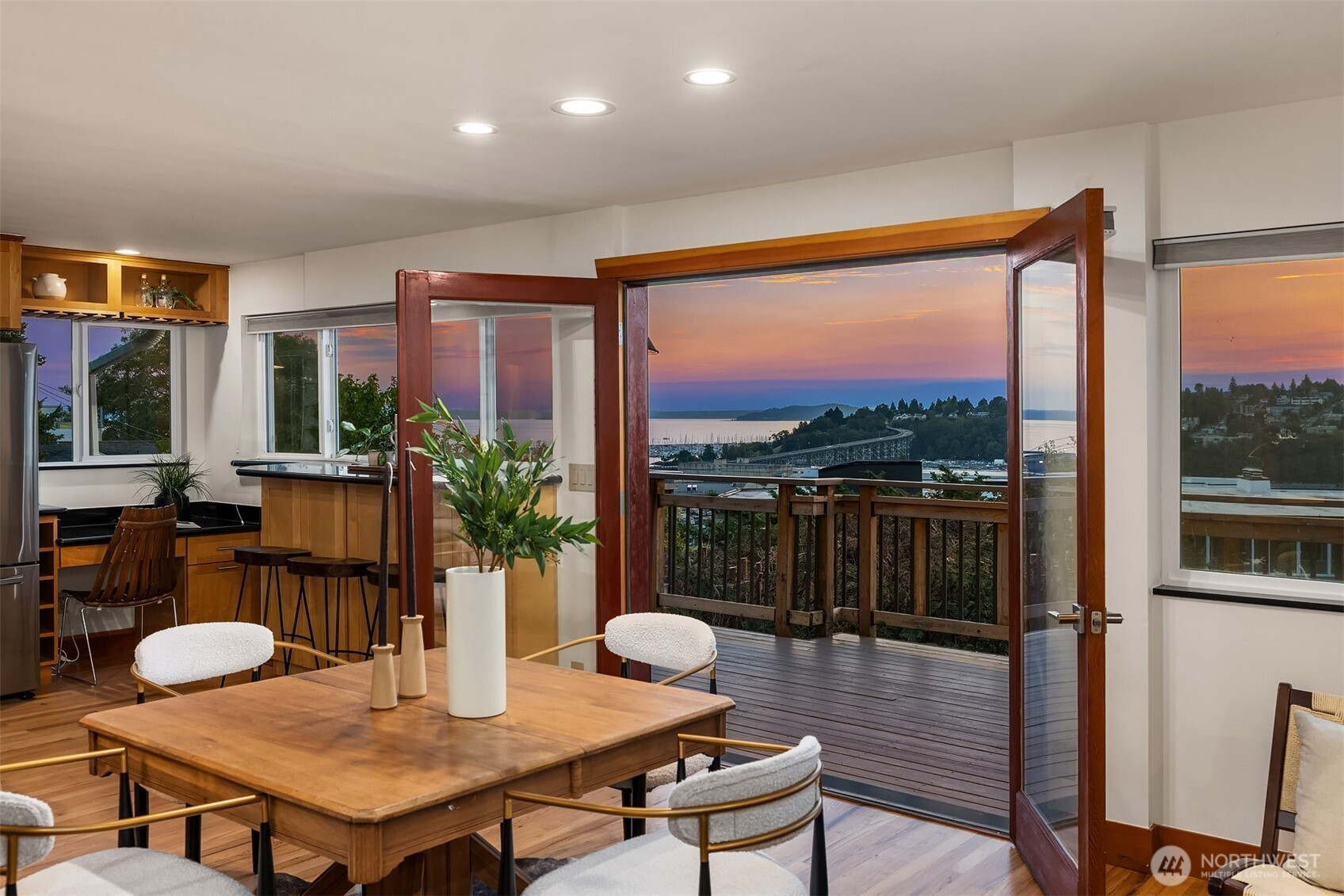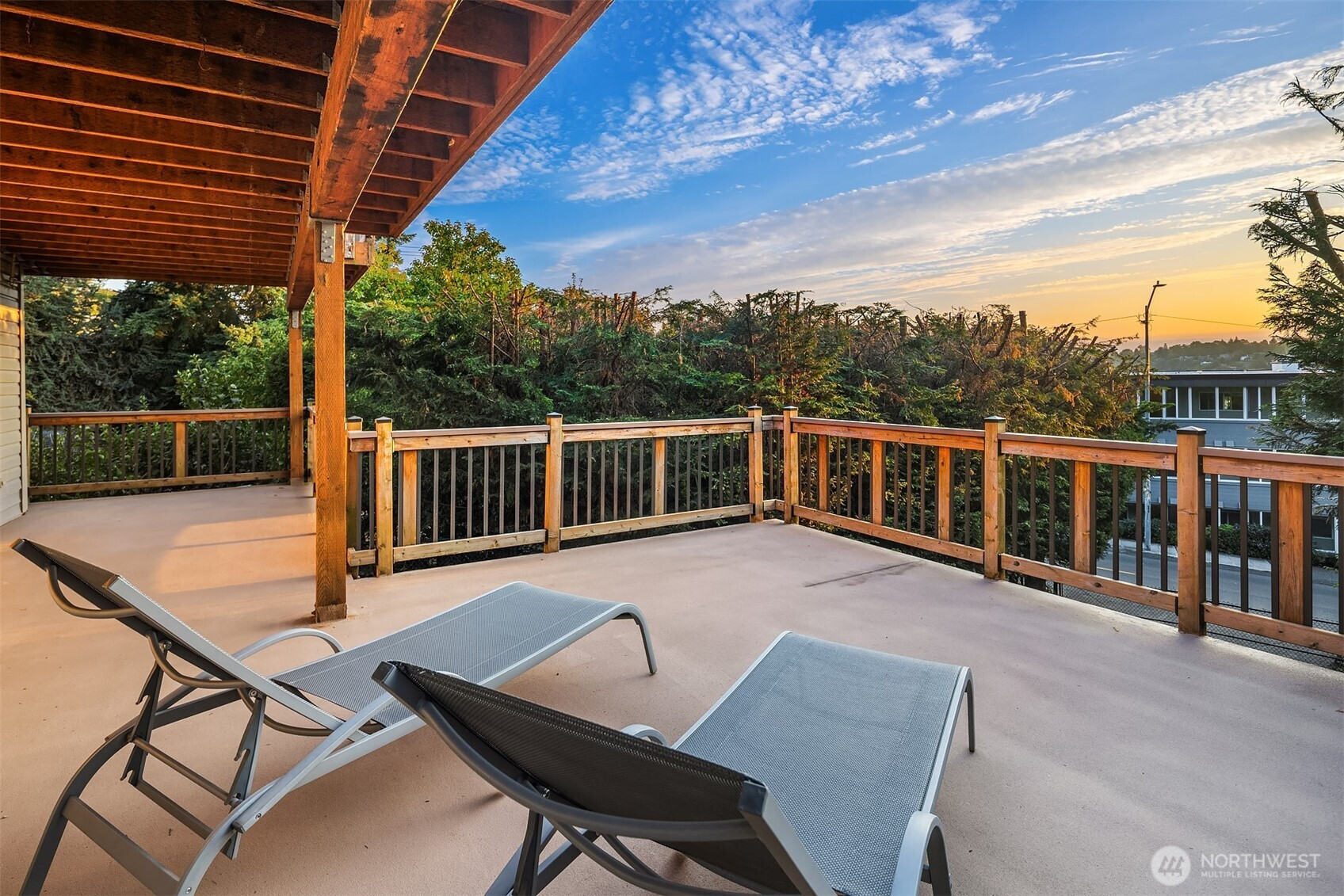 Beautifully updated Queen Anne mid-century with sweeping views of the Sound, Olympics, and Magnolia. Light-filled main level opens to a spacious deck with dramatic west-facing sunsets. Upper-level primary retreat features a custom closet and ensuite bath. The versatile lower level, with separate entrance and power meter, easily converts to a MIL suite. Rare attached double garage plus carport and extra off-street parking. Zoned L2 for development potential. Strong rental history with whole-house rents of $5K+/mo.