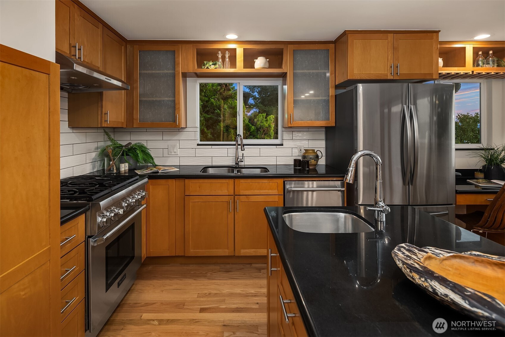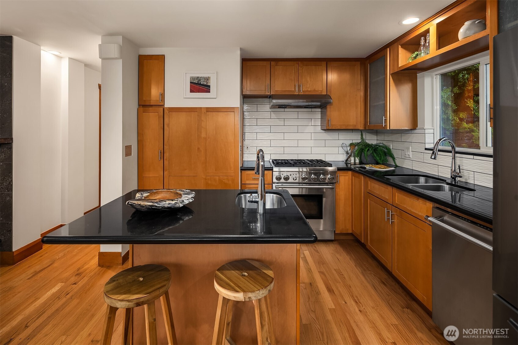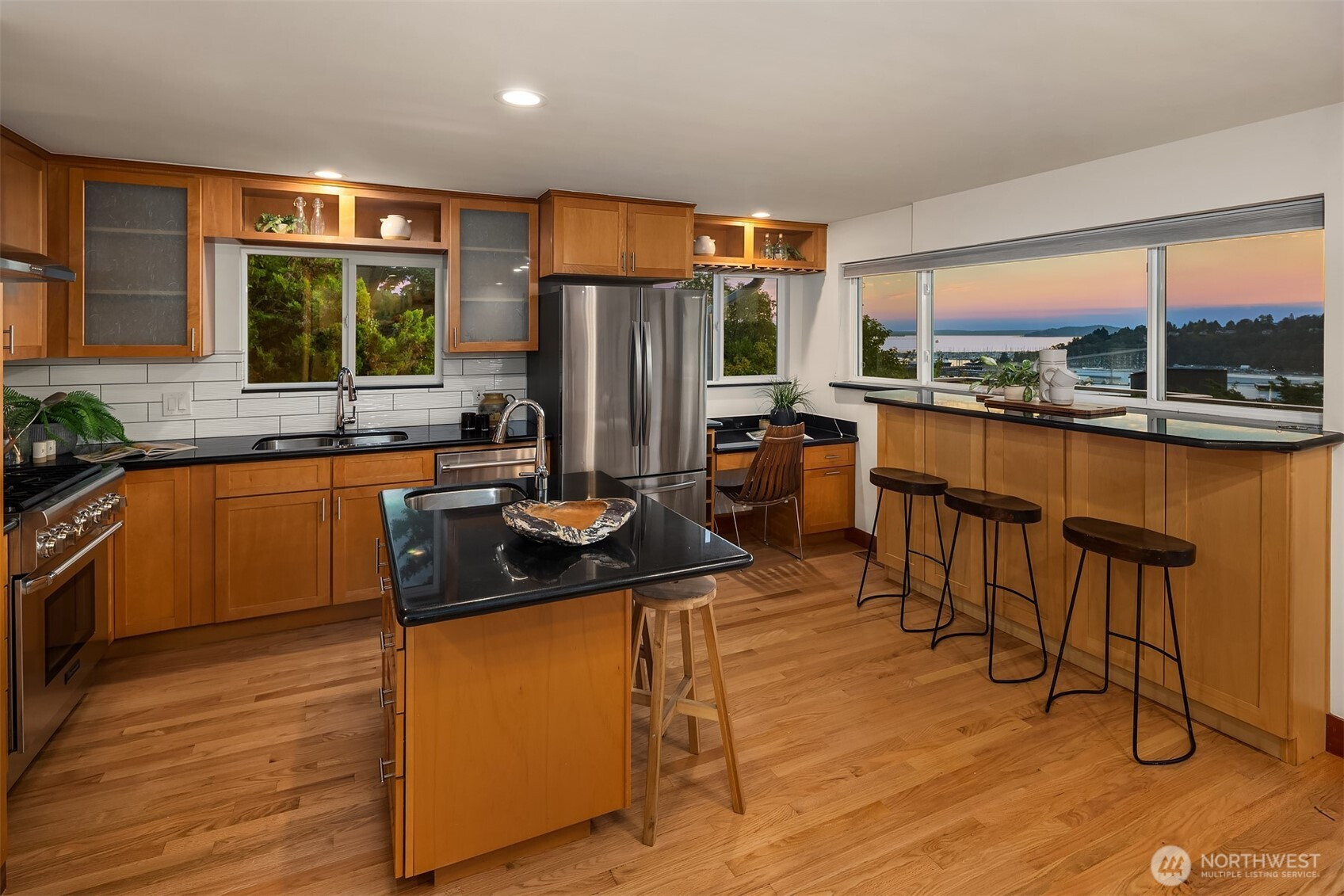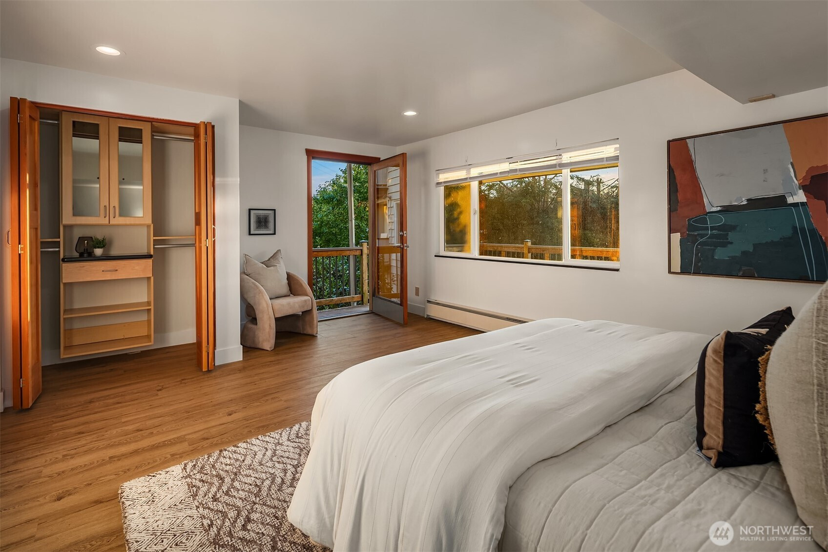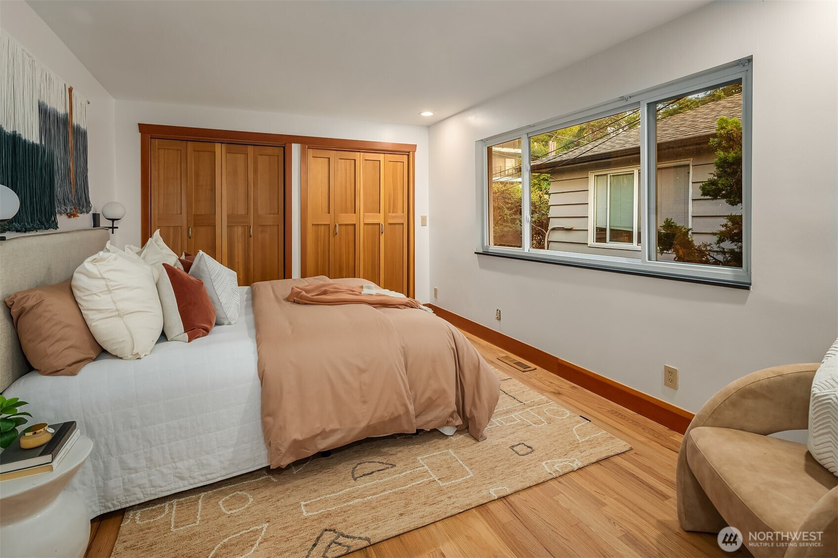Beautifully updated Queen Anne mid-century with sweeping views of the Sound, Olympics, and Magnolia. Light-filled main level opens to a spacious deck with dramatic west-facing sunsets. Upper-level primary retreat features a custom closet and ensuite bath. The versatile lower level, with separate entrance and power meter, easily converts to a MIL suite. Rare attached double garage plus carport and extra off-street parking. Zoned L2 for development potential. Strong rental history with whole-house rents of $5K+/mo.