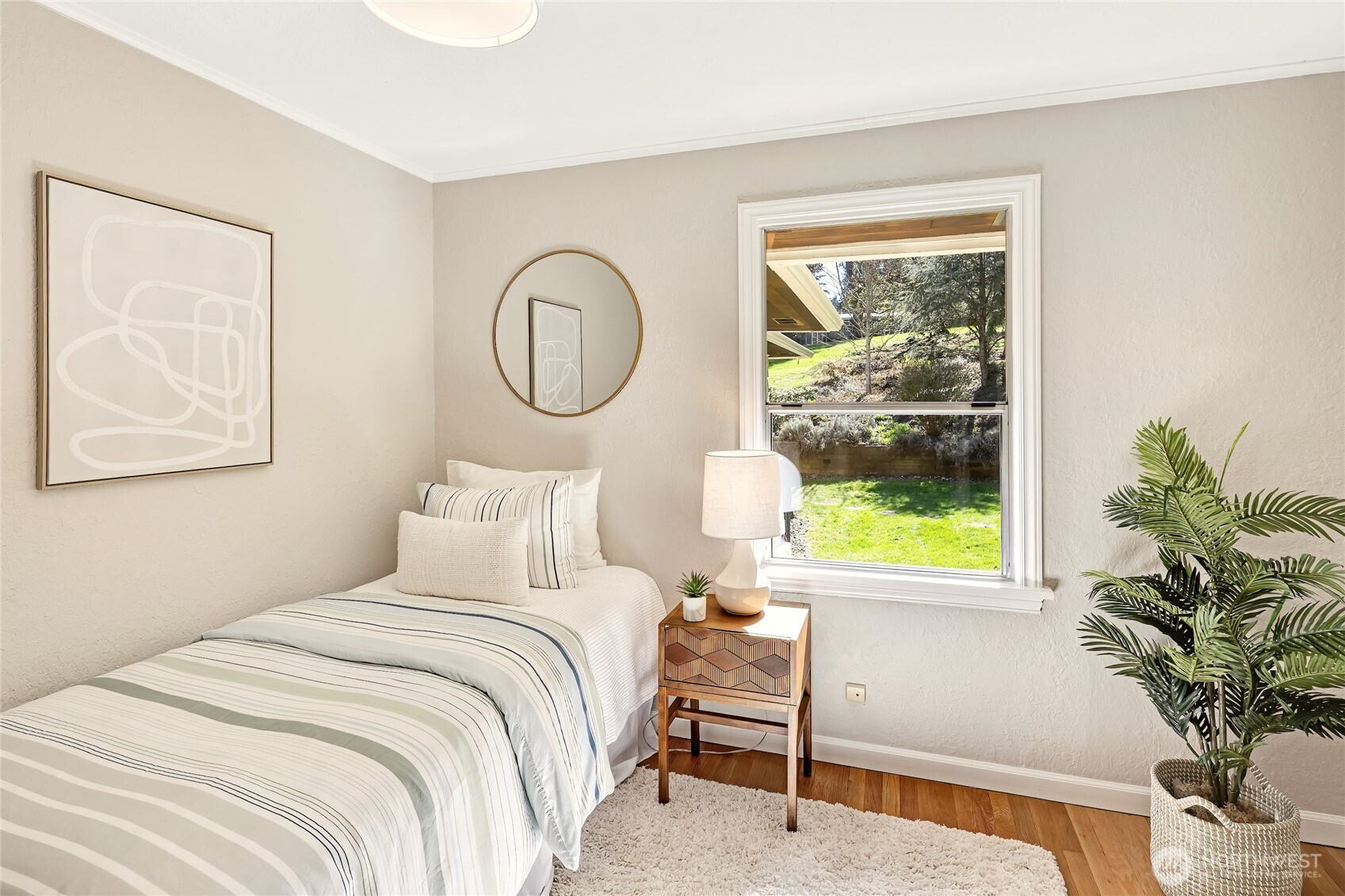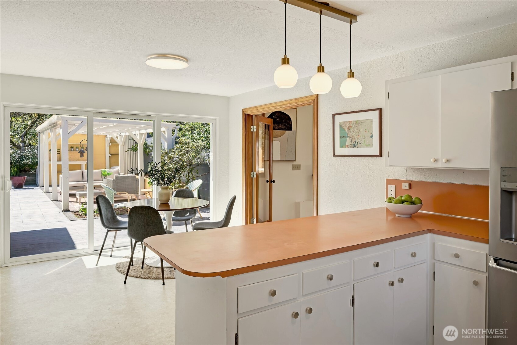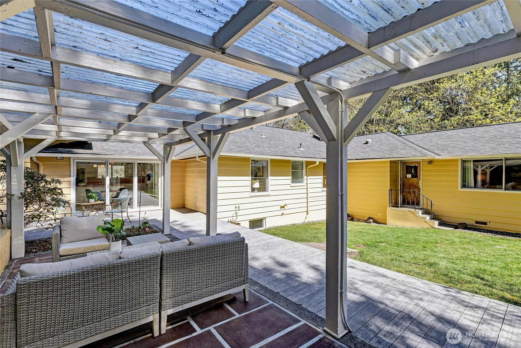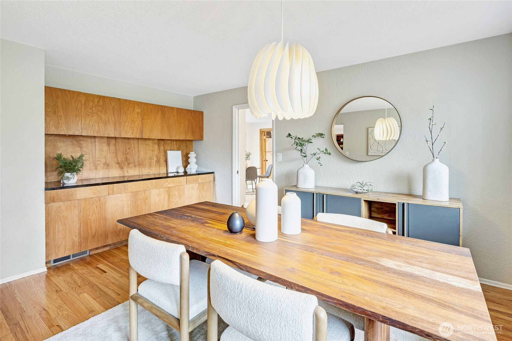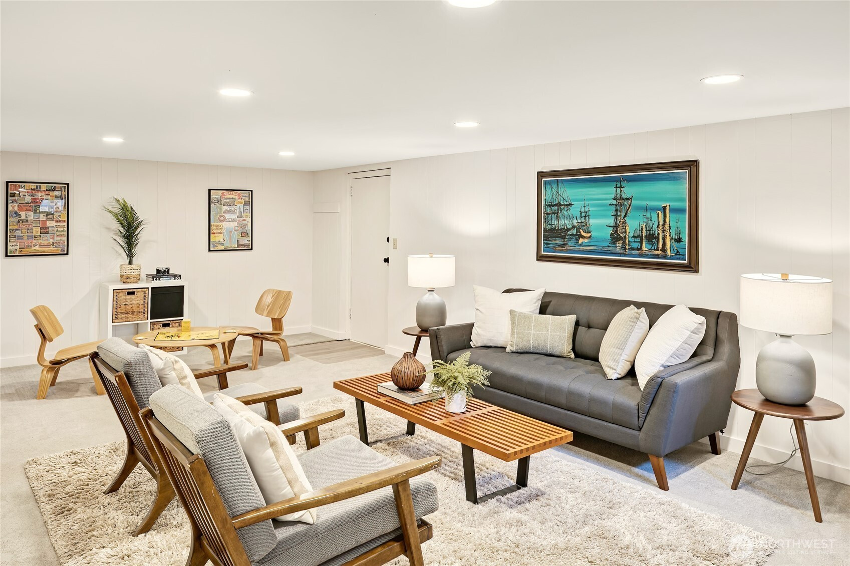 A hidden retreat in the heart of North City, this beautiful home brings together nature, light & thoughtful design in a setting that feels both grounded & restorative. Classic formal spaces feature oak hardwoods, wood stove, & period built-ins that reflect its timeless character, while the expansive studio-style great room serves as the heart of the home with vaulted ceilings, walls of windows, & serene garden views that keep the outdoors ever present. The light-filled kitchen opens seamlessly to expansive deck & covered patio, creating an easy flow between indoor and outdoor living that supports both everyday life & effortless entertaining. The private primary suite overlooks a peaceful courtyard & lush gardens, offering a quiet sense of retreat, complemented by three additional bedrooms, a lower-level rec room, & dedicated office that provides flexibility for work & guests. The grounds feel park-like yet intentionally maintained, with orchard, greenbelt backdrop, & layered landscaping that create privacy & a sense of calm throughout the seasons. Newer roof, sewer line, interior paint, waterproofing & more! Pre-inspected. A great commuter location with nearby light rail providing easy access to downtown, Lynnwood, Federal Way, & Redmond. Deeded access to Lake Forest Park Civic Club for private beach, clubhouse & boat launch! A rare combination of setting, space & nature, this home lives in quiet balance with its surroundings while staying closely connected to the city.