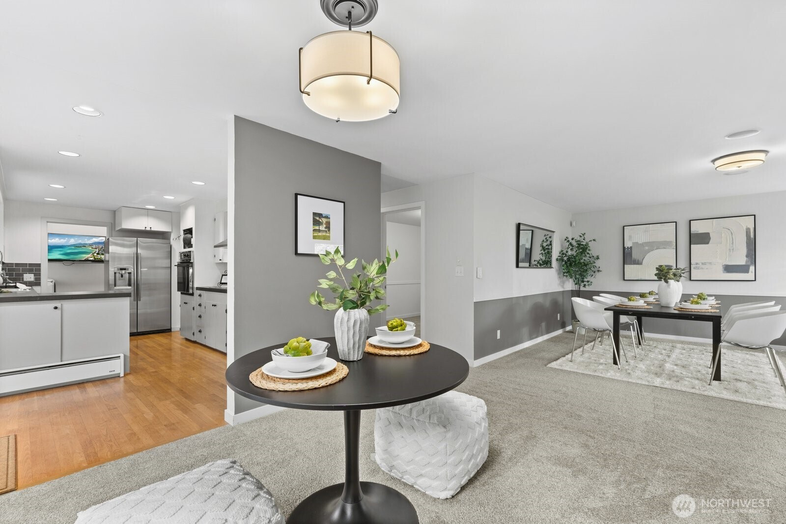 (503) 893-8874Welcome home to your Kirkland sanctuary in the sought-after West of Market neighborhood! This bright and cheery 3-bed, 2-bath home is just minutes to Heritage Park, Downtown Kirkland & the sparkling Kirkland waterfront. Fresh carpet and paint throughout. The second level, spacious primary suite features vaulted ceilings, floor to ceiling windows, an ensuite bath, 2 walk-in-closets, and a balcony with Olympic Mountain sunsets and Mt. Rainier views! Plus an extra room off the Primary for a work from home office/nursery/reading space-whatever your heart desires! Mini splits in both the Primary suite and main level family room offer cooling and heating to keep you comfortable, no matter the weather! Enjoy a stylish kitchen with induction cooktop, handmade tiles, pantry/laundry & direct access to a sun-drenched 500 SqFt deck. Oversized family room with 11-ft ceilings, formal living & dining. Handy basement storage for those Costco runs or the perfect spot for your very own wine cellar! Detached garage with EV charger, and convenient alley access with 2 extra parking spaces. Lovely landscaped backyard retreat invites you to play in the garden or relax and enjoy. Award winning Lake Washington Schools and top rated amenities just a stone's throw away, this home offers the ideal blend of suburban living and urban accessibility. Your dream home in the perfect location awaits!