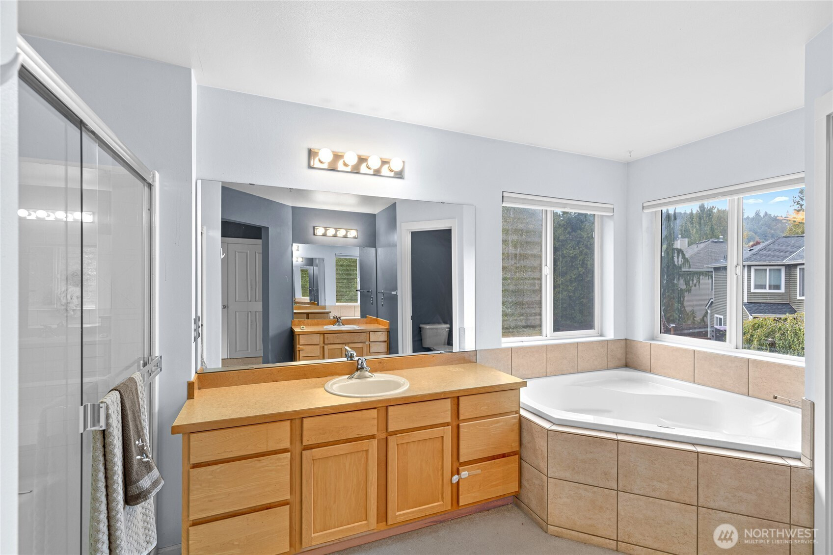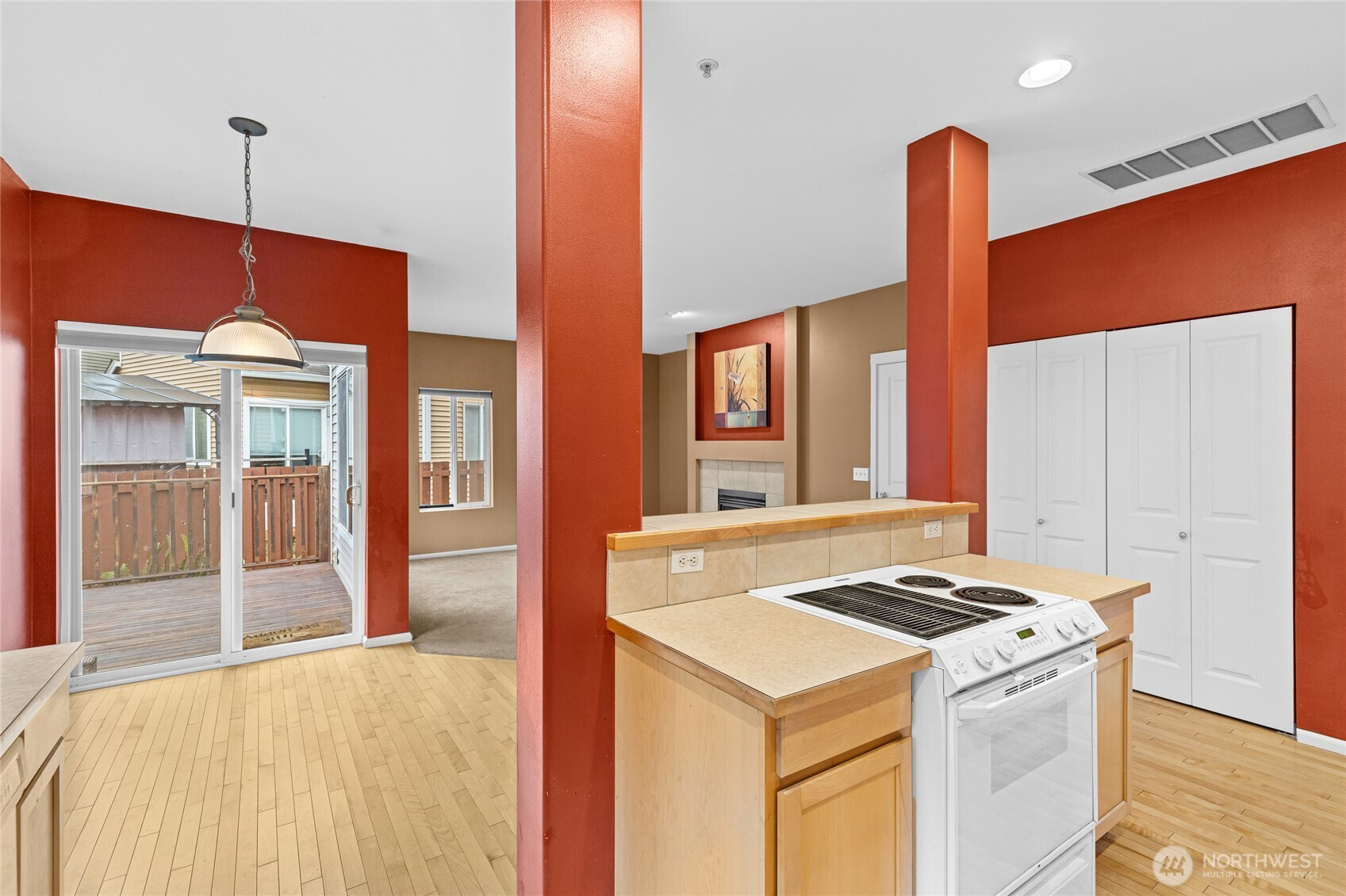 Beautiful stand-alone craftsman-style home in a well-maintained community. Formal living and dining rooms set an elegant first impression, with vaulted ceilings in the entry and living room adding scale and light. The kitchen flows into a dining nook and family room and then out to a fully fenced backyard backing to a greenbelt for privacy and an evergreen backdrop. The primary suite includes a 5-piece bath. Central A/C and a sprinkler system add comfort and ease. Enjoy a covered front porch, nearby walking trails, and effortless access to I-5, Hwy 167, transit, Sea-Tac Airport and Southcenter.