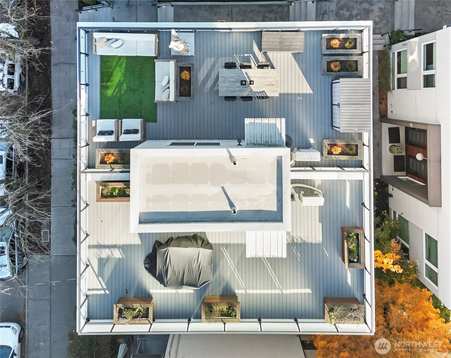 Sleek urban living meets stunning Seattle views in this Built Green 4-Star Eastlake townhouse by Murray Franklyn and Caron Architects. This corner unit offers a rare, expansive layout—open living, dining, and kitchen on the main level; two bedrooms and a bath on the second; and a private top-floor primary suite with a den ideal for work from home. The 500 square foot rooftop terrace showcases unobstructed views of Lake Union, the Space Needle, and the city skyline—perfect for fireworks and gatherings. With high walk and bike scores, and a reserved parking space, you’re steps from Eastlake’s best dining, bars, and shops. Turn-key, move-in ready, and built in 2017—your modern city sanctuary awaits.