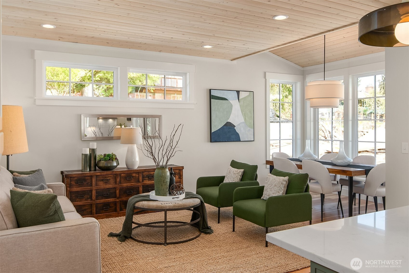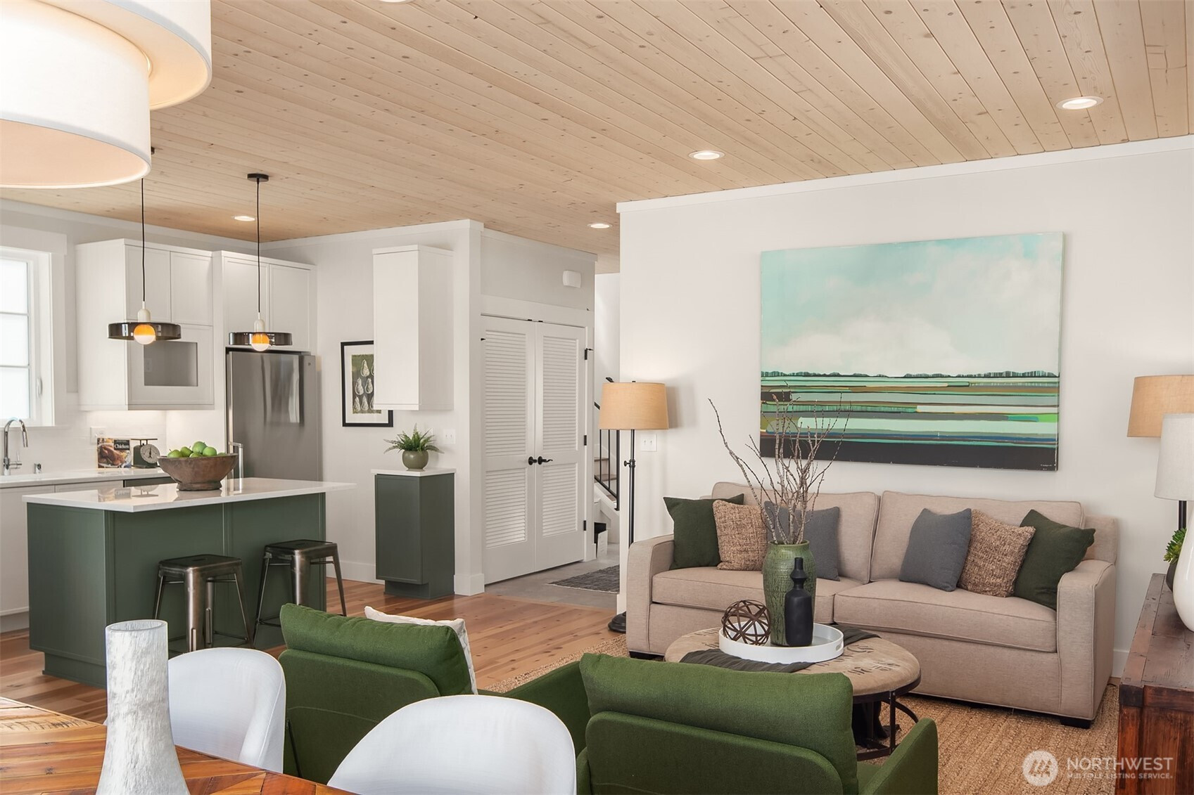 FINAL custom home at award-winning Thornton Creek Commons, created by lauded The Cottage Company. Built Green 5-Star, Net Zero possible GATED private community is set upon 2.5 acres of preserved, protected, arboretum-like woodland with Thornton Creek access. A 1.5 acre park is enjoyed by the 9 owners and features a fire pit, off leash dog park, walking trail, a sublime urban oasis. Architecturally distinctive, sustainably crafted, vaulted ceiling, light filled interiors are graced with reclaimed solid wood floors, heated tile primary bath, EV-ready garage, & airtight, soundproofed construction. This special plan allows for single-level living, WFH or multi generational lifestyles. Walk to retail, pubs, post office, Library and Pinehurst Light Rail opening mid-2026.