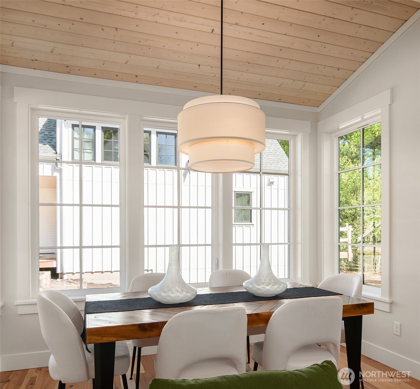 FINAL custom home at award-winning Thornton Creek Commons, created by lauded The Cottage Company. Built Green 5-Star, Net Zero possible GATED private community is set upon 2.5 acres of preserved, protected, arboretum-like woodland with Thornton Creek access. A 1.5 acre park is enjoyed by the 9 owners and features a fire pit, off leash dog park, walking trail, a sublime urban oasis. Architecturally distinctive, sustainably crafted, vaulted ceiling, light filled interiors are graced with reclaimed solid wood floors, heated tile primary bath, EV-ready garage, & airtight, soundproofed construction. This special plan allows for single-level living, WFH or multi generational lifestyles. Walk to retail, pubs, post office, Library and Pinehurst Light Rail opening mid-2026.