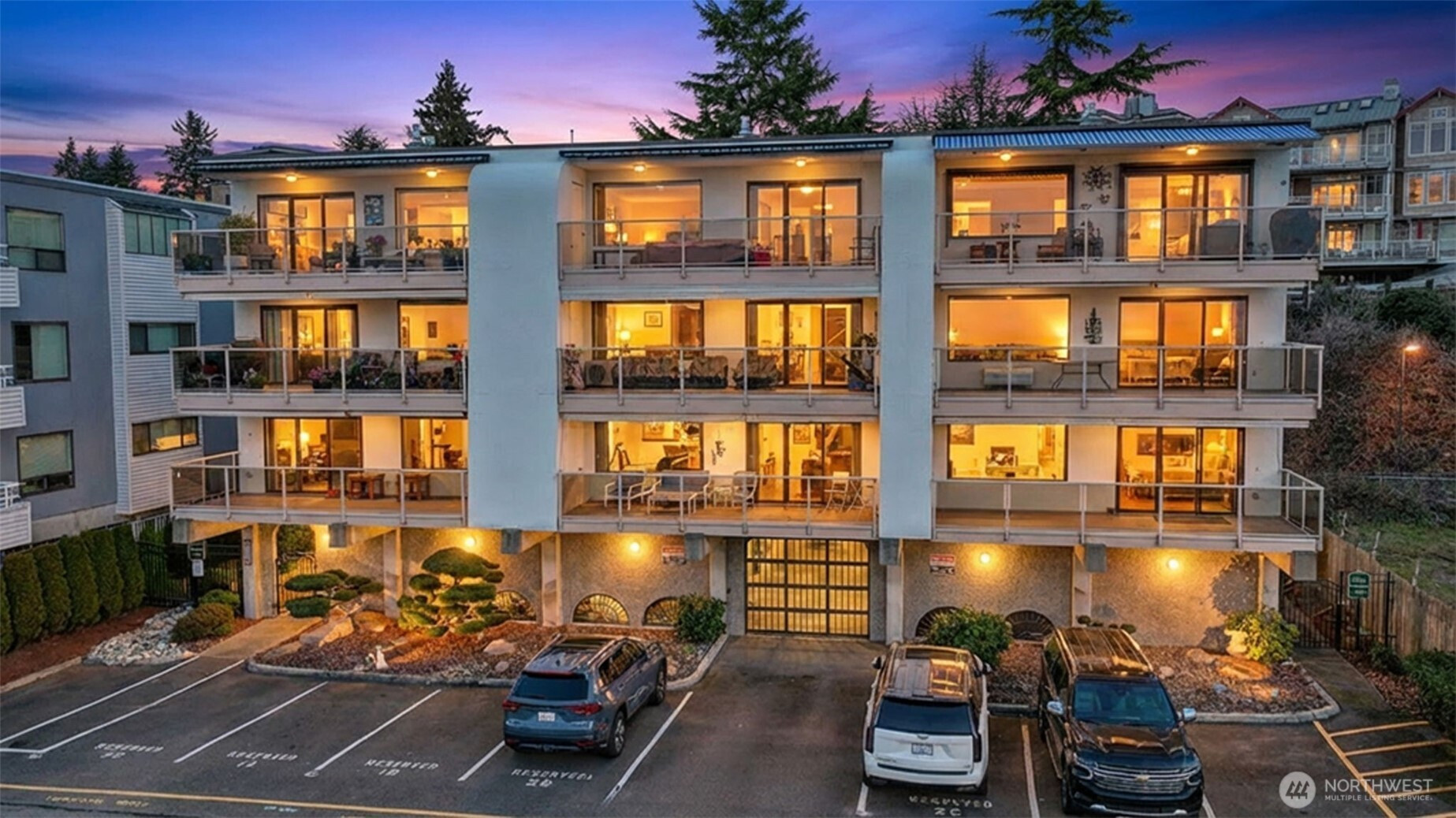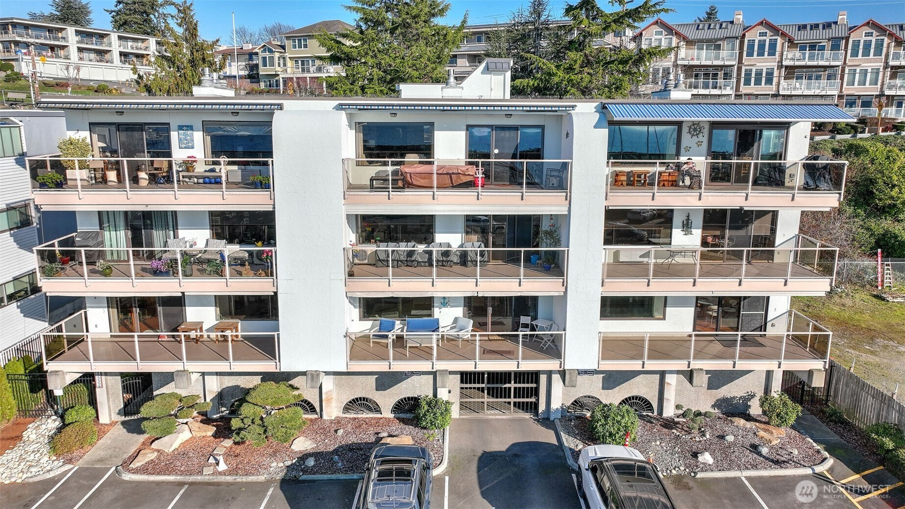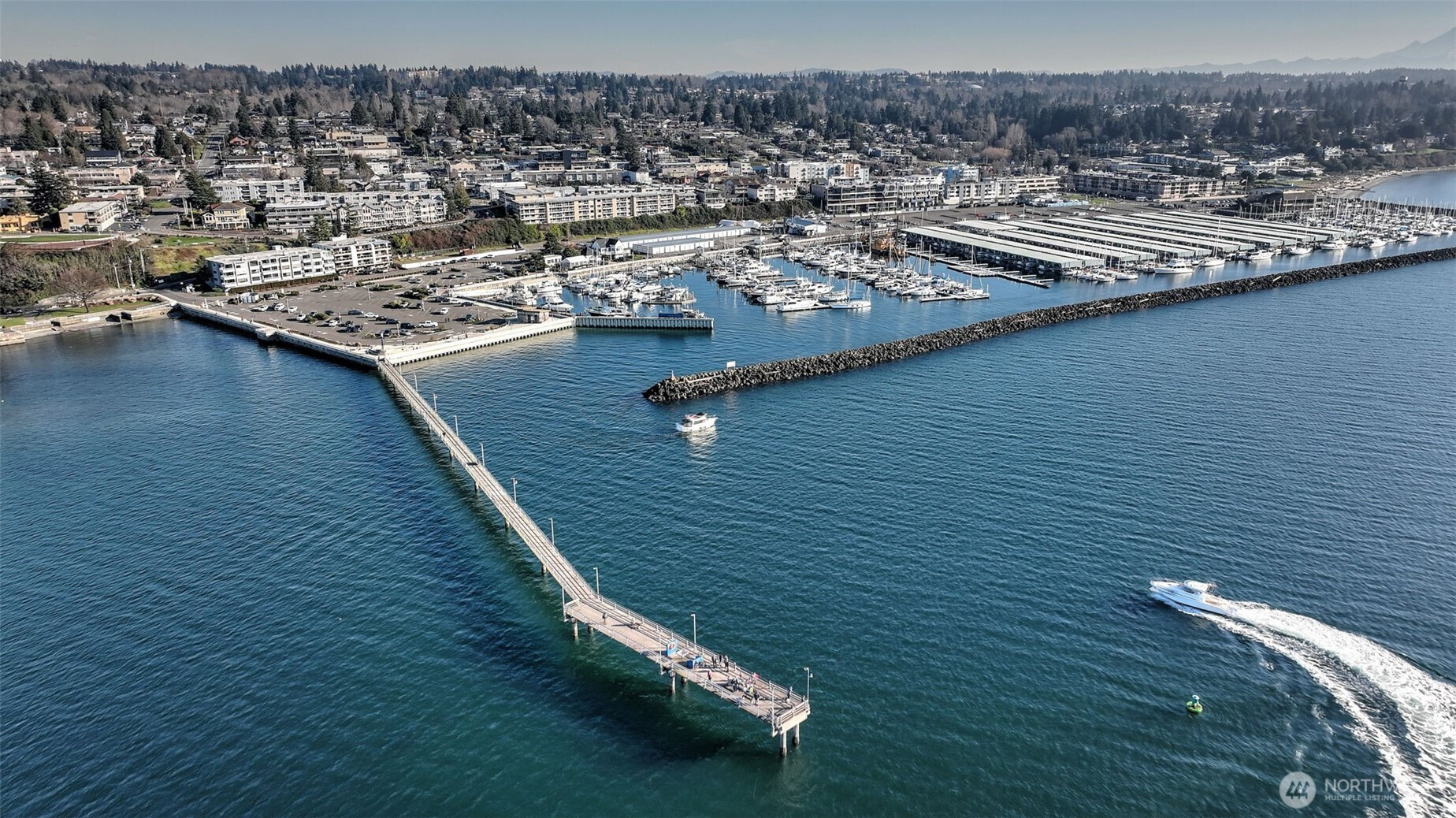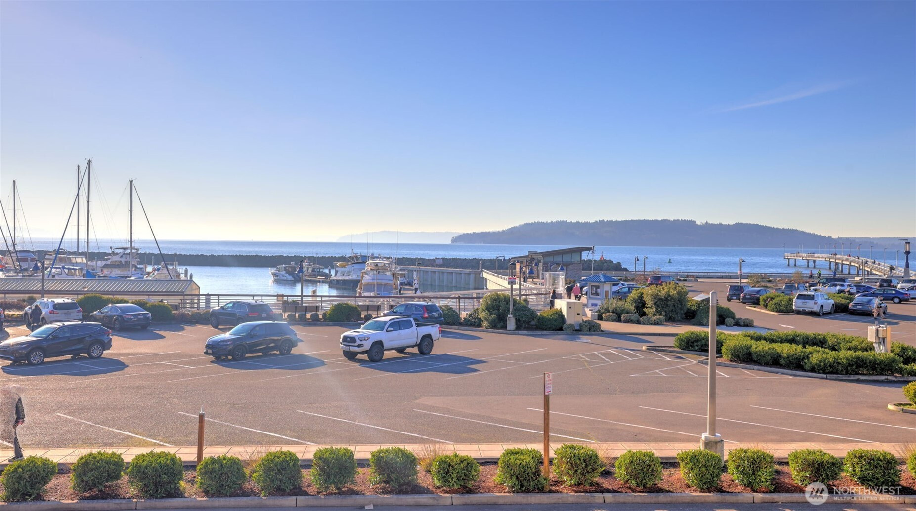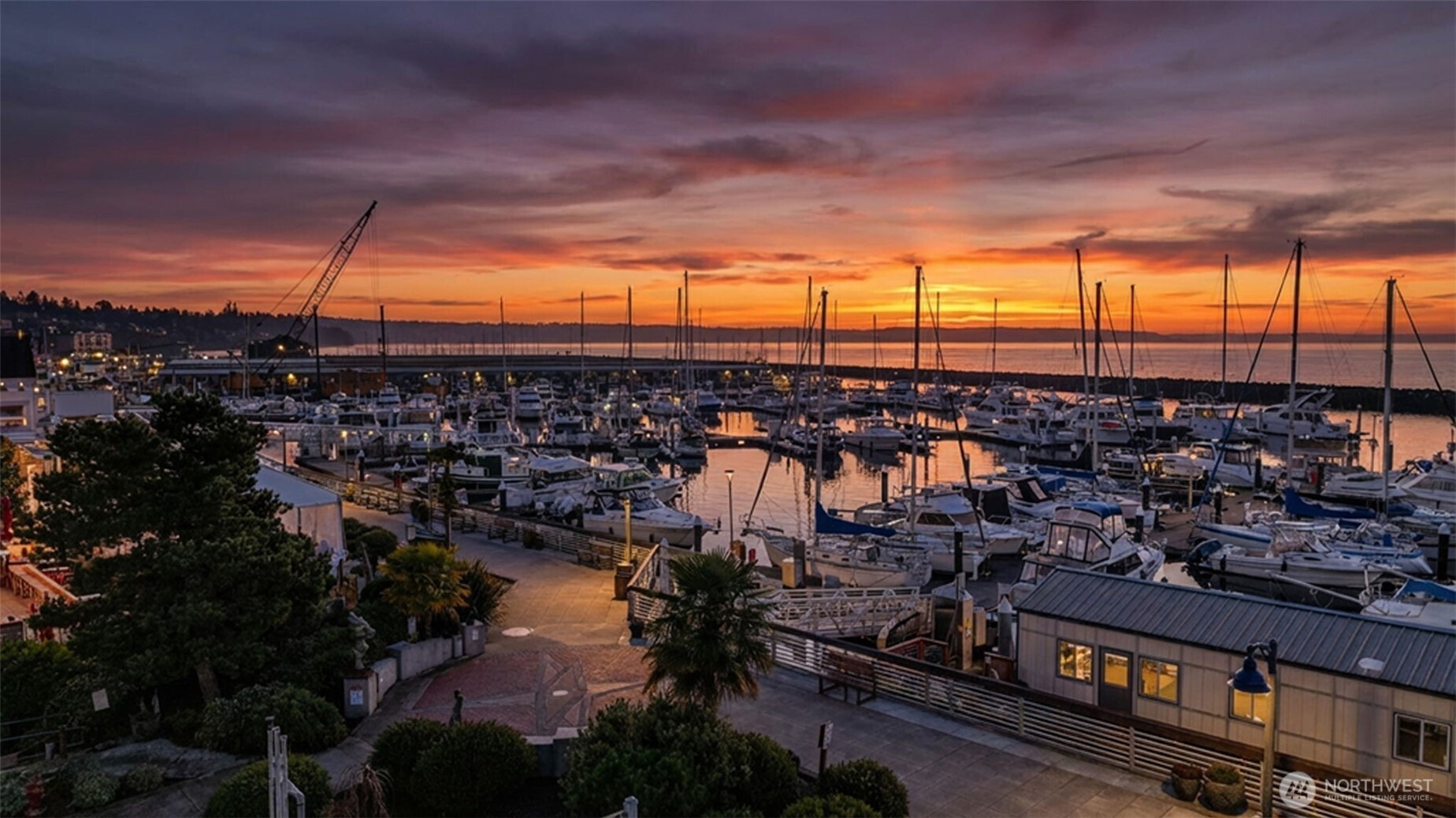 Wake up to salt air, sunsets, and the rhythm of the marina—this is waterfront living the way it’s meant to be. Nestled in the heart of the Des Moines Marina district, this beautifully updated condo places you just steps from the boardwalk, pier, beach park, dining, and vibrant community events. Inside this 2-bedroom, 1.75-bath, 1,248 sq ft residence light pours through expansive windows, framing sweeping Sound and mountain views and setting the tone for relaxed coastal living. The open living and dining spaces flow effortlessly to a generous west-facing deck—your front-row seat to unforgettable sunsets, evening grilling, and entertaining with friends. A cozy gas fireplace anchors the living room, while the kitchen blends style and function with stainless steel appliances, granite counters, and ample storage. Retreat to the spacious primary suite with a walk-in closet and modern ¾ en suite bath with updated finishes. A second bedroom and full bath provide flexibility for guests or office space. Additional highlights include a heat pump for efficient heating and cooling, in-unit laundry, secure garage parking plus an additional exterior space, and dedicated storage. Boutique building, gated entry, elevator access, and easy access to I-5, light rail, transit, and quick commutes to Seattle or Tacoma. Coastal convenience, lifestyle, and views—this is Des Moines living done right. Come live where others come to unwind.