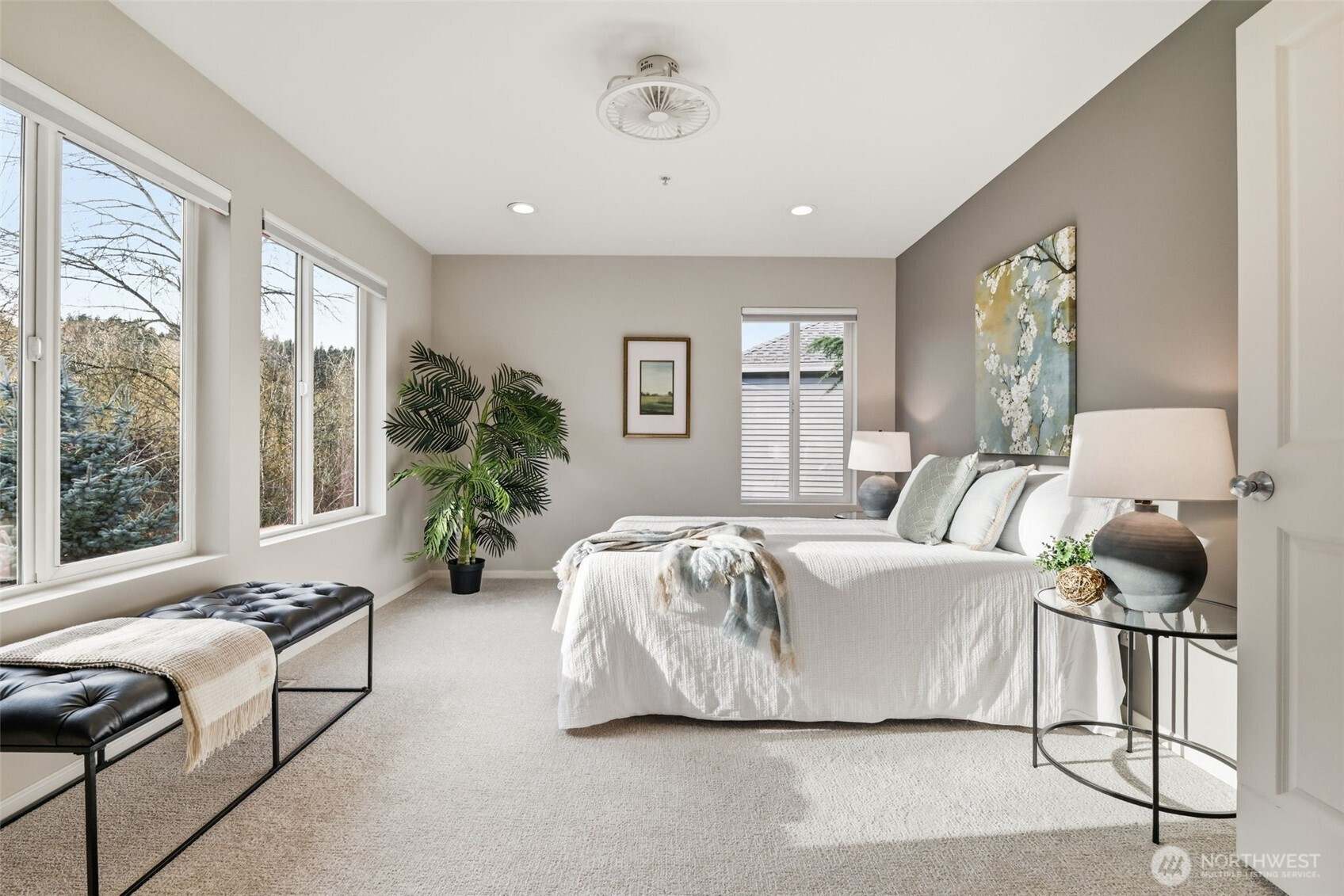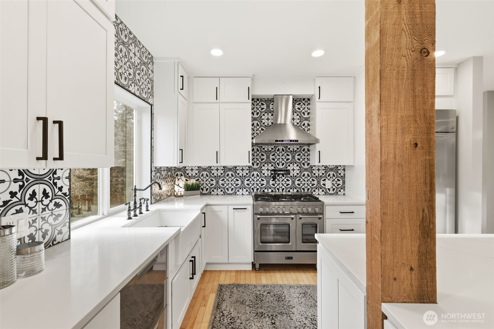 Nestled in nature, this stunning 2-story home offers beauty and privacy in an incredible location. With recent high-end updates, the owners invested generously and thoughtfully, envisioning this as their long-term residence, a huge benefit to the fortunate next owner. Soaring ceilings, fresh interior paint, warm hardwoods and new carpet are just the start. Breathtaking new kitchen with 48-inch professional range, huge island and all the thoughtful cabinet upgrades you could want. Family room adjacent offers a beautiful fireplace with shiplap and tile surround. Sumptuous primary suite has a view of the adjacent natural area, providing a serene atmosphere. Stunning ensuite bath, complete with free standing tub, towel warmer, vanity area in addition to dual sinks and a gleaming spa style shower! Two additional bedrooms, huge bonus room can be 4th bedroom with its 2 closets) and another updated bathroom are found on this level. The expansive, fenced back yard serves as a personal oasis...covered area for fire pit or a table to dine al fresco, unique plants adorning beautiful the stone path and a custom, hand-built playhouse that showcases exceptional craftsmanship. New roof, newer furnace and hot water tank. A/C and whole house ventilation system for comfortable living. This home truly stands out as one-of-a-kind!
