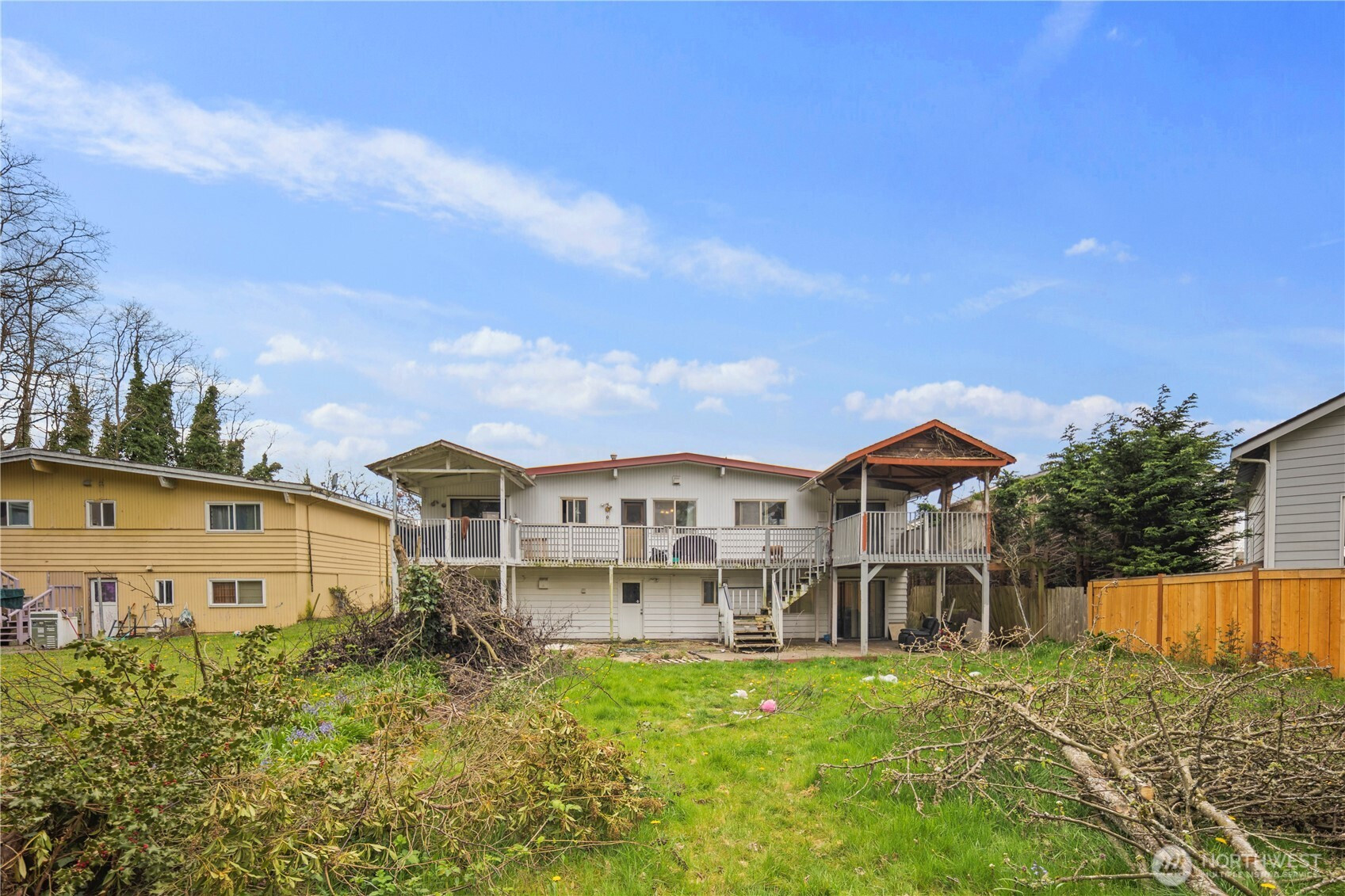 Welcome to this spacious split-level home in the desirable Woodmont area of Des Moines, offering over 3,000 square feet of living space and endless potential. Situated on a generous lot, this 1965-built residence features a functional layout with multiple living areas, ideal for multi-generational living or flexible use. The main level offers an open-concept living and dining space with large windows that bring in abundant natural light, along with access to an expansive deck, perfect for entertaining or enjoying peaceful territorial views.The kitchen provides ample storage and workspace, ready for your personal updates. Downstairs, the daylight lower level includes additional bedrooms, a recreation room, and separate access, creating excellent potential for a guest suite or rental opportunity. Outside, the ample yard-space offers room for gardening or landscaping enhancements, while off-street parking and covered areas add convenience. Located within the Federal Way School District and just minutes to parks, shopping, and waterfront amenities, this property combines size, location, and opportunity. Bring your vision and unlock the full potential of this well-located Des Moines home.