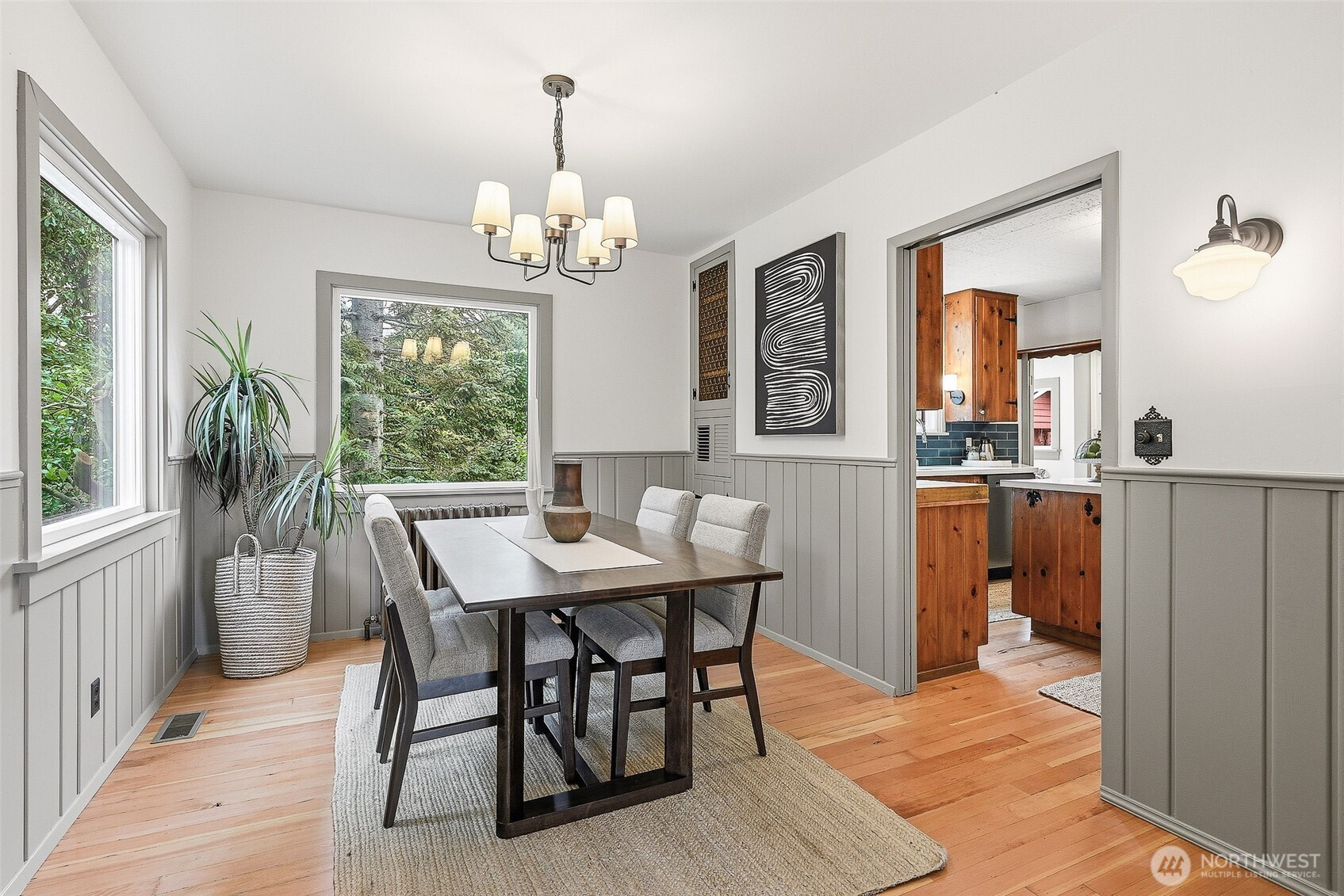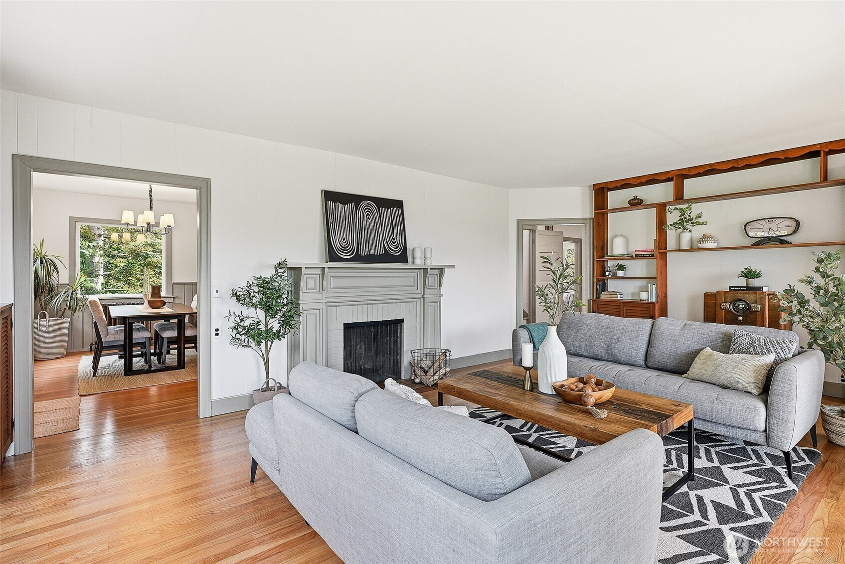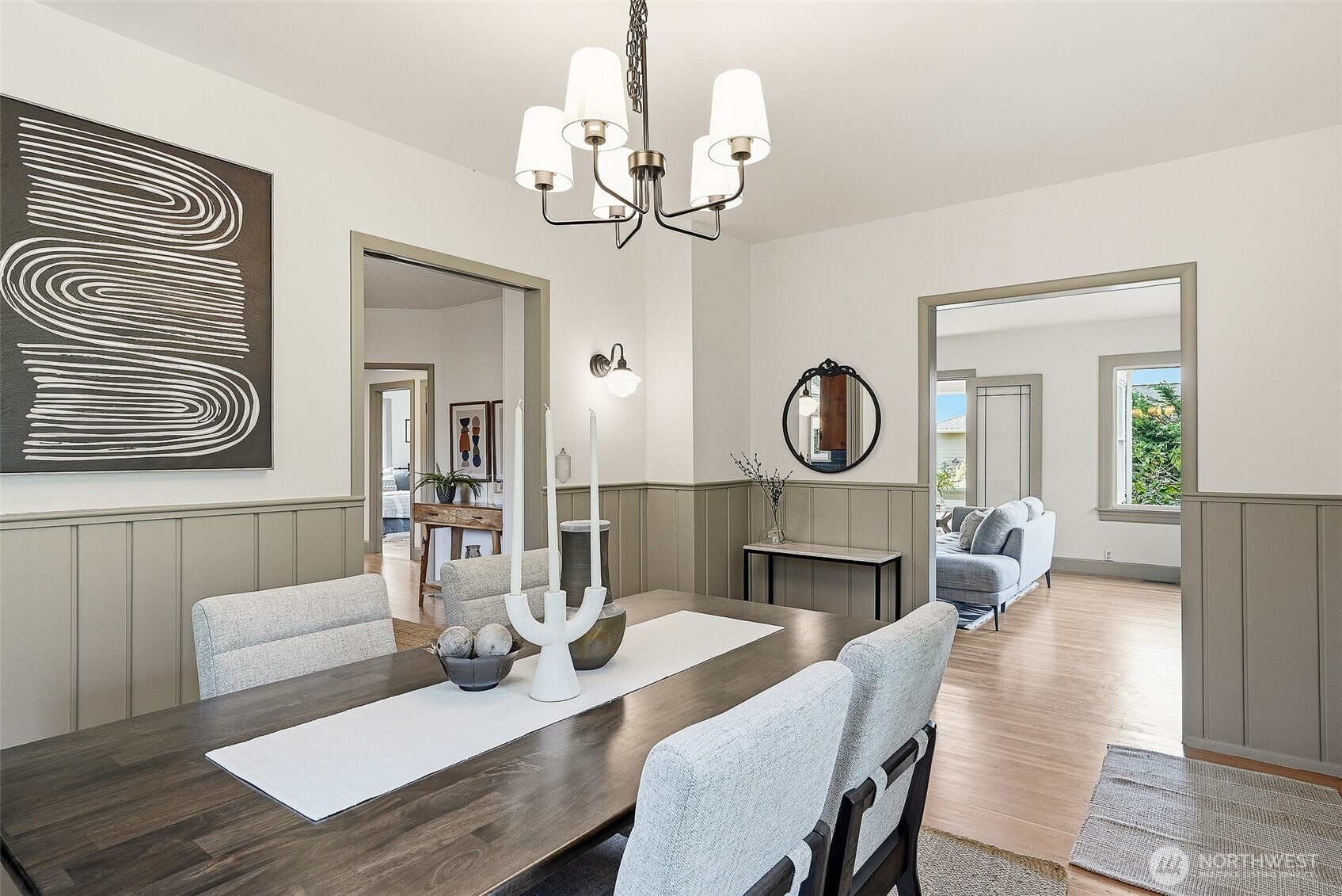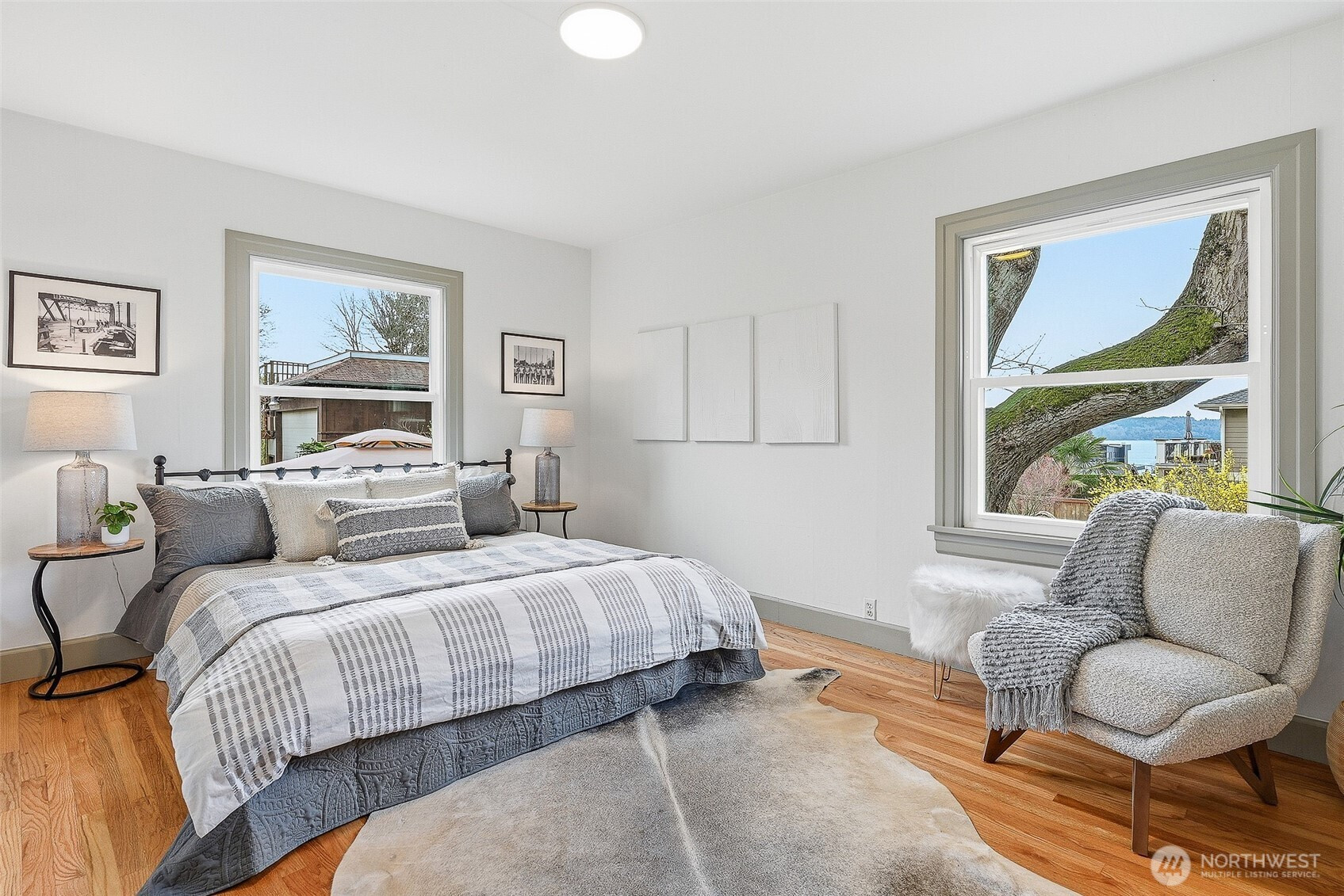 On market for the first time in 70 years, you won't find another property like this one: a spacious main house + a 1-bed, 997sqft DADU (included in total sq ft), views of Puget Sound & Olympics & fantastic outdoor living spaces to enjoy, all on a private 0.6-acre refuge walkable to charming downtown Des Moines. While giving nods to farmhouse architecture, the main home has been modernized for the 21st century w/ refinished oak & fir floors, efficient port package windows, remodeled bathrooms, an on-demand water heater/boiler & more. Living, dining & a delightful sunroom flow smoothly into the fully refreshed kitchen, complete w/ new appliances, quartz counters, sink & tile backsplash. Comfortably laid-out w/ 2 beds & a 3/4 bath on each floor + an unfinished basement w/ good ceiling height & endless potential uses. DADU is great for generational living or rental income; vaulted ceilings & plentiful windows let light pour in to highlight fresh paint, a full kitchen, tons of storage, 3/4 bath & a lofted bedroom w/ new carpet & ensuite 1/2 bath. Outside, take in views from the gazebo or relax around the fire pit w/ gorgeous sunsets overhead. Mature landscaping creates a private oasis w/ a garden shed, playhouse, sprinklers & ample off-alley parking. Stroll to dining, the farmers market, new Marina Steps park & more, or drive just a few mins to schools, light rail & freeways. Truly a one-of-a-kind opportunity in the Marina District of The Waterland City!