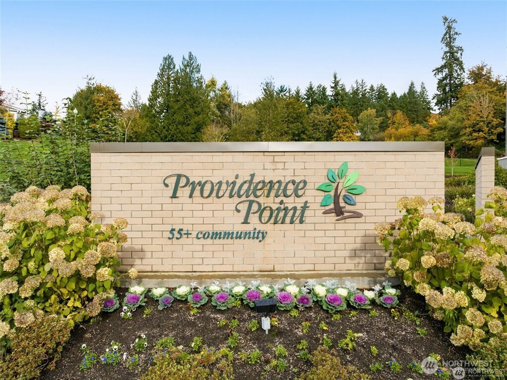 This impeccably maintained 2 bed/2bath Providence Point home underwent comprehensive renovations in 2023, including new windows, blinds, doors, trim, flooring, cabinetry, lighting, fixtures, hot water tank, and W/D, plus brand new fridge and range (Dec 2025). Custom closets throughout and stunning tile work elevate this condo to exceptional value—truly turnkey with years of carefree living ahead. Enjoy your covered patio while being steps away from the indoor swimming pool, sauna, fitness center, and pickleball courts. Beautiful landscaping and walking trails throughout this active 55+ community offer the perfect balance of relaxation and recreation. The primary suite features a custom closet system and en-suite bath with an oversized, beautifully tiled shower. The hall bath showcases more custom tile, marble vanity, shower, and an in-unit modern washer/dryer for added convenience. The guest bedroom includes its own custom closet system, ensuring comfort for your visiting friends and family. A wood-burning fireplace with reclaimed wood mantel and Moroccan tile creates an inviting focal point, while a spacious hallway coat closet adds to the optimized storage in this thoughtfully laid-out condo. An oversized one-car garage, long driveway, and plentiful guest parking adds to the convenience. You won’t see another home like this in Providence Point!