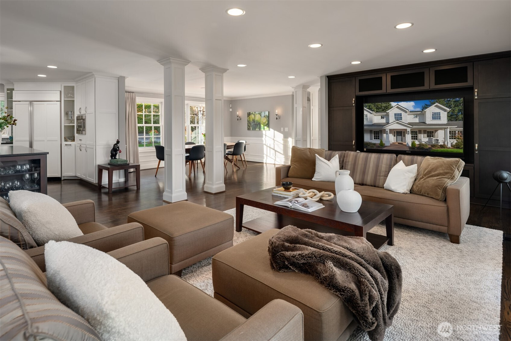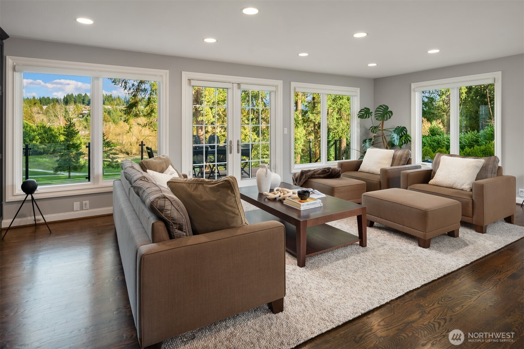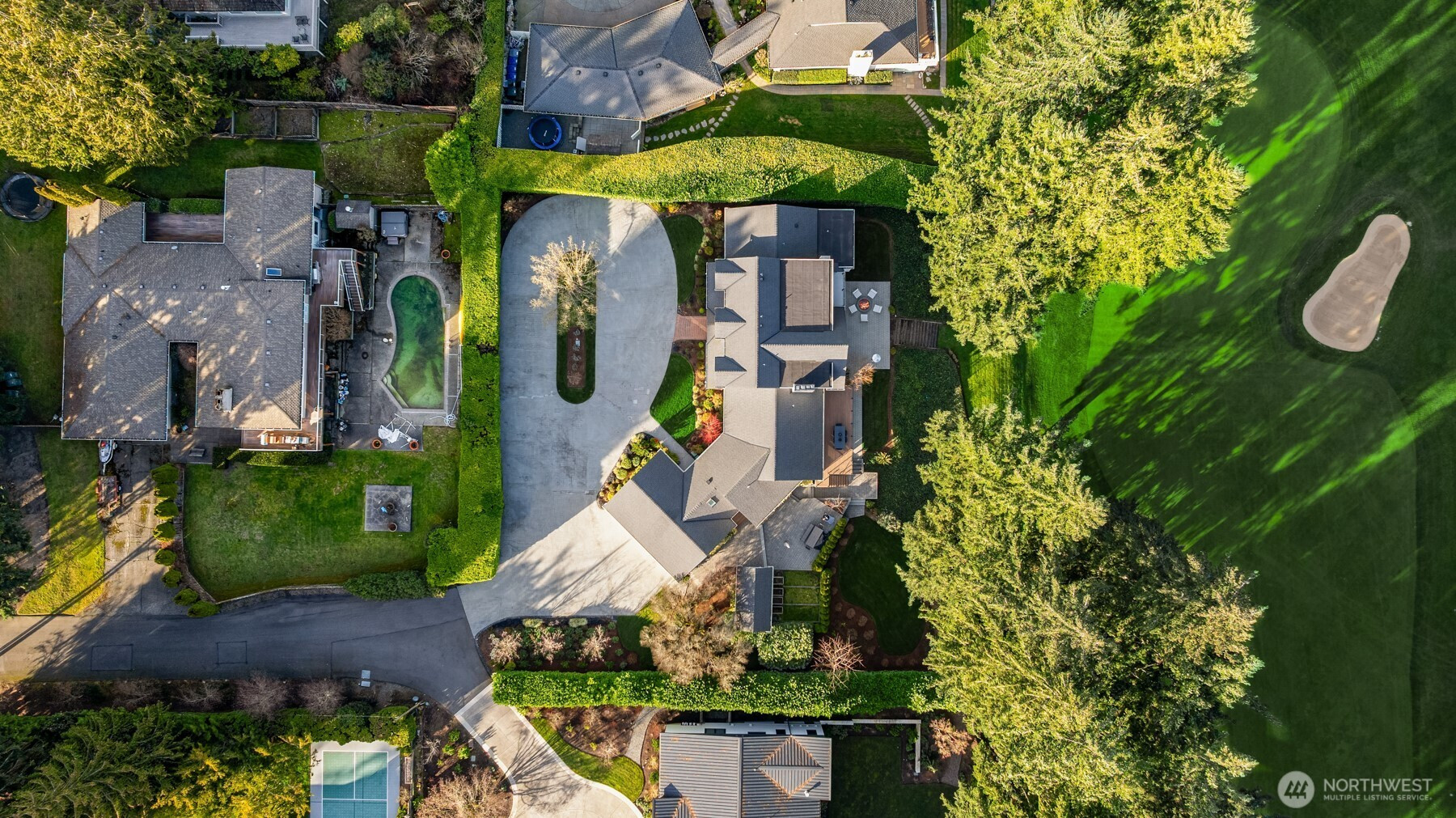 East Coast sophistication & timeless style privately nestled on one of Medina’s most prized avenues. Situated on nearly ¾ of an acre overlooking the 5th green of renowned Overlake Golf & Country Club, this home offers a fresh take on traditional with an open floor plan designed for effortless entertaining and easy everyday living. Sun-drenched, refined spaces include a soaring living room, family room with French doors to the view deck, and an eat-in kitchen with room for many chefs. 5 bedrooms including 3 on the main level and a view primary suite offering verdant golf course views and a spa-like bath with gorgeous Calacatta marble. The lower level boasts a rec room with wet bar and kitchenette, exercise room, and an additional bedroom + bath. Lush, tranquil outdoor living areas for gathering and soaking in the view. Treasured privacy within minutes of top-rated schools, prized Medina parks, the lake, commutes and everything Downtown Bellevue has to offer.