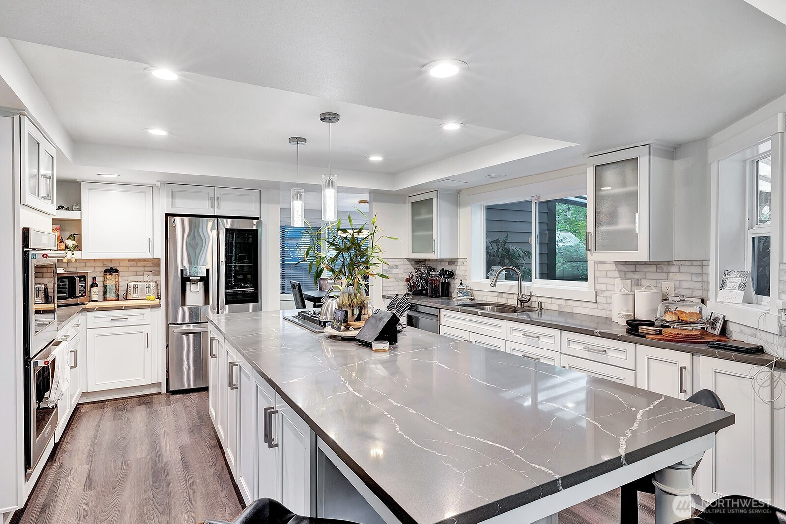 Welcome to your own oasis. Tucked back away from the street, beautiful custom built/designed home. With your circular driveway, 2 story Shop with 1300 sq ft, 2 car garage. Includes a covered car port and plenty of RV/Boat parking. Your 3580 sq ft home includes custom designed kitchen, double ovens, new windows and French doors out to your covered back deck. Formal living room and dining room, office and half bath on first floor. Step downstairs to your vaulted ceiling family room/theatre room. Upstairs to your large bonus room/bedroom, and up again to your 3 bedrooms. Master suit and Master bath, 2 bedrooms and 1 full bath, all on the top floor. Enjoy your whole house water filtration system, 50 year roof completed in 2020. Greenhouse with electricity in the backyard and large garden beds in the front. Enjoy your fully fenced small orchard with apple and cherry trees and plenty of parking!