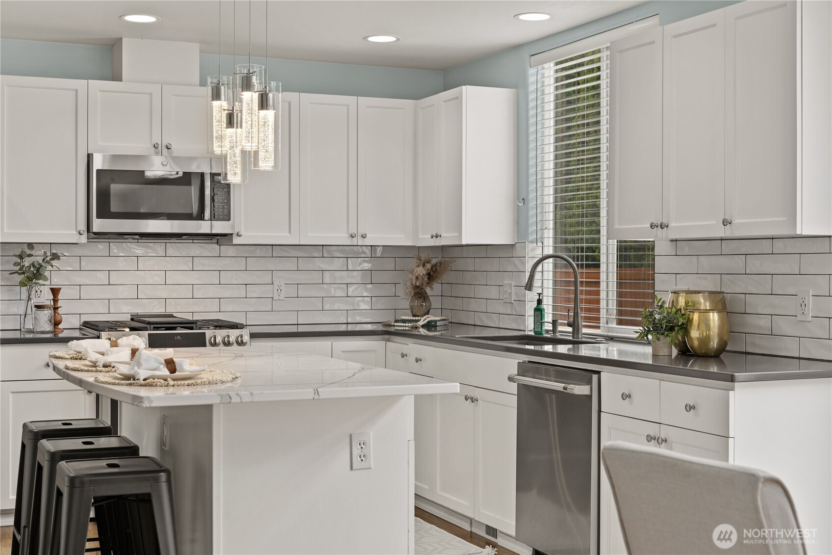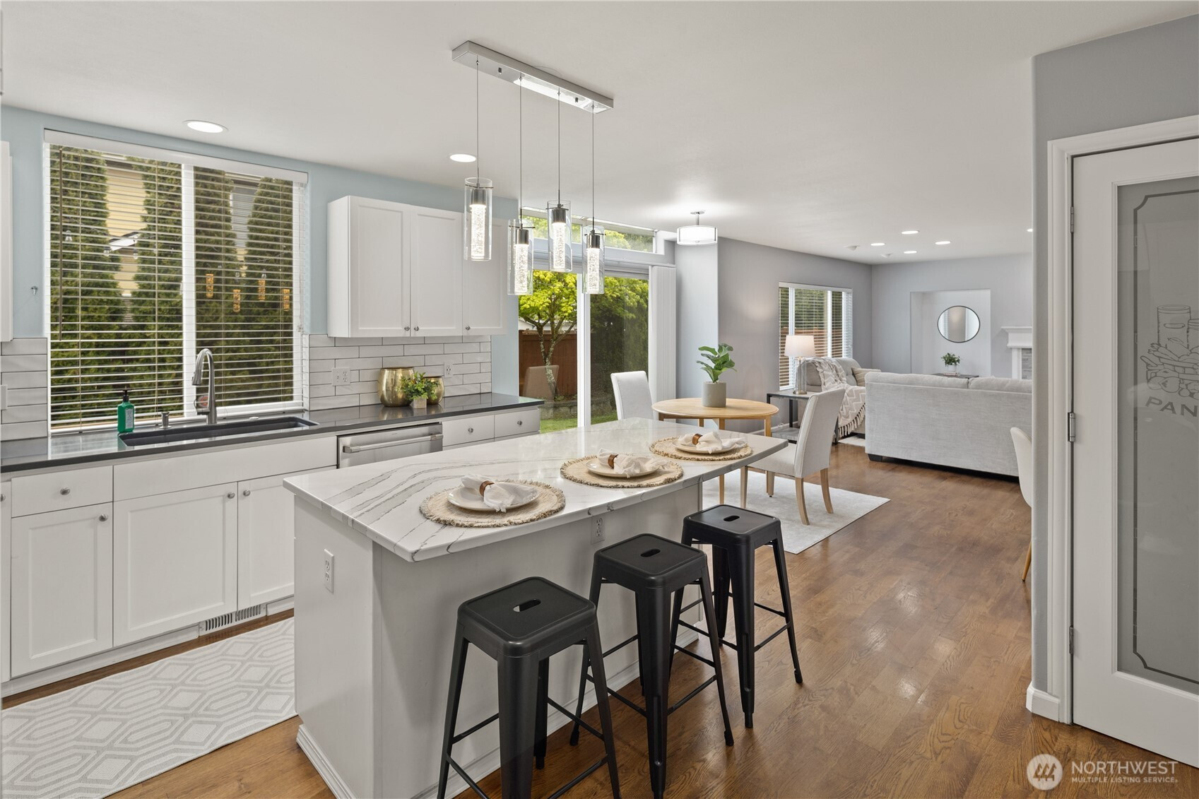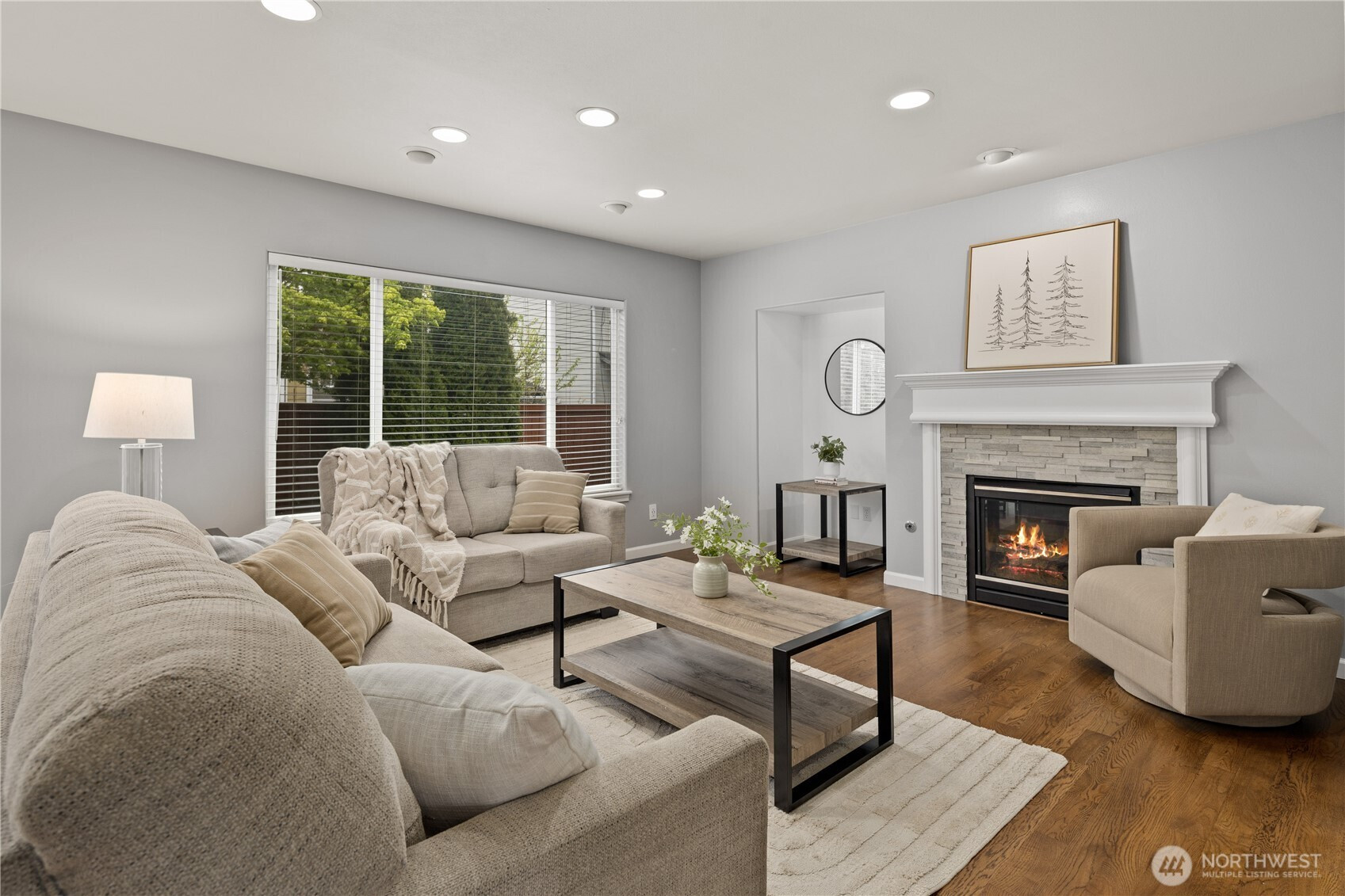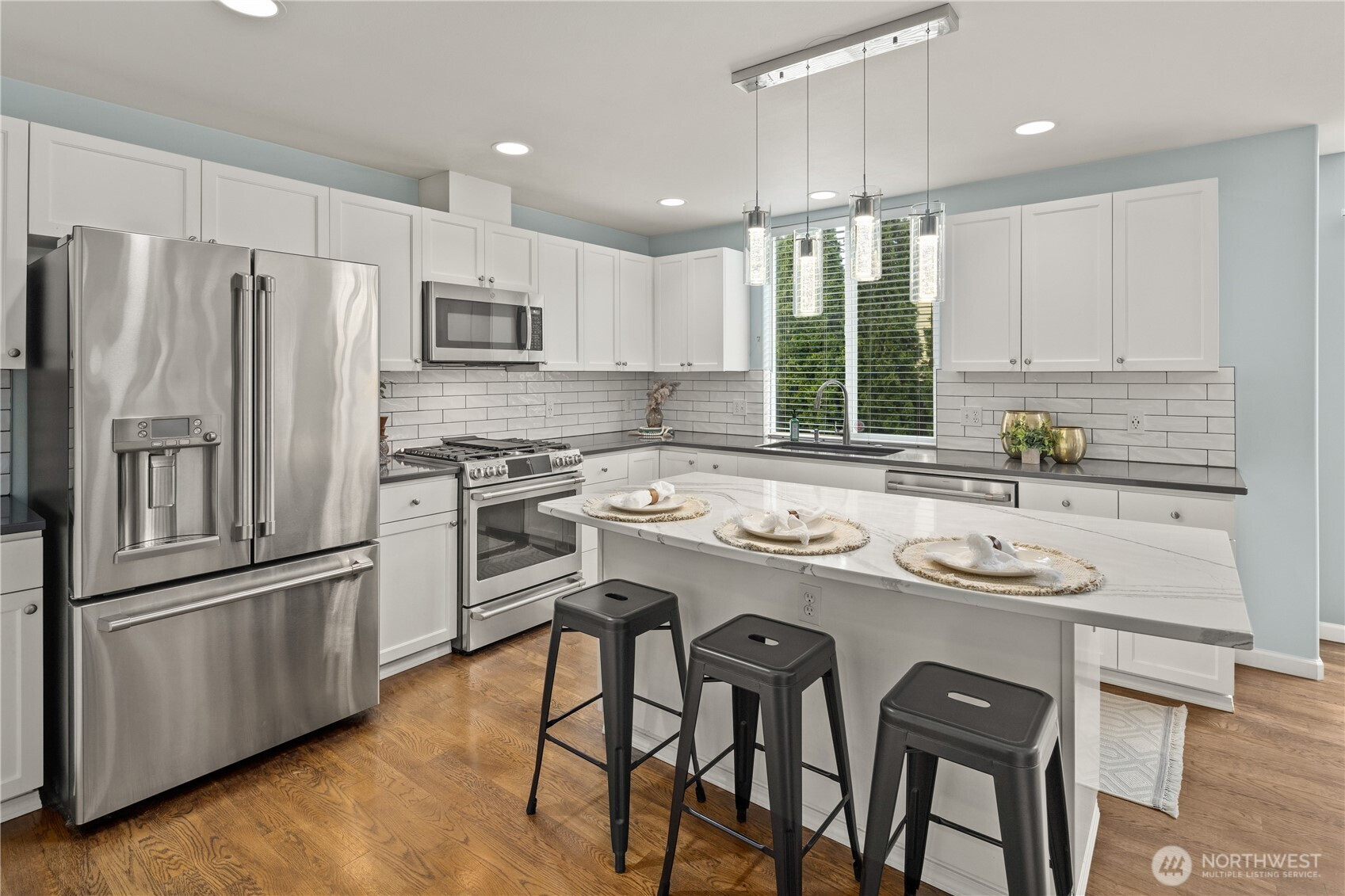 Welcome home to this beautifully updated Elk Run property, where comfort meets thoughtful upgrades. With $50,000 invested in the backyard, you’ll enjoy a low-maintenance turf lawn, stamped concrete patio, and walkway—perfect for relaxing or entertaining year-round. This spacious 3-bedroom home with a bonus room and 2.5 bathrooms offers approximately 2,250 square feet of light-filled living space and cozy gas fireplace. The open-concept floorplan features real hardwood floors throughout the main level, a dedicated dining area, and a large kitchen island ideal for hosting gatherings. The kitchen shines with quartz countertops and crisp white cabinetry, creating a clean, modern feel. Primary bedroom is spacious and offers a 5 piece ensuite with walk in closet. A 3-car garage and additional parking provide plenty of room for vehicles, storage, and recreational gear. Additional features include generator wiring for peace of mind during stormy seasons. Located within walking distance to parks, playgrounds, and a community basketball court, this home also sits just minutes from all the amenities Maple Valley has to offer. Enjoy direct access to the former Elk Run Golf Course, now a 40-acre open space with scenic trails just steps from your door. This is a home you won’t want to miss!