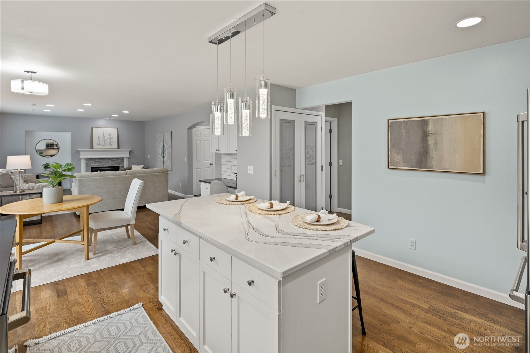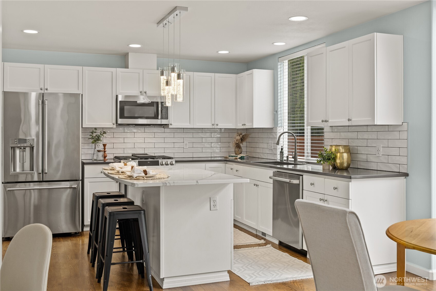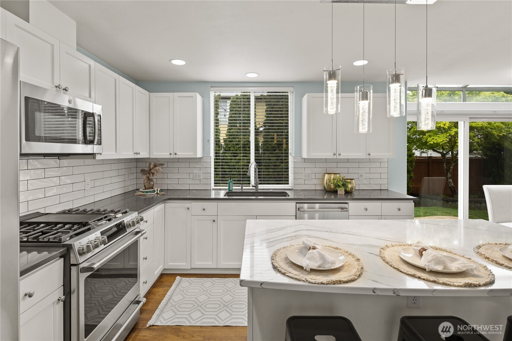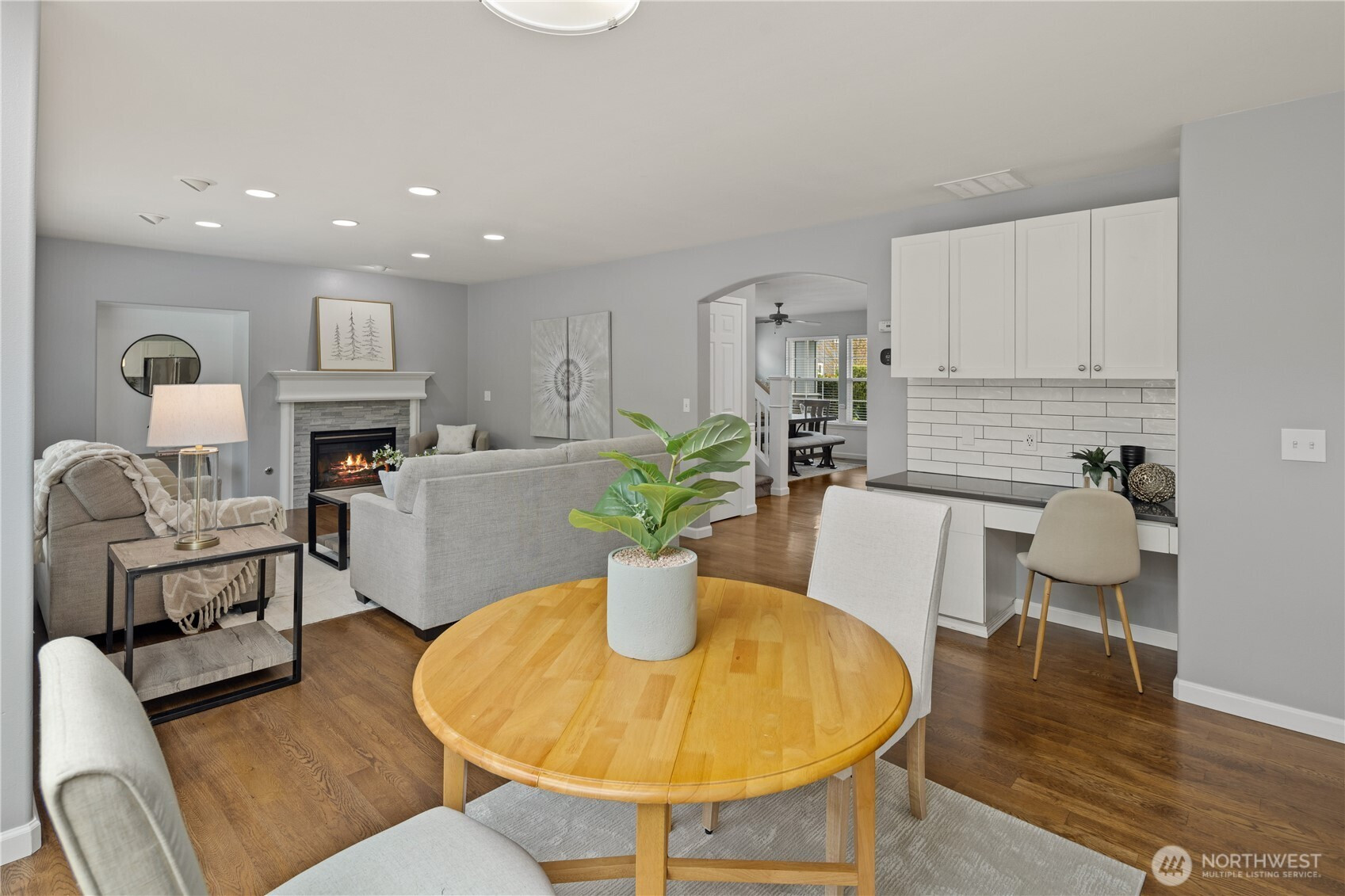 Welcome home to this beautifully updated Elk Run property, where comfort meets thoughtful upgrades. With $50,000 invested in the backyard, you’ll enjoy a low-maintenance turf lawn, stamped concrete patio, and walkway—perfect for relaxing or entertaining year-round. This spacious 3-bedroom home with a bonus room and 2.5 bathrooms offers approximately 2,250 square feet of light-filled living space and cozy gas fireplace. The open-concept floorplan features real hardwood floors throughout the main level, a dedicated dining area, and a large kitchen island ideal for hosting gatherings. The kitchen shines with quartz countertops and crisp white cabinetry, creating a clean, modern feel. Primary bedroom is spacious and offers a 5 piece ensuite with walk in closet. A 3-car garage and additional parking provide plenty of room for vehicles, storage, and recreational gear. Additional features include generator wiring for peace of mind during stormy seasons. Located within walking distance to parks, playgrounds, and a community basketball court, this home also sits just minutes from all the amenities Maple Valley has to offer. Enjoy direct access to the former Elk Run Golf Course, now a 40-acre open space with scenic trails just steps from your door. This is a home you won’t want to miss!