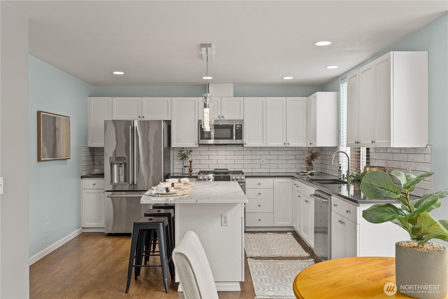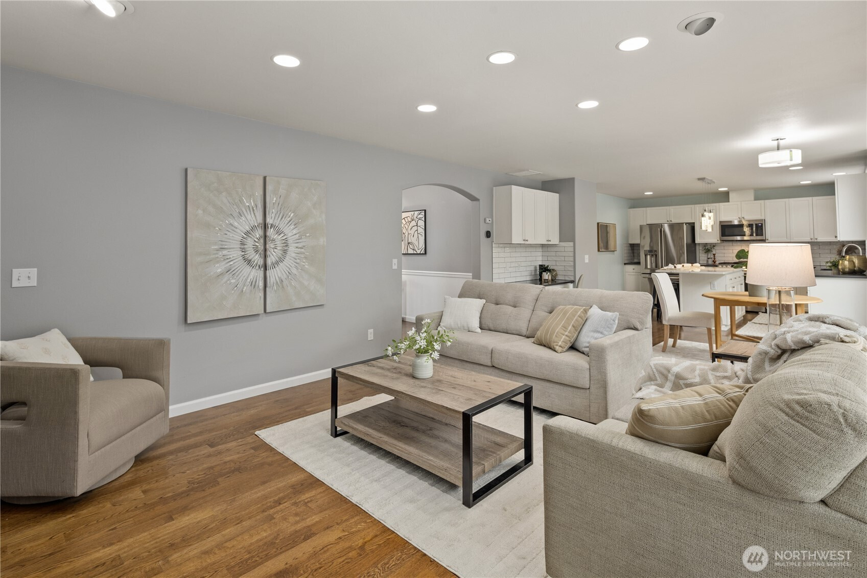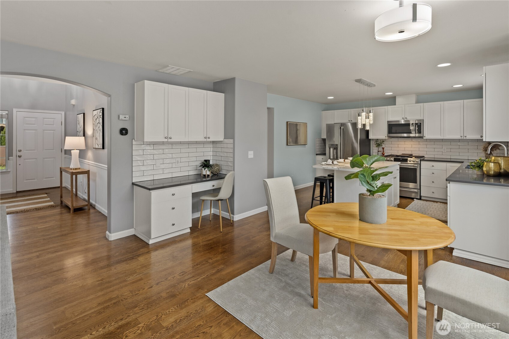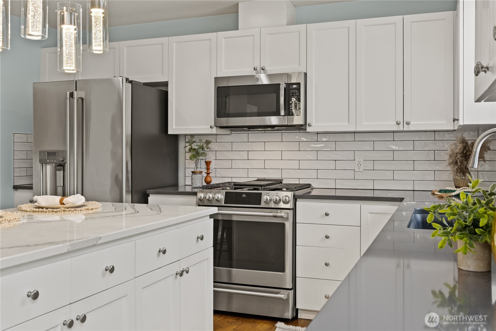 Welcome home to this beautifully updated Elk Run property, where comfort meets thoughtful upgrades. With $50,000 invested in the backyard, you’ll enjoy a low-maintenance turf lawn, stamped concrete patio, and walkway—perfect for relaxing or entertaining year-round. This spacious 3-bedroom home with a bonus room and 2.5 bathrooms offers approximately 2,250 square feet of light-filled living space and cozy gas fireplace. The open-concept floorplan features real hardwood floors throughout the main level, a dedicated dining area, and a large kitchen island ideal for hosting gatherings. The kitchen shines with quartz countertops and crisp white cabinetry, creating a clean, modern feel. Primary bedroom is spacious and offers a 5 piece ensuite with walk in closet. A 3-car garage and additional parking provide plenty of room for vehicles, storage, and recreational gear. Additional features include generator wiring for peace of mind during stormy seasons. Located within walking distance to parks, playgrounds, and a community basketball court, this home also sits just minutes from all the amenities Maple Valley has to offer. Enjoy direct access to the former Elk Run Golf Course, now a 40-acre open space with scenic trails just steps from your door. This is a home you won’t want to miss!