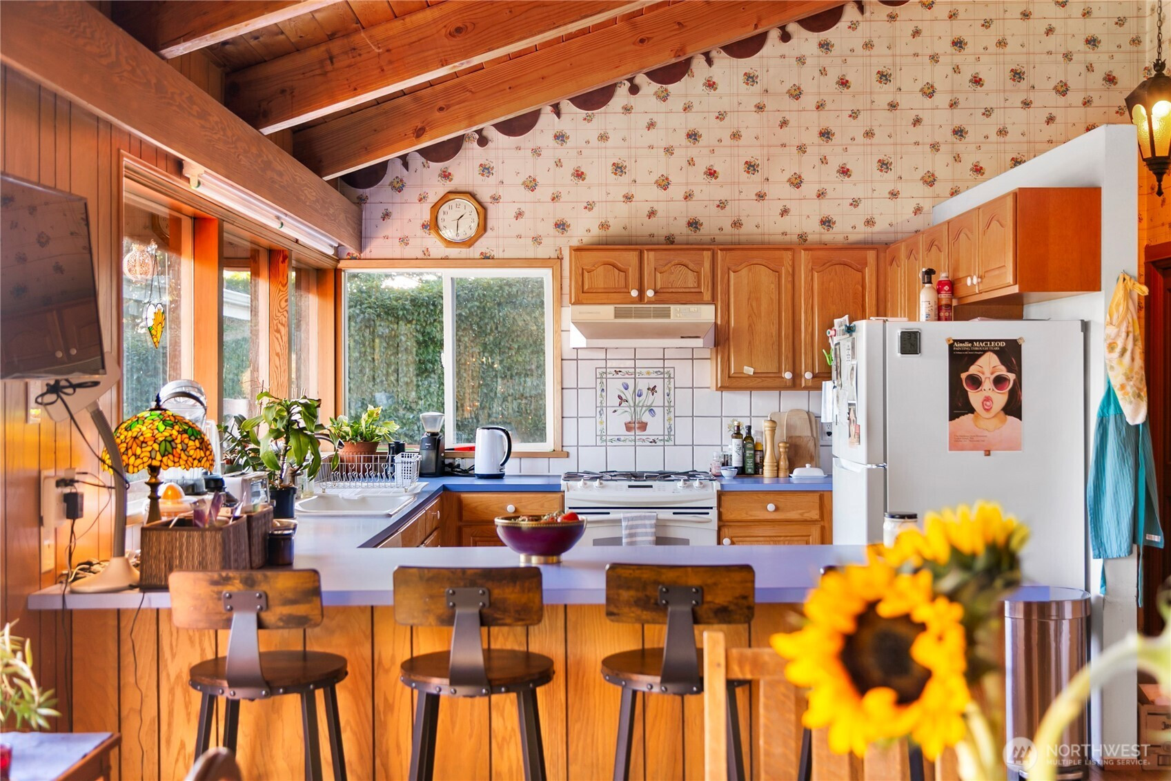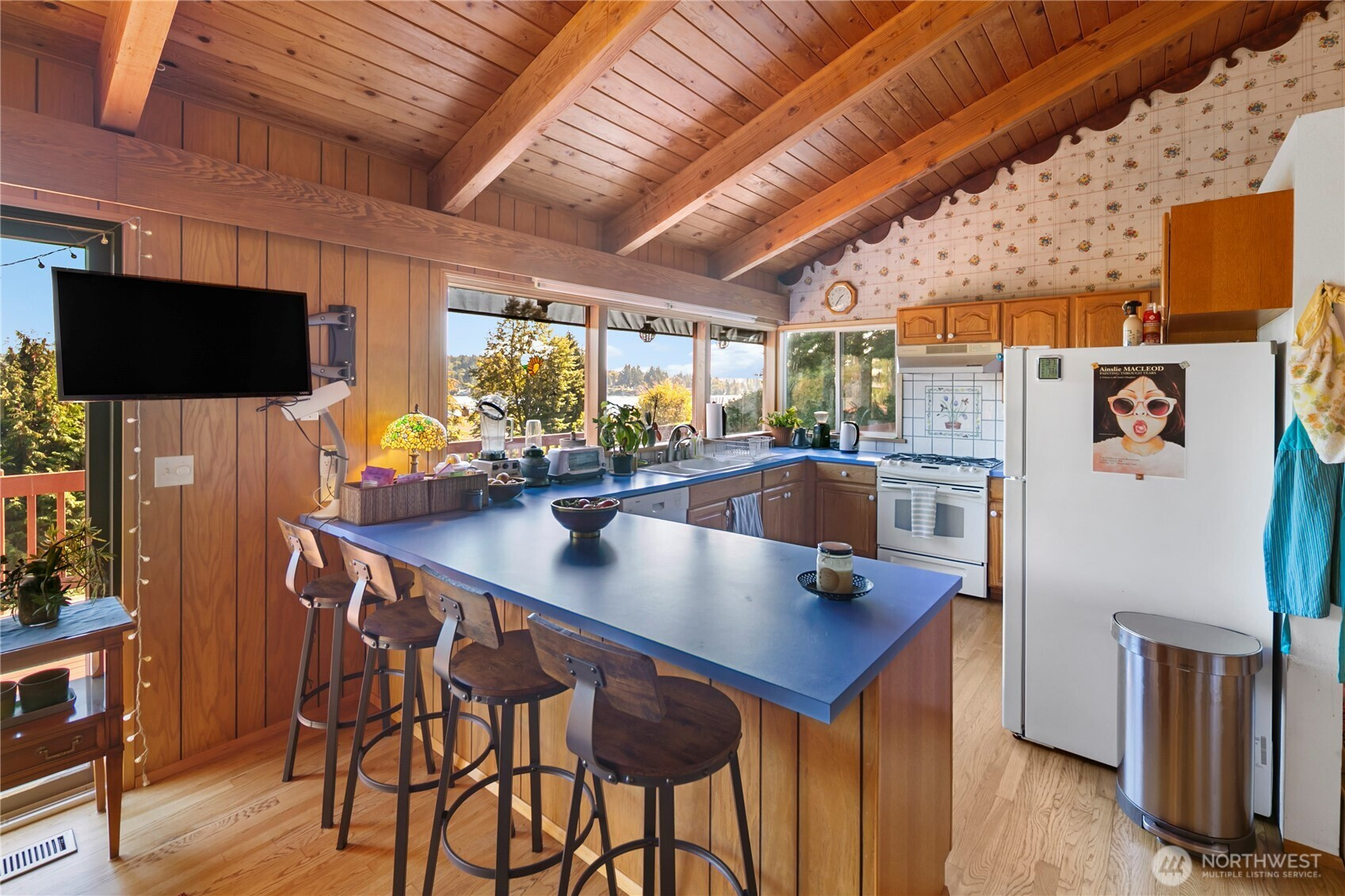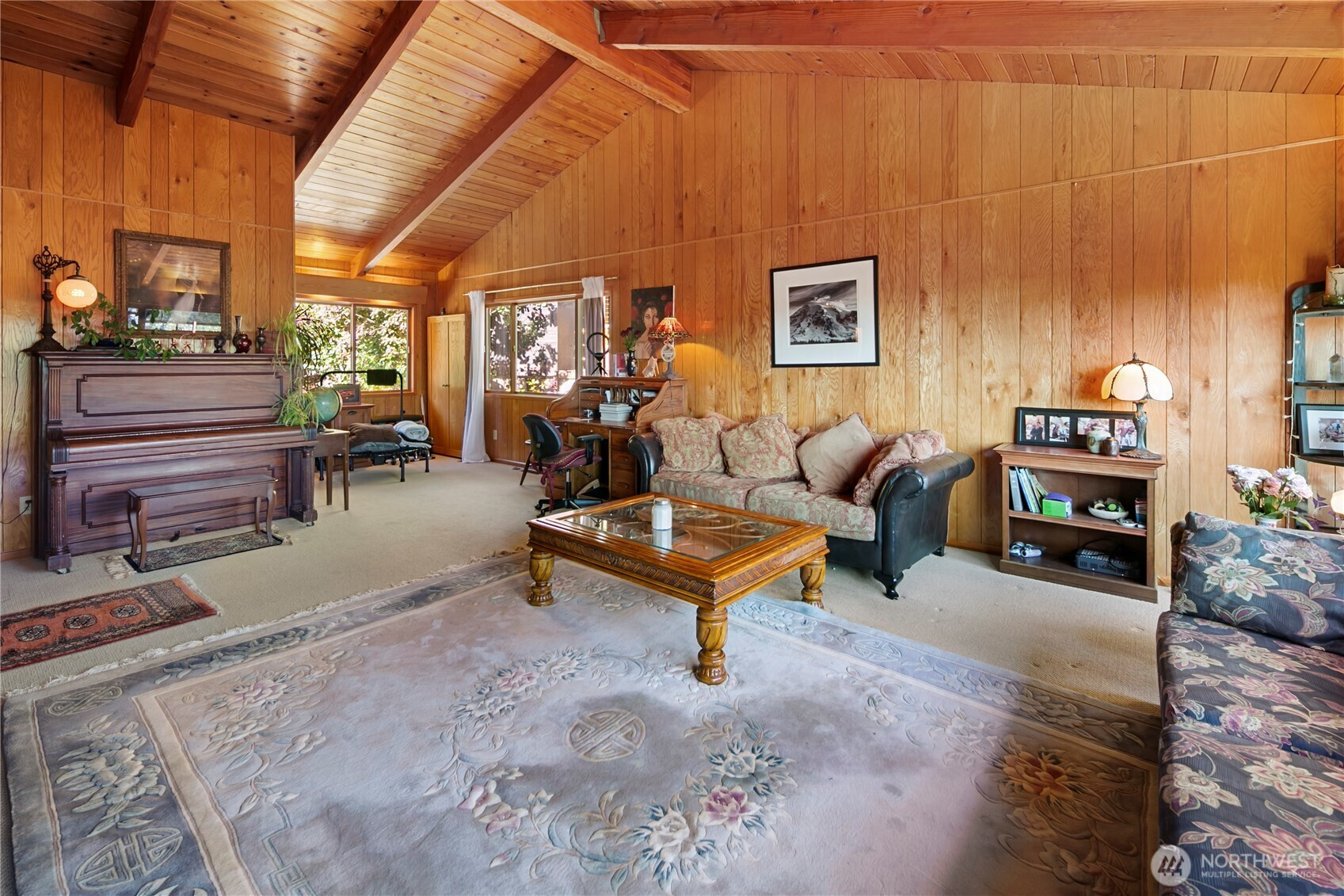 Spacious late mid century home with stunning views of the marina, mountains, & sound. Only the second time for sale since it was built in 1968. Four spacious bedrooms and room for absolutely everything else. Pitched cedar lined ceilings and exposed beams create such tremendous warmth and good energy. Preserved character throughout w/ just the right level of updates & modernity. ~3,200 sq. ft. of light-filled living includes floor to ceiling window views from kitchen, dining and great room. An 1,100+ sq. ft. deck extends living space outdoors. Perfect deck for entertaining, inner harbor fireworks and dining al fresco! Large studio/shop! In home elevator, ramps, & rails throughout add great accessibility to the entire home. Move in ready!