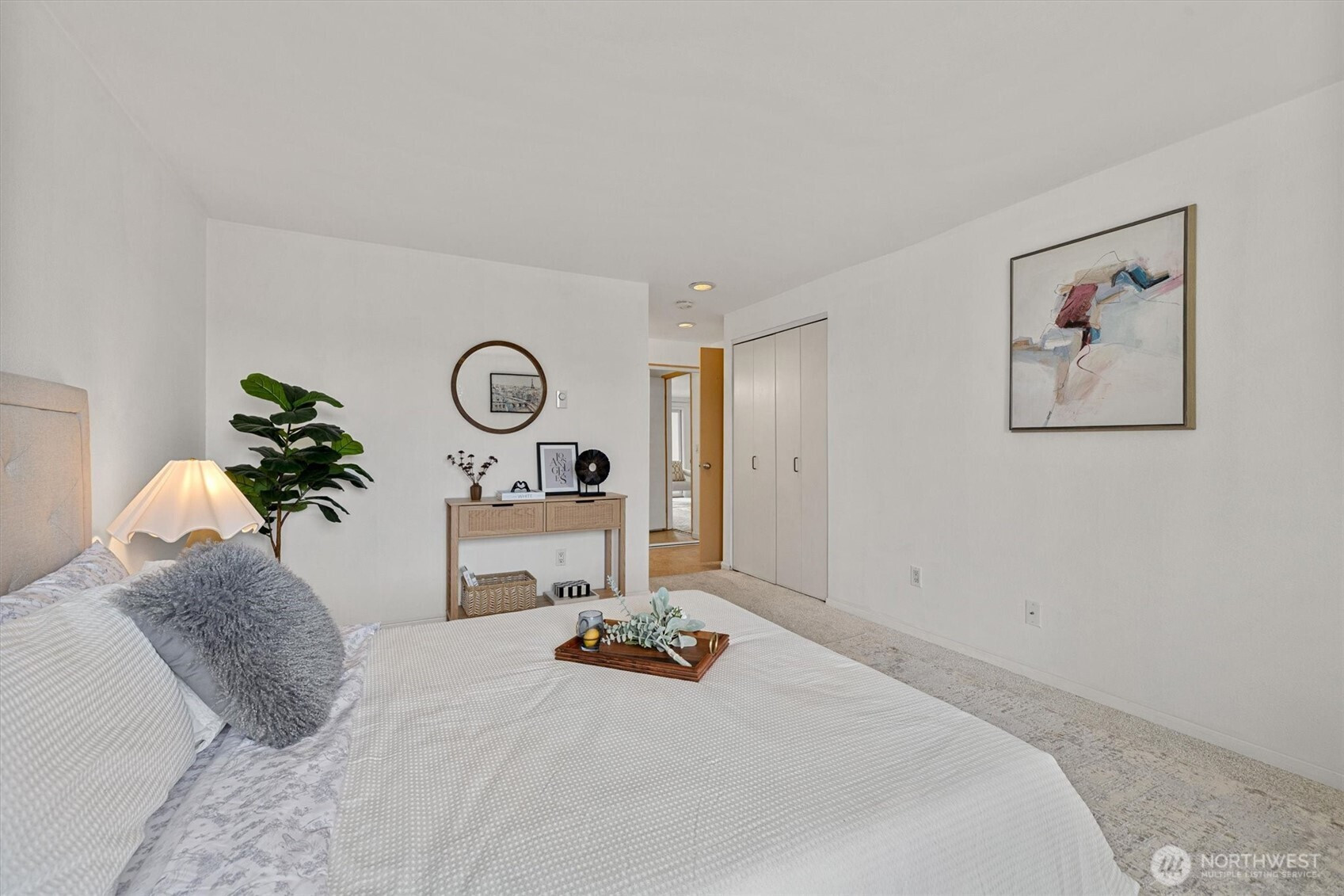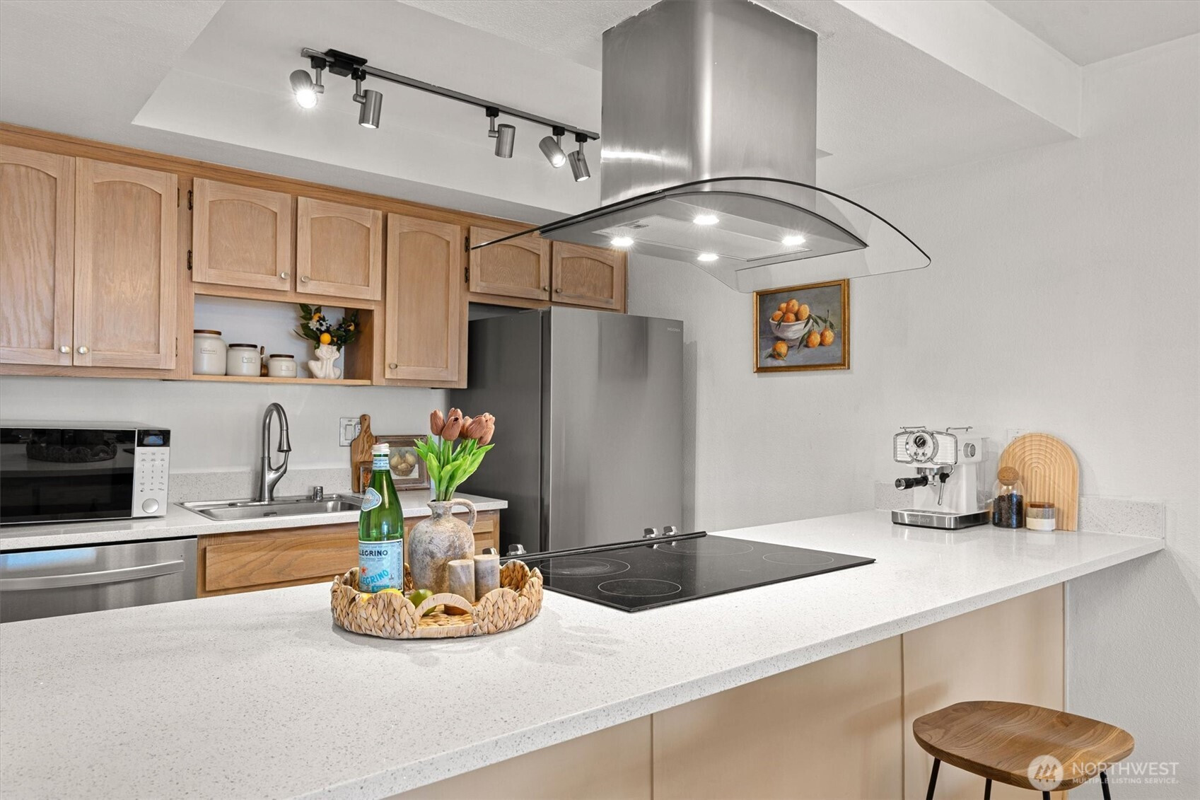 Enjoy peace of mind in this secure, gated building while experiencing the perfect blend of city convenience and quiet comfort in this west-facing home filled with natural light and open views. The spacious living area flows to a private balcony — perfect for morning coffee or sunset wine. Inside, find modern updates: quartz countertops, oak floors, newer carpet and refrigerator, plus a refreshed shower with marble-look tile. Everything you need is steps away — two storage spaces, recreation room, sauna, and outdoor pool are all on the same floor. With in-unit washer/dryer, covered & guest parking, HOA covering most utilities (even internet!), and close to tech hubs, Whole Foods, and Interbay Golf, this home makes everyday living effortless.