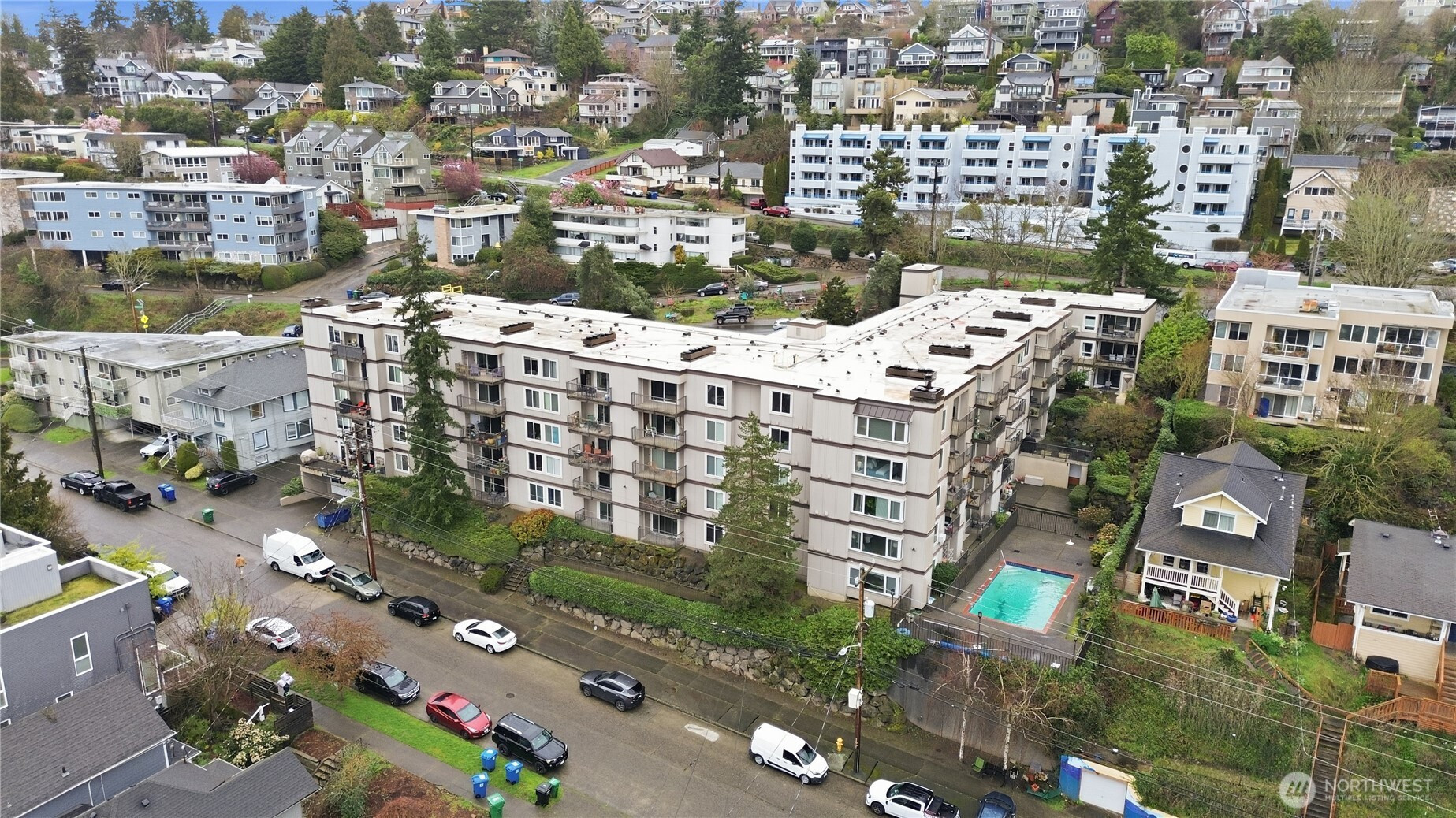 Experience elevated living at the sought-after Pierre Marquis, an exceptional top-floor residence in the heart of Queen Anne. This beautifully remodeled 2-bedroom, 2-bath home offers a perfect blend of modern style and everyday comfort, illuminated by natural light from overhead skylights. Step inside to discover a spacious interior featuring all new appliances, new flooring, and carpets throughout, complemented by a versatile zone heating system for personalized climate control. The primary suite is a true retreat, boasting a huge closet, a generously sized bedroom, and a stunning, updated bathroom. Relax on your private balcony and watch the ferries and cruise ships glide across the water, all while taking in breathtaking sunset views of Elliott Bay. Residents enjoy the peace of mind provided by a 24-hour on-site property manager and a well-funded HOA, along with a premier covered parking spot and an extra-large storage closet located just outside the unit. Ideally situated near dog-friendly parks, shops, and dining, this home combines convenience and location in one exceptional package. Common area amenities include: pool and sauna, game room with meeting space with kitchen and dedicated additional storage.