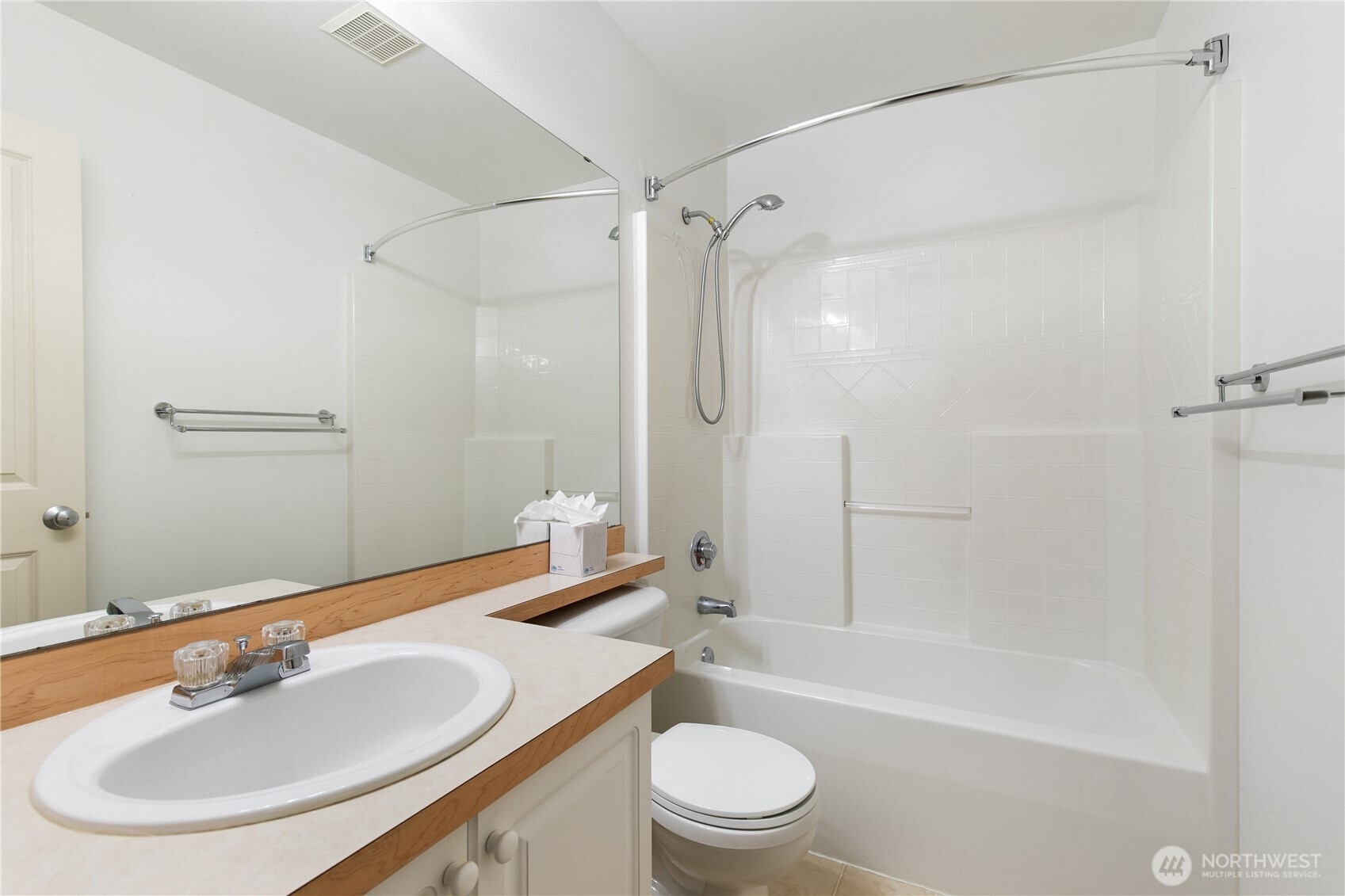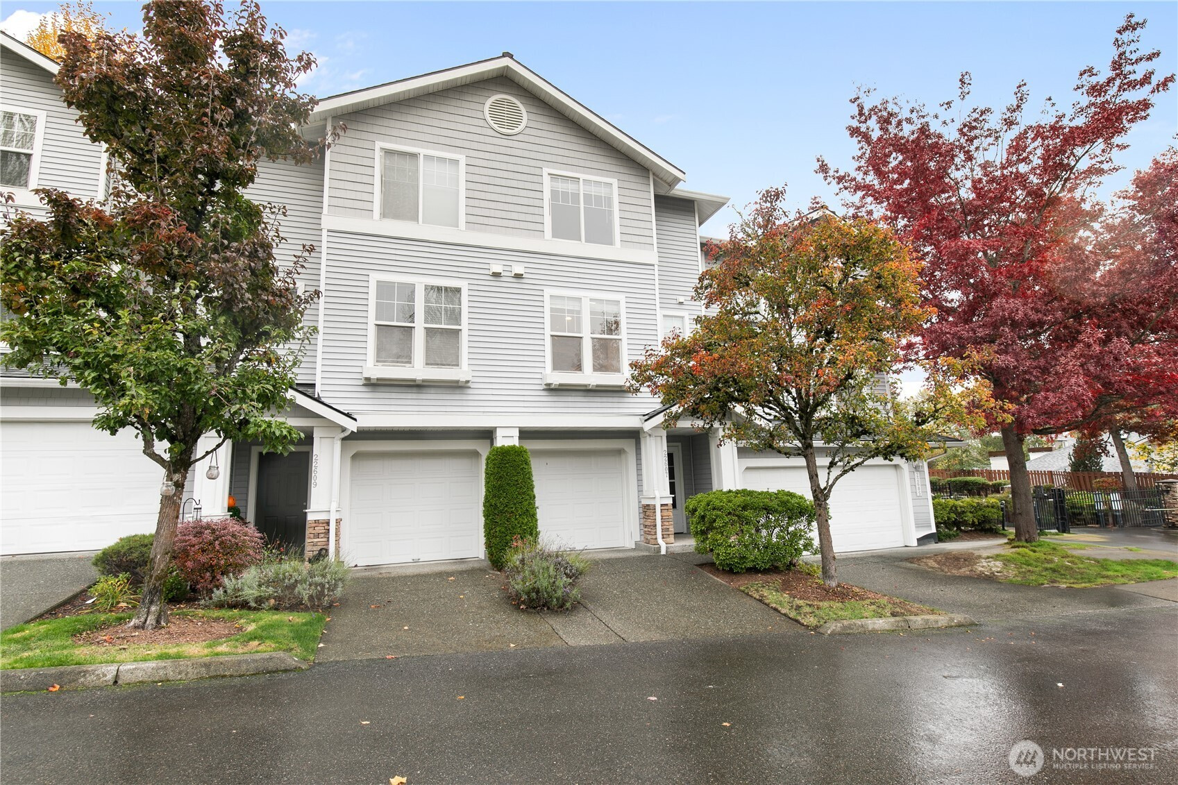 Welcome to Riverview at The Meadows, a gated townhome community offering comfort and convenience. This bright 2-bedroom, 2.5-bath home features soaring 9-ft ceilings and an open floor plan with abundant natural light. New flooring throughout. Cozy up by the gas fireplace or cook in the kitchen with center island, and gas range. Upstairs includes two primary suites, each with private baths. Enjoy your private patio surrounded by greenery, full-size W/D, and an attached tandem 2-car garage plus guest parking. Close to everything…light rail, Sounder, I-5 & 167. Minutes from SeaTac, Southcenter, Amazon fulfillment center, and Boeing. All appliances included!