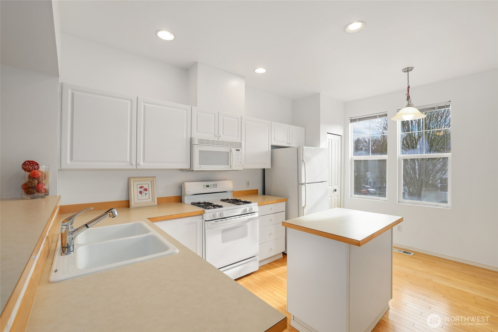(503) 893-8874Welcome to this beautiful townhome in the well-maintained, quiet & gated community of The Meadows. You will love this bright 2-bedroom, 2.5-bath home featuring soaring 9-ft ceilings with abundant natural light. Open main level with gorgeous hardwood floors, a spacious chef's kitchen with center island, arched dining & living room with cozy gas fireplace. Enjoy the wall of windows overlooking your Private patio surrounded by greenery. Upstairs includes two primary suites, each with private baths and lots of storage space! Features brand new carpet. Fresh interior paint in kitchen, dining room, and primary bedroom & bath. Upgrades include: New water heater and garbage disposal, new primary bath flooring and bathtub. Attached tandem 2-car garage plus guest parking. Washer, dryer, and all appliances are included, making this truly move-in ready. Extremely peaceful with no neighbors behind - just a lovely view! Next to Green River trail and Van Doren’s Landing park. Close to everything- Link light rail, Sounder, I-5 & 167. Minutes from SeaTac, Southcenter, Amazon fulfillment center, and Boeing. Mortgage savings may be available for buyers of this listing.