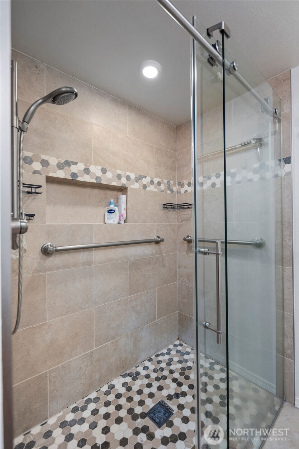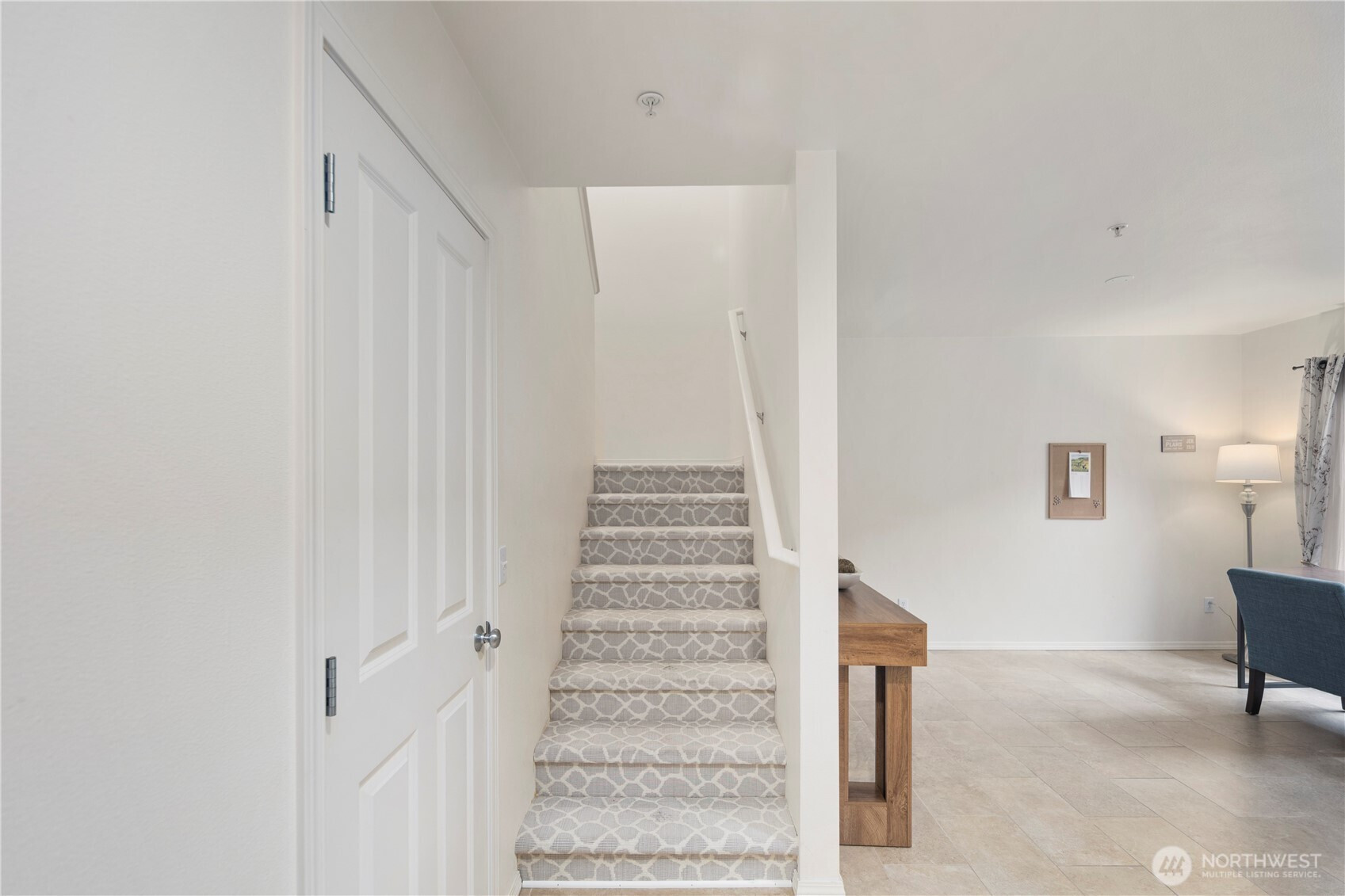 Light-filled and spacious two-story townhome in the gated Meadows at Riverview community. Soaring vaulted ceilings and large windows fill the home with natural light while showcasing peaceful greenbelt views. The open living and dining areas feature beautiful luxury vinyl plank flooring and a cozy gas fireplace, creating the perfect space for everyday living or entertaining. The updated kitchen offers granite countertops, stainless steel appliances, gas range with double oven, custom pantry with abundant storage, and a high bar ideal for entertaining. Rare main-level primary suite includes dual vanities with granite counters, updated cabinetry, walk-in tiled shower and walk-in closet. A bonus room with built in cabinet and convenient half bath complete the main level. Up the newly carpeted stairs you’ll find an additional bedroom, full bath, and loft space ideal for a home office, media room, or guest area. Enjoy your newly refurbished private deck overlooking lush greenery and views of the Cascades. Attached 2-car garage plus driveway parking. Convenient access to I-5, Hwy 167, shopping, parks, trails, and SeaTac Airport.