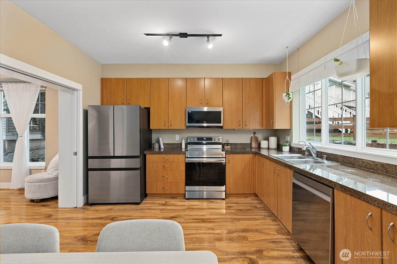 Refined living meets natural serenity in this beautifully positioned **corner townhome at Nature’s Walk in Redmond Ridge**. Surrounded by mature greenery, parks, and miles of scenic trails, this sought-after community offers a peaceful yet connected lifestyle. The home features an open-concept layout with soaring ceilings, expansive windows, polished floors, and a welcoming fireplace that anchors the main living space. The dining area is framed by a picturesque window that fills the home with natural light. The thoughtfully designed kitchen showcases **brand new stainless steel appliances**, granite countertops, abundant cabinetry, and pocket French doors—perfectly blending style and function. The **expansive bedrooms** provide comfort and versatility, while the primary suite offers a tranquil retreat overlooking the greenbelt, complete with a spacious en-suite bath and full-length closet. Enjoy outdoor living in the **private backyard oasis with sculpted landscaping and a secluded sitting area**, ideal for morning coffee or relaxing evenings, backing to greenbelt and trails for rare privacy. Private garage included. Residents enjoy a **community clubhouse, parks, and extensive trails**, all within walking distance to amenities, SpaceX, and top-rated Lake Washington schools including Rosa Parks Elementary and Timberline Middle. No rental cap. More than a home—it’s a lifestyle.
