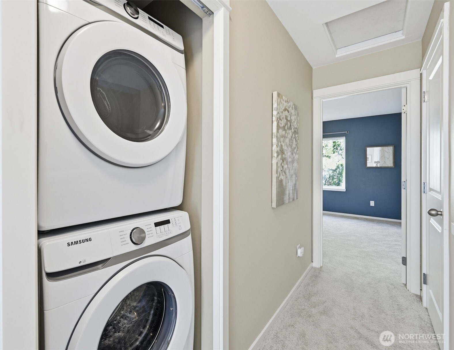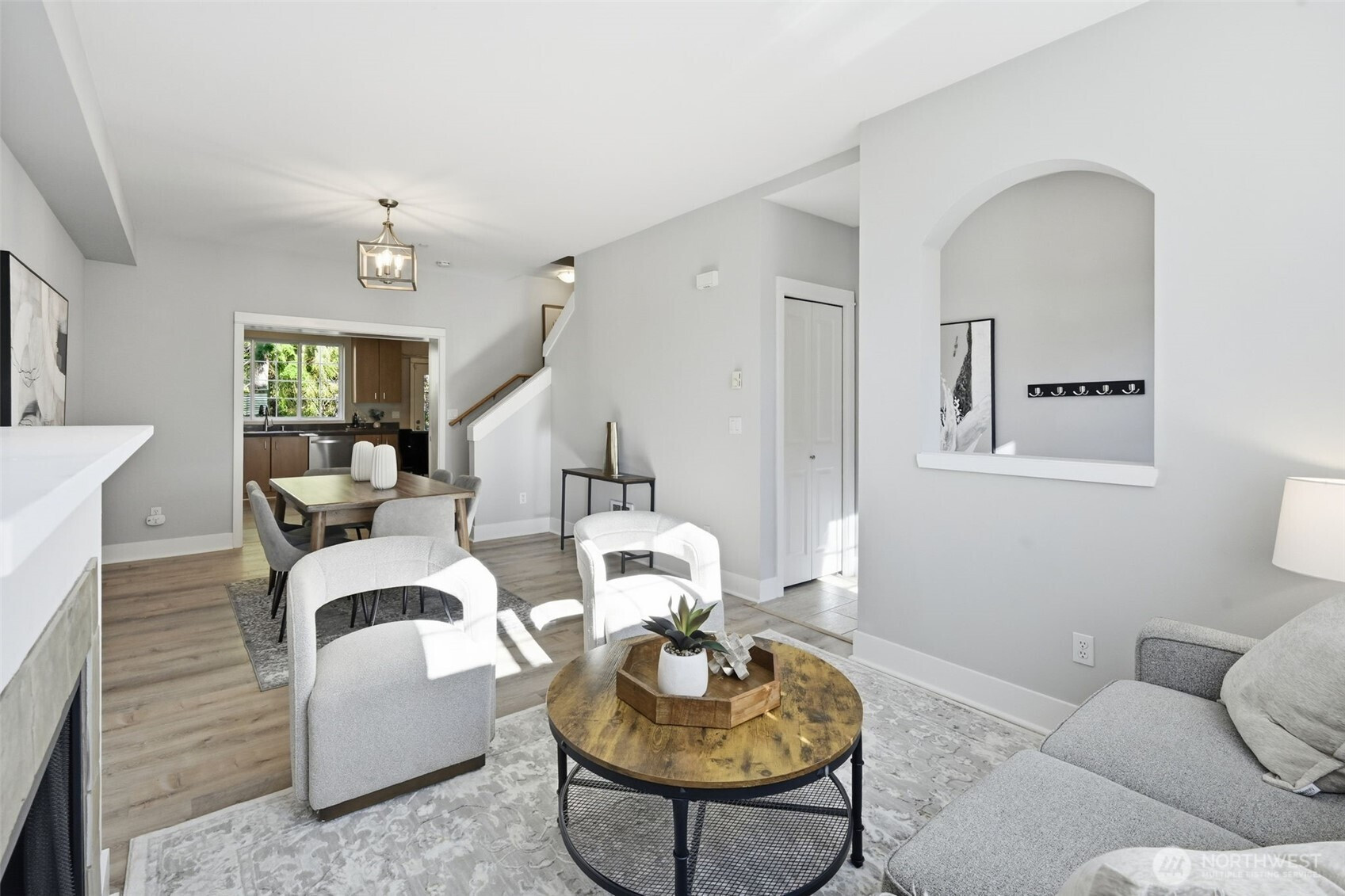 Welcome to Nature’s Walk at Redmond Ridge, a highly sought-after community known for its trails, award winning schools, and neighborhood feel. This well-appointed 2 bedroom, 2 full bath home spans 1,120 SF, featuring an open-concept floor plan that perfectly balances style and functionality. Recent updates include luxury vinyl flooring, plush new carpeting throughout and a new water heater. The heart of the home is a spacious kitchen equipped with stainless-steel appliances and ample cabinetry, flowing effortlessly into the dining and living areas. The primary suite serves as a true retreat, featuring an en-suite bath and views of the lush greenbelt. Step outside to a fully fenced private backyard offering rare privacy and a serene natural setting. Two parking spaces, an oversized detached garage plus an additional designated parking right out front. Conveniently located, just steps to Rosa Parks Elementary, parks and trails. With no rental cap, this property also presents an excellent investment opportunity close to major employers such as Microsoft and SpaceX.