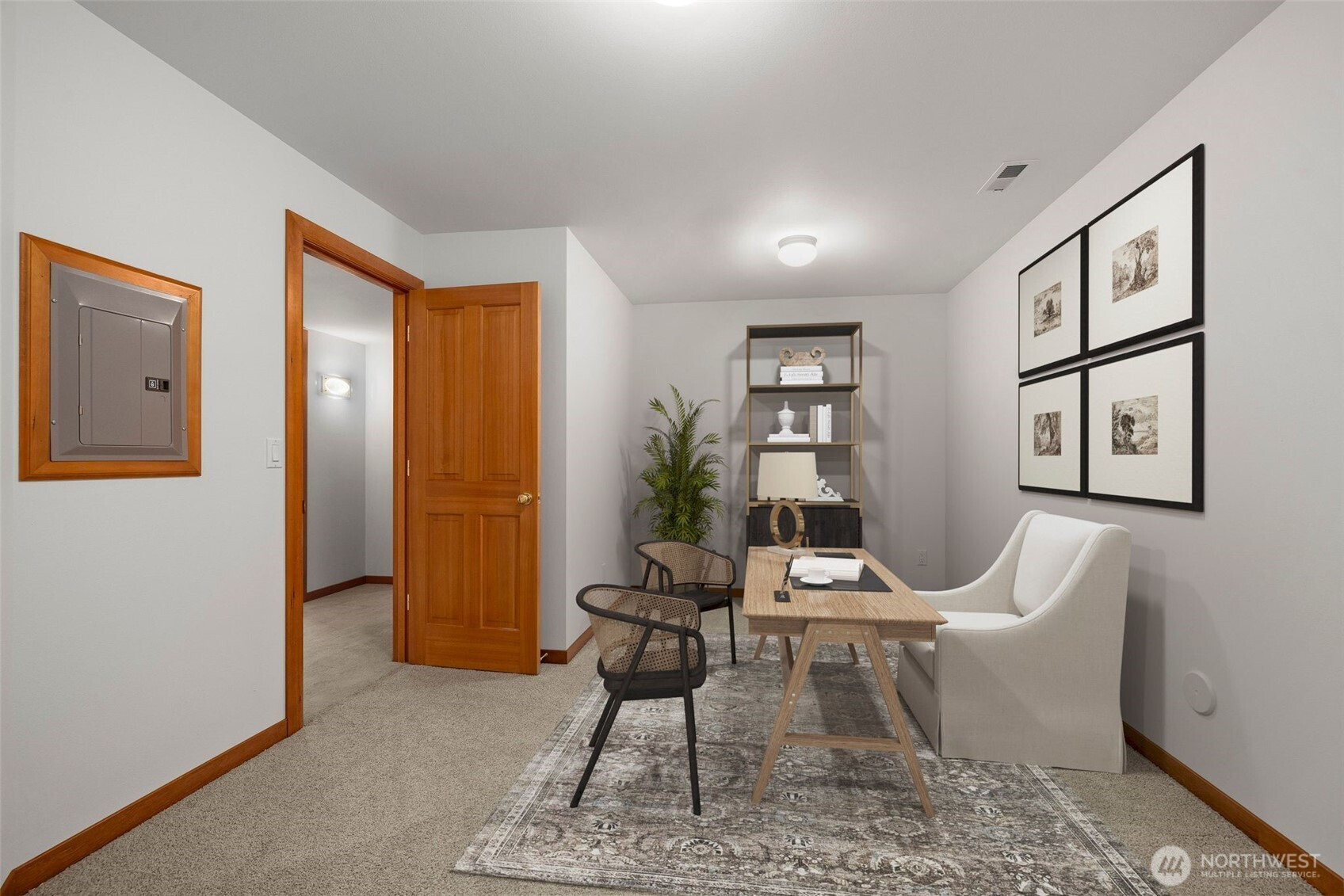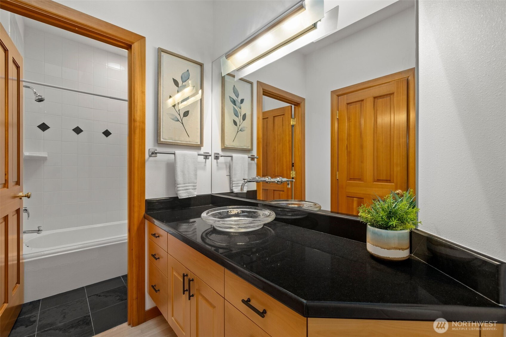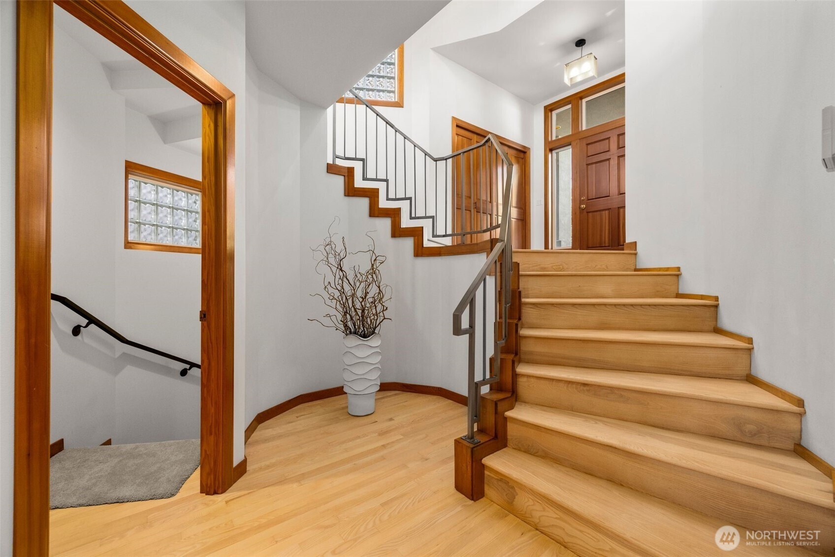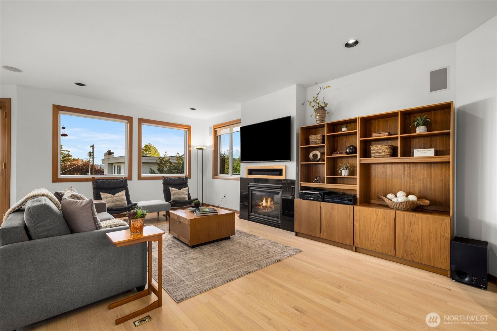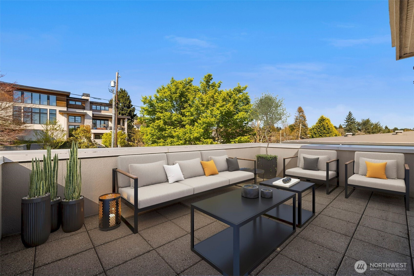 Set just above charming downtown Kirkland, this 6 bedroom Northwest Contemporary offers a sense of ease from the moment you arrive, with soft natural light, clean lines, and glimpses of Mt. Rainier, the Bellevue skyline, and surrounding greenery. Life unfolds naturally on the main level, where rich hardwood floors lead you through open yet defined spaces designed for gathering and day to day living. The kitchen becomes the natural place to linger, anchored by alder cabinetry and generous workspace, with a thoughtful connection to both dining and living areas. Whether hosting friends or enjoying a quiet evening, the flow feels intuitive, extending effortlessly to the balcony where sweeping views create a memorable backdrop. Just beyond, additional living spaces offer flexibility, making it easy to shift between work and connection throughout the day. The main level primary suite is set apart, offering a quieter place to unwind, with a spa-like bath that encourages a slower pace. Three additional bedrooms and a well-placed laundry room complete the level with everyday convenience. Downstairs, the home opens up to even more possibility, with space that can evolve into a private ADU or remain as an extension of the home for guests, longer stays, or multi-generational living. Thoughtfully designed and easy to live in, this home balances openness with privacy, all within moments of parks, beaches, and the energy of downtown Kirkland.