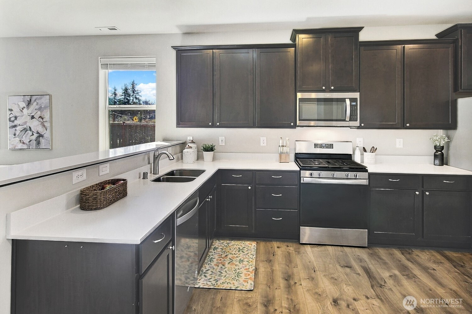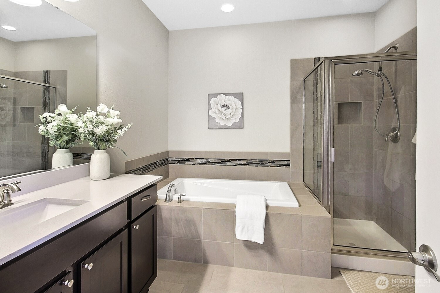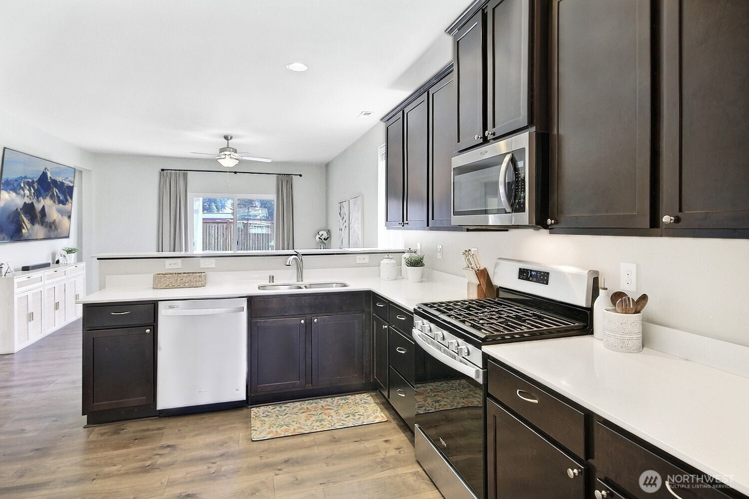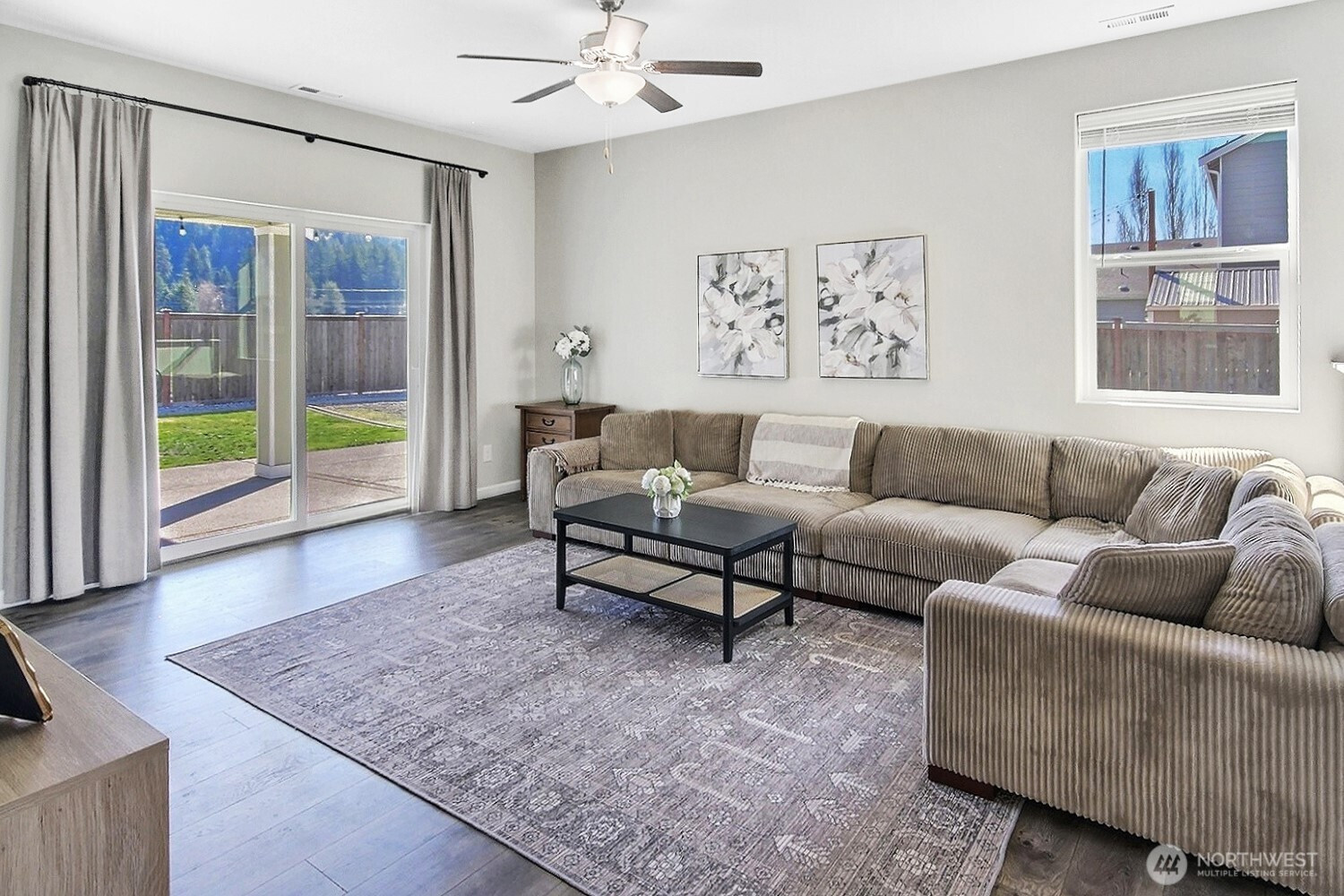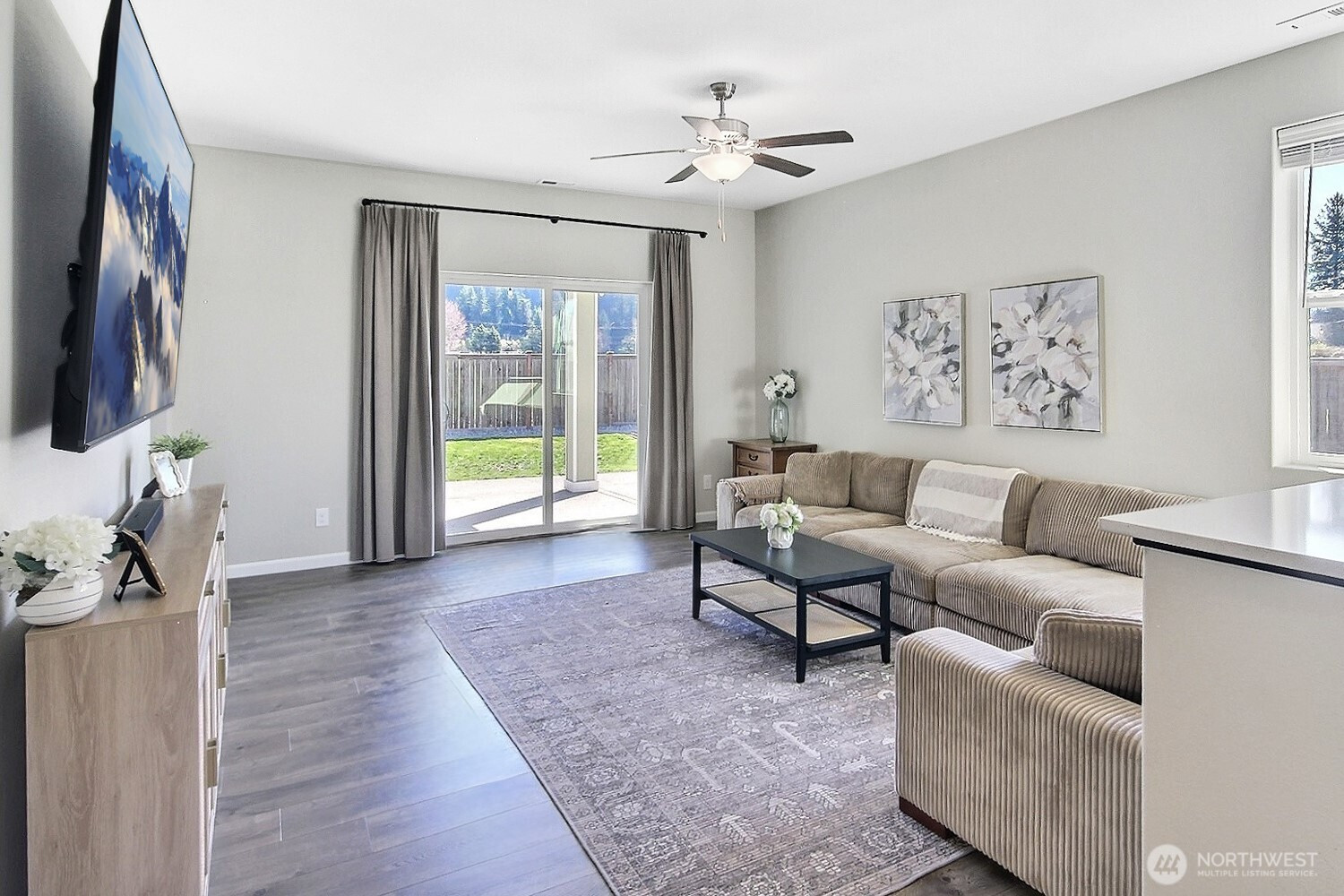 Looking for a 1 story home in Enumclaw with a view of Mt. Rainier and a fully fenced yard? This 3-bedroom, 2 bath "like new" rambler in the beautiful Suntop neighborhood might be exactly what you’ve been searching for. This 1,480 sq ft home offers easy main level living with no stairs. The layout is open and bright, with a comfortable living room, large dining space, and an open kitchen that makes everyday life simple. Big windows bring in tons of natural light and give the home a warm, happy feel. The primary bedroom is spacious and private, with a 5 piece bathroom and walk-in closet. Two more bedrooms and a full bath give you space for guests, a home office, or hobbies. Step outside to a large extended patio and fully fenced low maintenance backyard. The covered back patio is perfect for BBQs, morning coffee, or relaxing at the end of the day and taking in the Mt. Rainier view. There’s plenty of driveway parking plus a 2-car garage for cars, storage, or gear. Living here means enjoying small town charm in Enumclaw. You’re close to downtown shops and restaurants, the Enumclaw Golf Course, and outdoor fun at Mud Mountain Dam Park. Love hiking? Mount Peak is nearby for hiking or want to ski? Crystal Mountain is 30 minutes away. Don't miss this amazing home!
