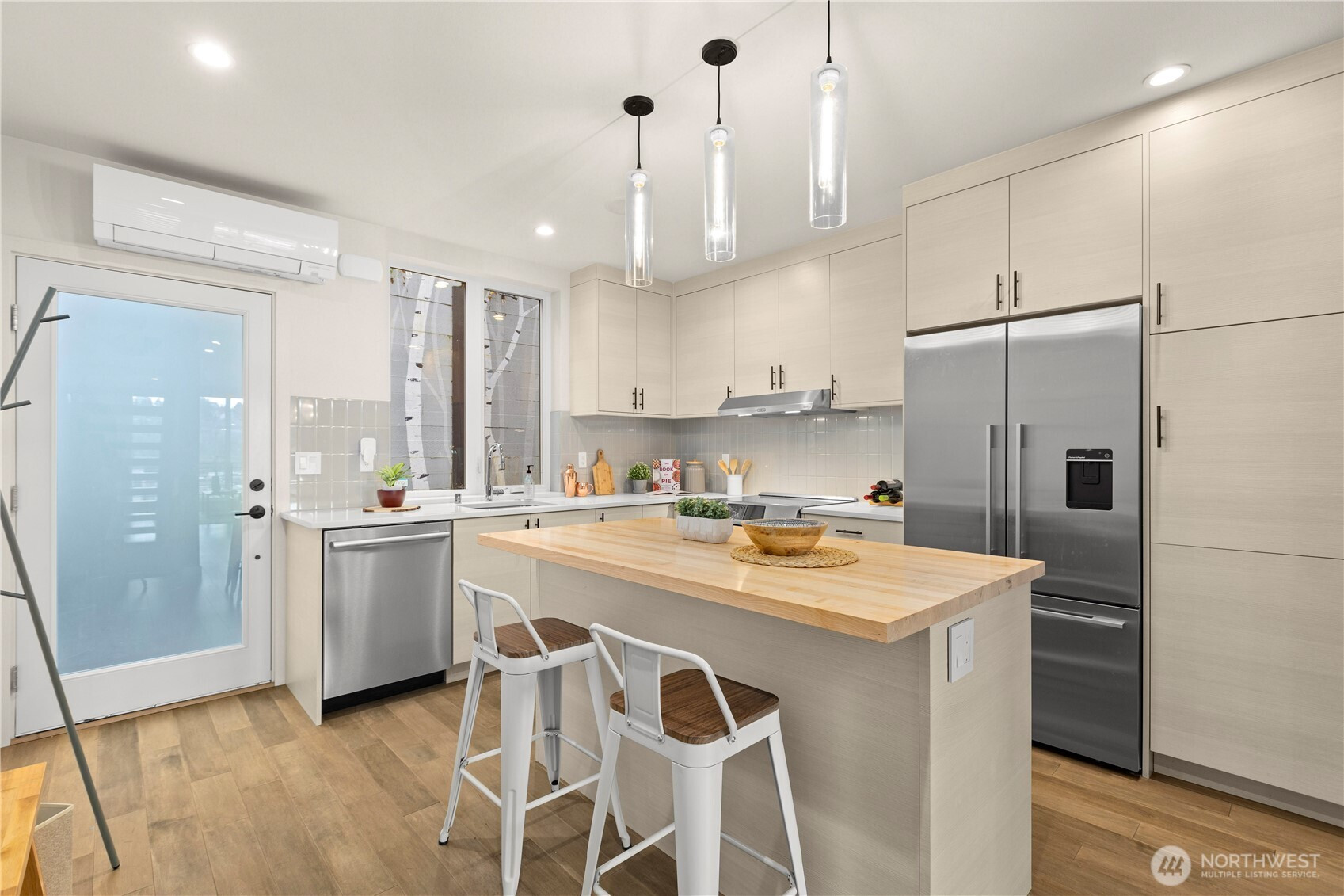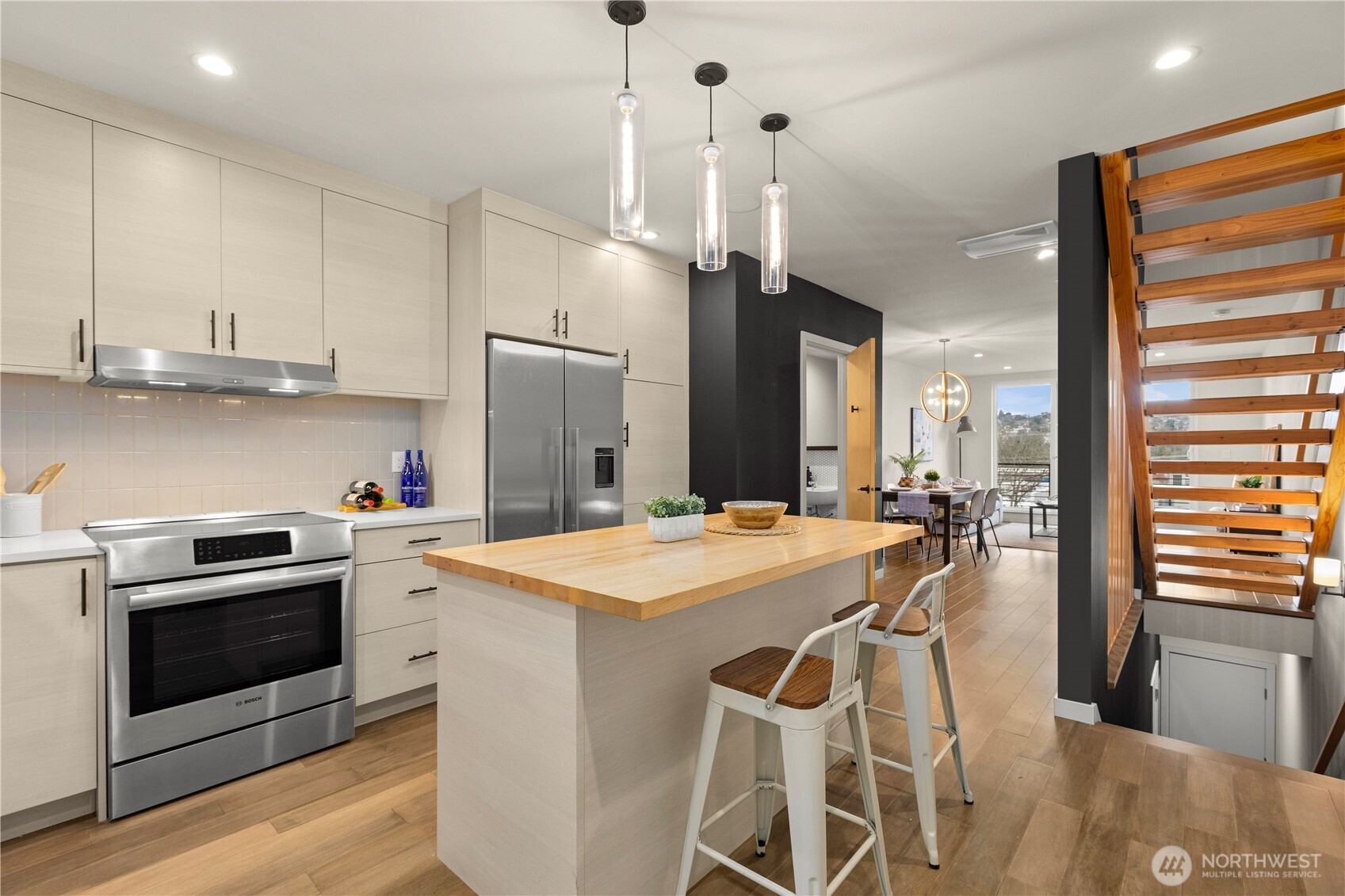 Modern, beautifully designed townhome in vibrant Queen Anne with sweeping west-facing views! This energy-efficient home features solar panels, EV charging garage, ERV fresh air system, multi-room speaker setup, and energy tracking with Sense. Live comfortably in this 3 bed, 2.25 bath spacious home with a rooftop deck. Built by a reputable green builder, with thoughtful details throughout. Easy access to 15th Ave! Extra storage via crawl space entry from garage. Close to Whole Foods, daycare, gym, and Interbay Golf Course. Easy drives to Ballard, Fremont, and SLU. Commute with ease to Expedia, Google, Facebook, and Amazon. Located in top-rated Seattle School District! No HOA!