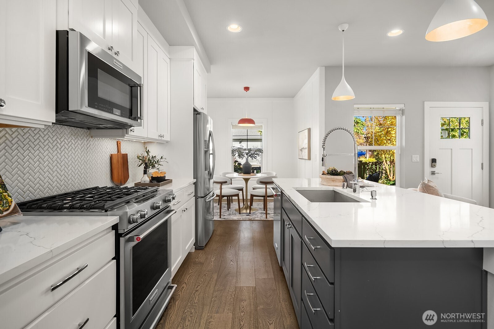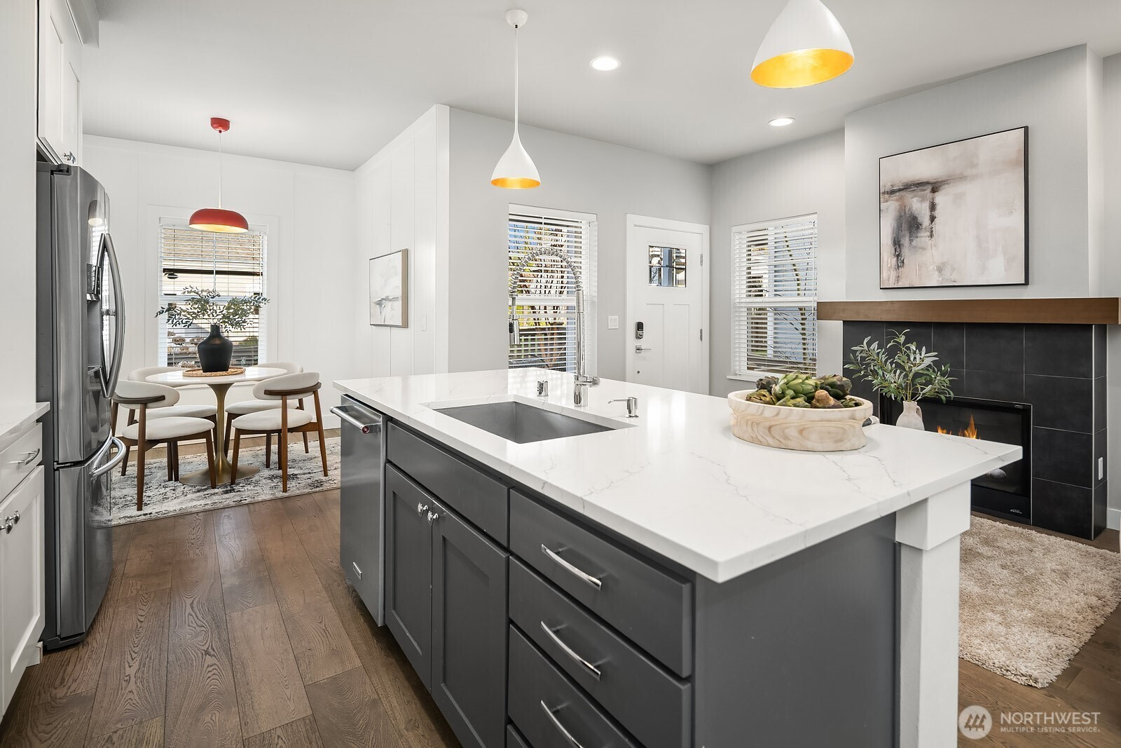 (503) 893-8874Incredible value, motivated seller and move-in ready! Welcome to a special Cottage Community in Sammamish, featuring 16 distinctive homes in a truly one-of-a-kind setting. Each residence includes a private one-car garage with additional storage in a detached garage building conveniently located just steps from the home, plus a guaranteed second parking space within the community. Enjoy the low-maintenance lifestyle of condo living with low HOA dues. The charming covered front porch opens to light-filled interiors, including a welcoming living room with a gas fireplace and a stunning modern kitchen with quartz countertops, stainless steel appliances, oversized island, walk-in pantry, and dining nook surrounded by windows. The main level also features a versatile bedroom—ideal for a home office, media, or exercise room—along with a beautifully appointed ¾ bath. Upstairs, vaulted ceilings flood the primary suite and second bedroom with natural light, accompanied by a full bath and conveniently located full-size washer and dryer. Efficient utilities include a heat pump with A/C for year-round comfort and a tankless water heater. Located in a walkable neighborhood near the YMCA, library, town center, MET Market, dining, and parks, and served by top-rated Issaquah schools. Community amenities include a clubhouse perfect for entertaining, social gatherings, and rooftop deck parties. Welcome home!