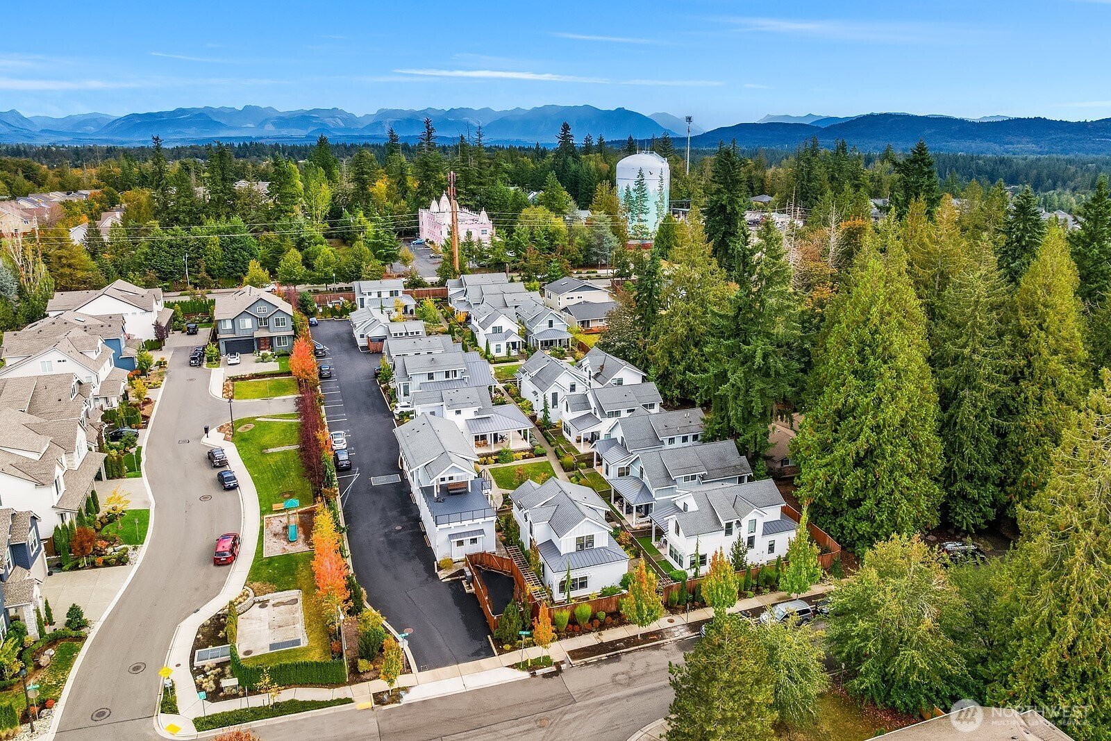 Welcome to charming Sammamish Cottages, in heart of the Plateau. Enjoy privacy of a single family home w/simplicity of condo living. Covered front porch opens to light filled living room w/gas fireplace. Open-concept kitchen featuring quartz countertops, SS appliances, large island w/bar seating, walk-in pantry & dining nook. Main floor includes bedroom/home office w/a 3/4 bath. Upstairs find 2 spacious bedrooms w/vaulted ceilings; including a primary suite w/walk-in closet & gorgeous ensuite. Full size W/D for convenience. A/C for year-round-comfort. Dedicated detached garage plus one uncovered parking stall. Low HOA Dues. Inviting community clubhouse to host events. Top rated Issaquah School District. Minutes from YMCA, Library, City Hall