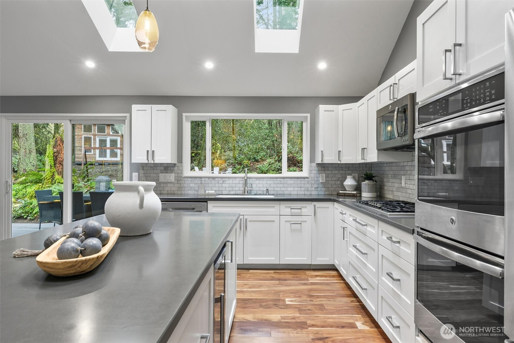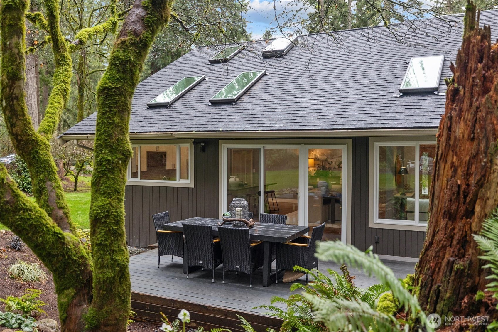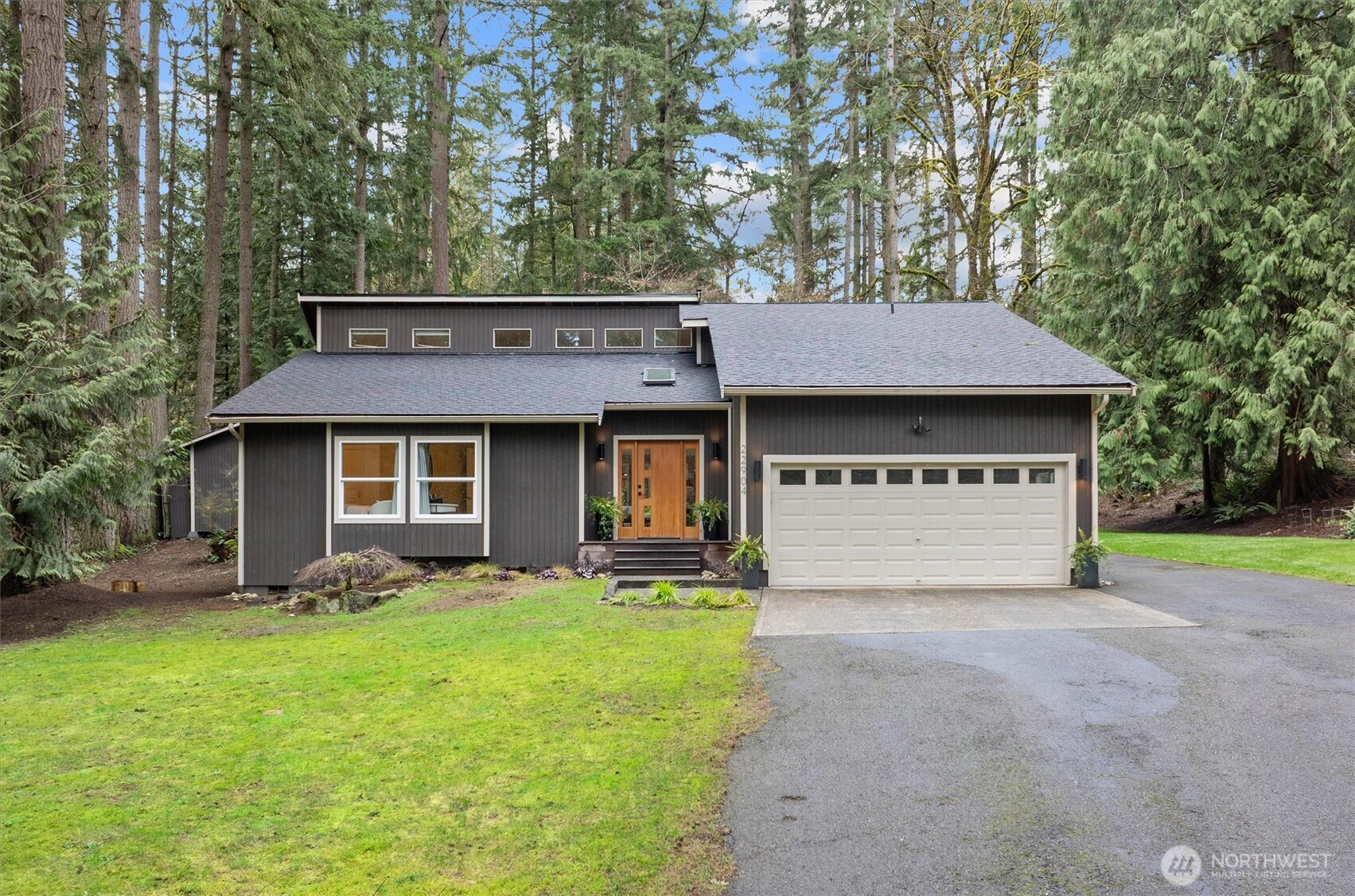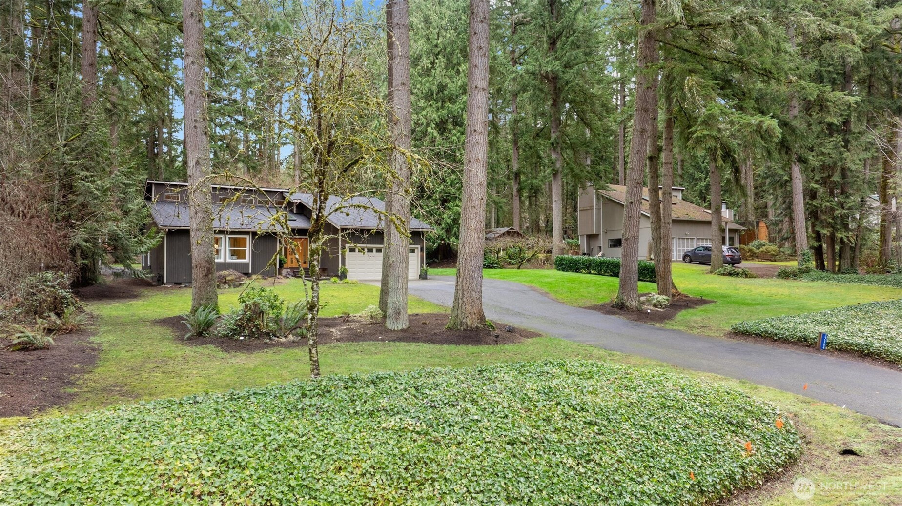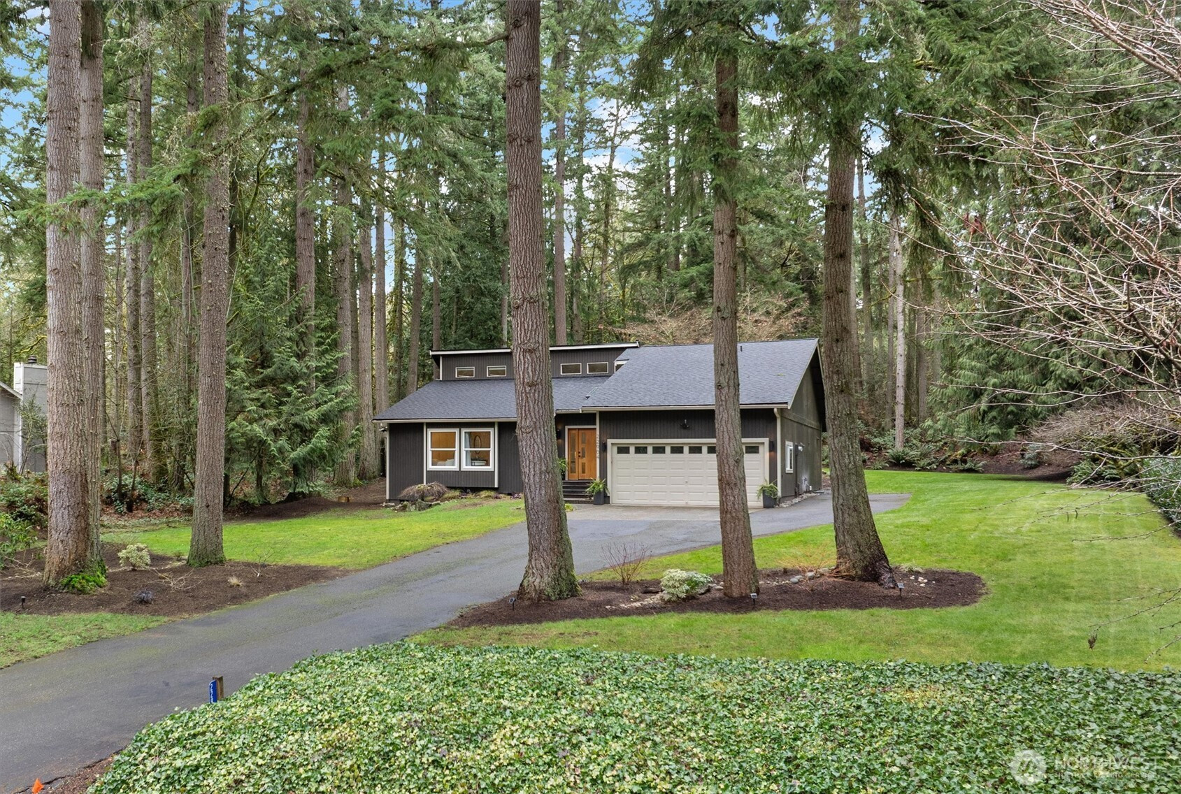 Minutes from tech centers, yet a retreat that feels worlds away. An acre of land provides plenty of space for play and pets. Soaring ceilings and thoughtful updates compel you to call this property home. The generous kitchen island is the centerpiece of the great room with dining space, entry & living room all enjoying forest views framed by picture windows. Rich acacia floors unify the space and bring the natural setting indoors. White shaker cabinetry and coordinating stainless steel appliances for beautiful function. The designer bathroom anchors the primary suite that boasts style and lovely new carpet. Soaker tub, rain shower, rich wood cabinetry and sleek lighting provide a luxe feel. Adjacent to the primary suite there are two large bedrooms and bath. Your work commute just got reduced to 100 feet! Tucked into the forest on the property, you'll find a beautiful 190 sqft studio not included in the listed square footage. Wired for work with a cozy vibe. You'll have space for an office, plus flex space for lounging or lifting. Frolic in the outdoors enjoying the large attached deck or firepit with artful wood storage. Exterior shed for garden tools. Attached 2 car garage makes groceries to kitchen a breeze. Above the garage, find an impressive storage space with access ladder. Brand new roof. Desirable Lake WA schools including quick access to Tesla STEM High. Pre-inspection reports available after viewing.