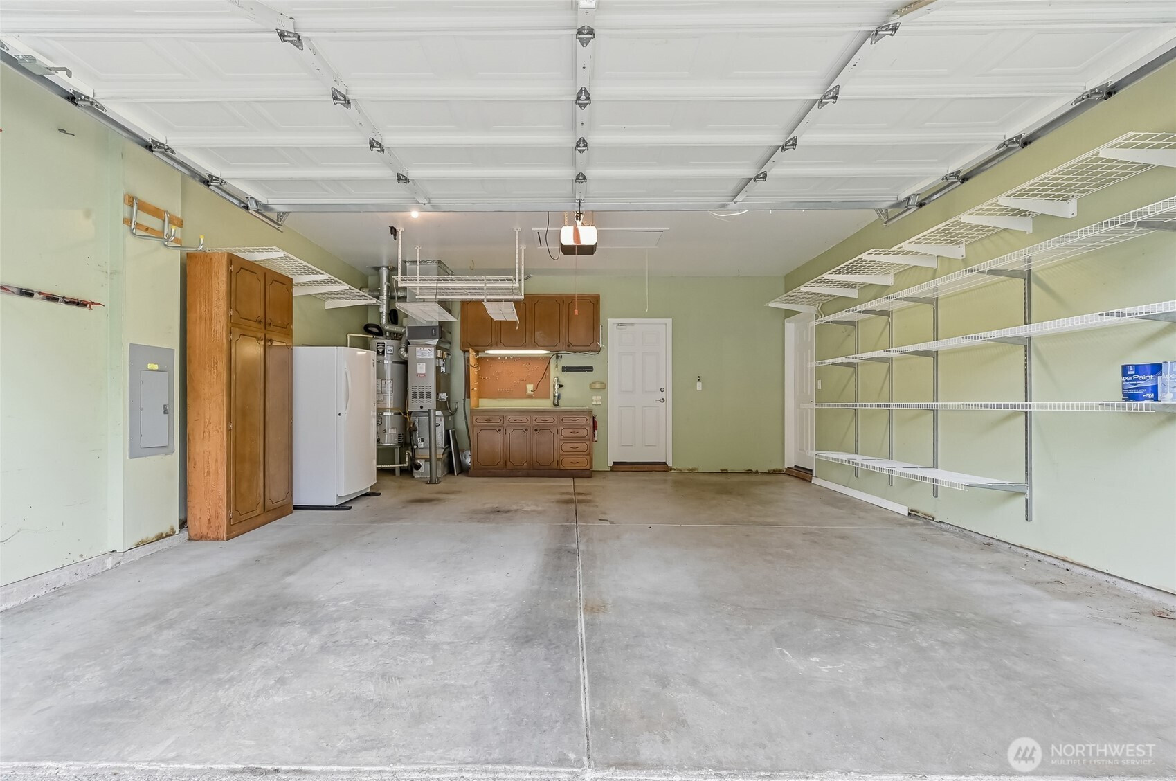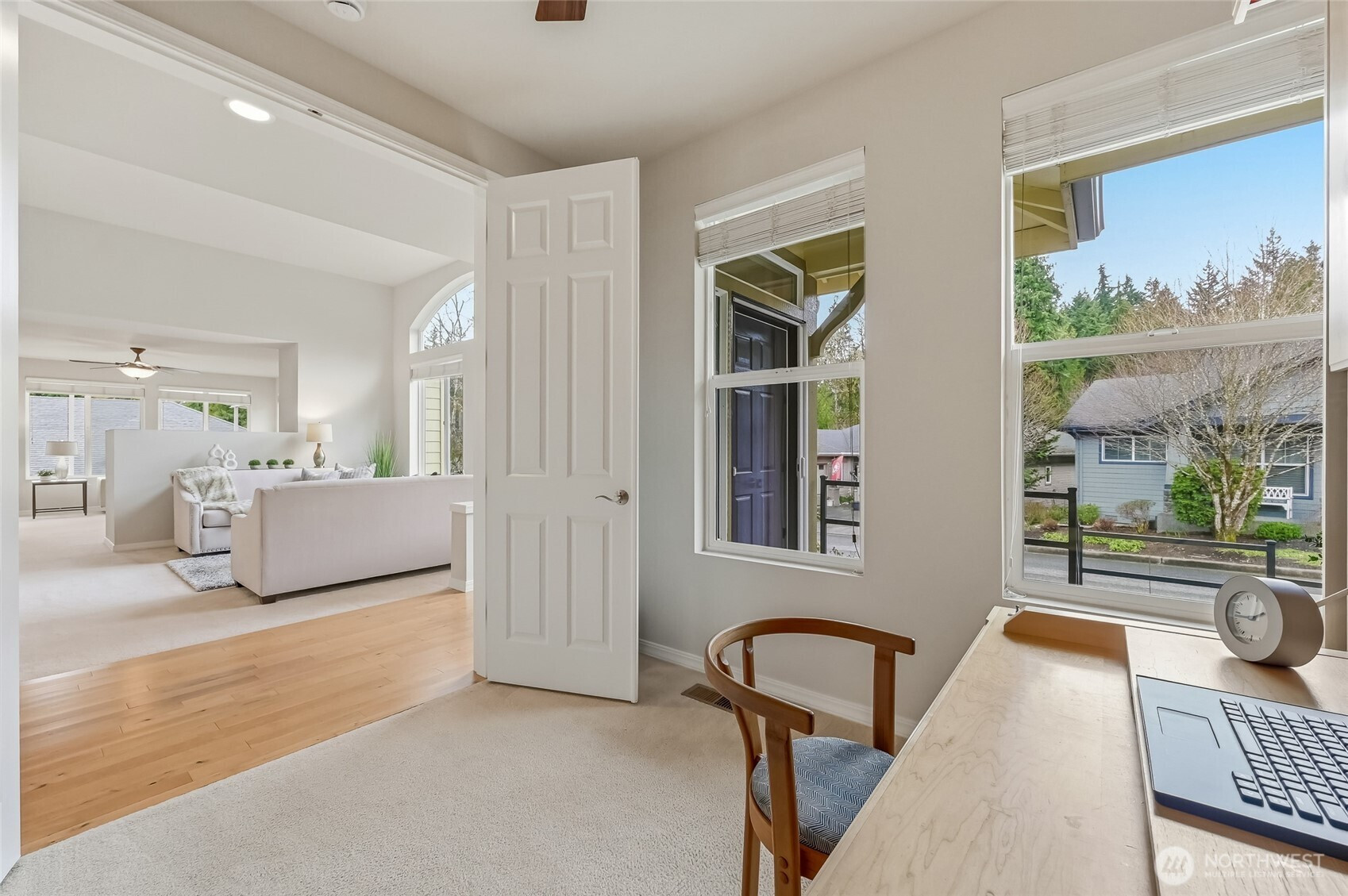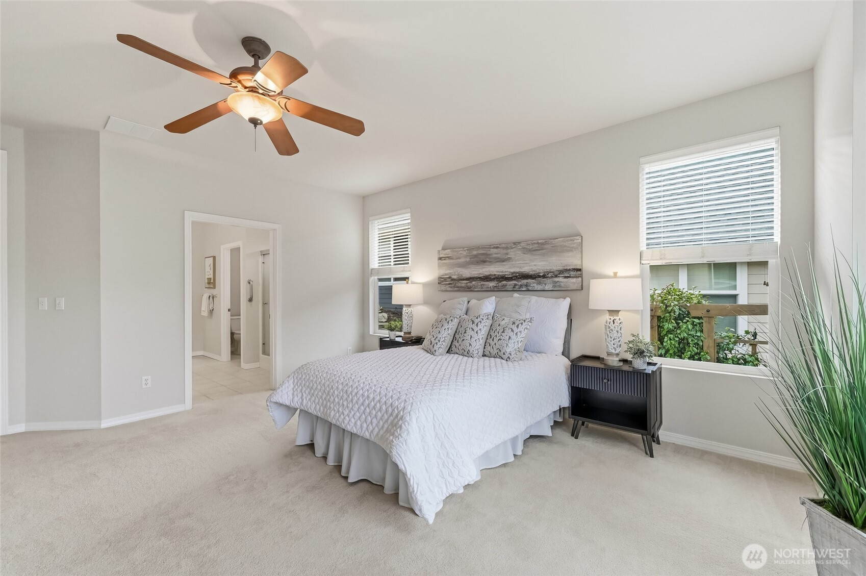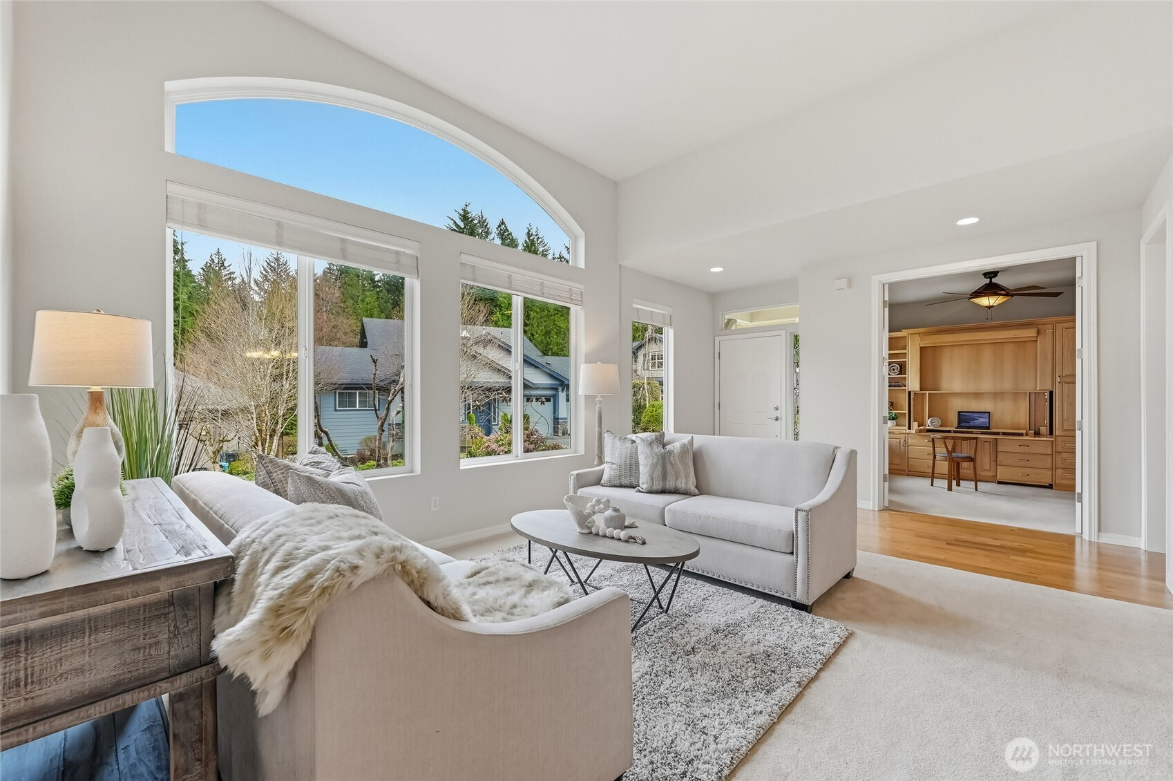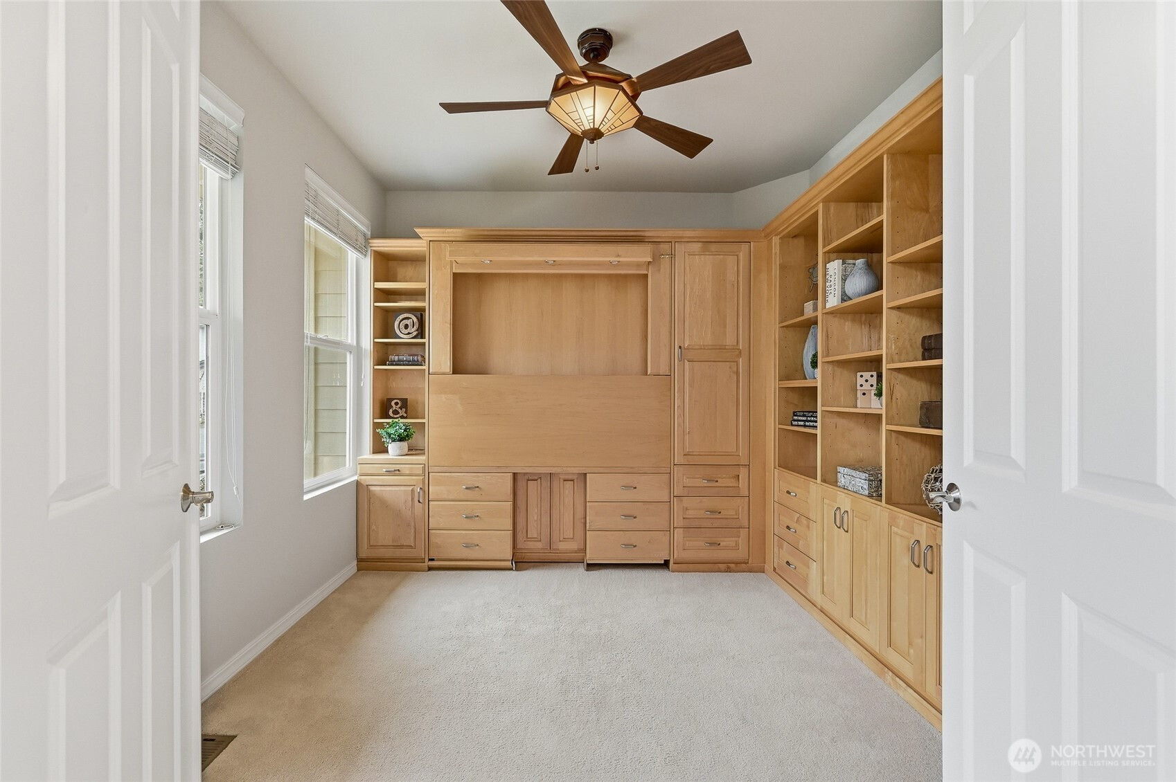 Live the 55+ Trilogy resort lifestyle in this beautiful, one level Vancouver plan home that showcases the perfect balance of privacy and space. Set on a beautiful corner lot, above the street, you’ll enjoy light filled spaces and big sky views. Built for entertaining with a large dining room w/a beautiful built-in buffet & display cabinet and living room that are open to the great room so there is plenty of room to host holiday dinners and neighborhood get-togethers. Kitchen with ample cabinetry, large island w/a 2nd row of cabinets below, pendant lighting, a double pantry and breakfast nook. Cozy gas fireplace & large TV niche in the family room. Step out to the oversized patio, w/built-in seating and a clear cover where you can relax with friends and BBQ year-round. Carefree living with front & side yard maintained by HOA. The primary bedroom easily accommodates a king-sized bed and full-sized furniture. The en-suite bath has a dual sink vanity, step-in shower, private toilet room and a walk-in closet with organizers. The office has a built-in Murphy bed/desk combo and a wall of bookcases and storage. Second bedroom is adjacent to the full bath provides your guests with their own retreat. Laundry room has a utility sink. The garage has a work bench and overhead storage. Room to park 4 cars in the level driveway! The PNW’s flagship 55+ community w/a beautiful clubhouse, fitness center, indoor pool & walking track, pickleball & tennis courts and walking trails. Pre-inspected