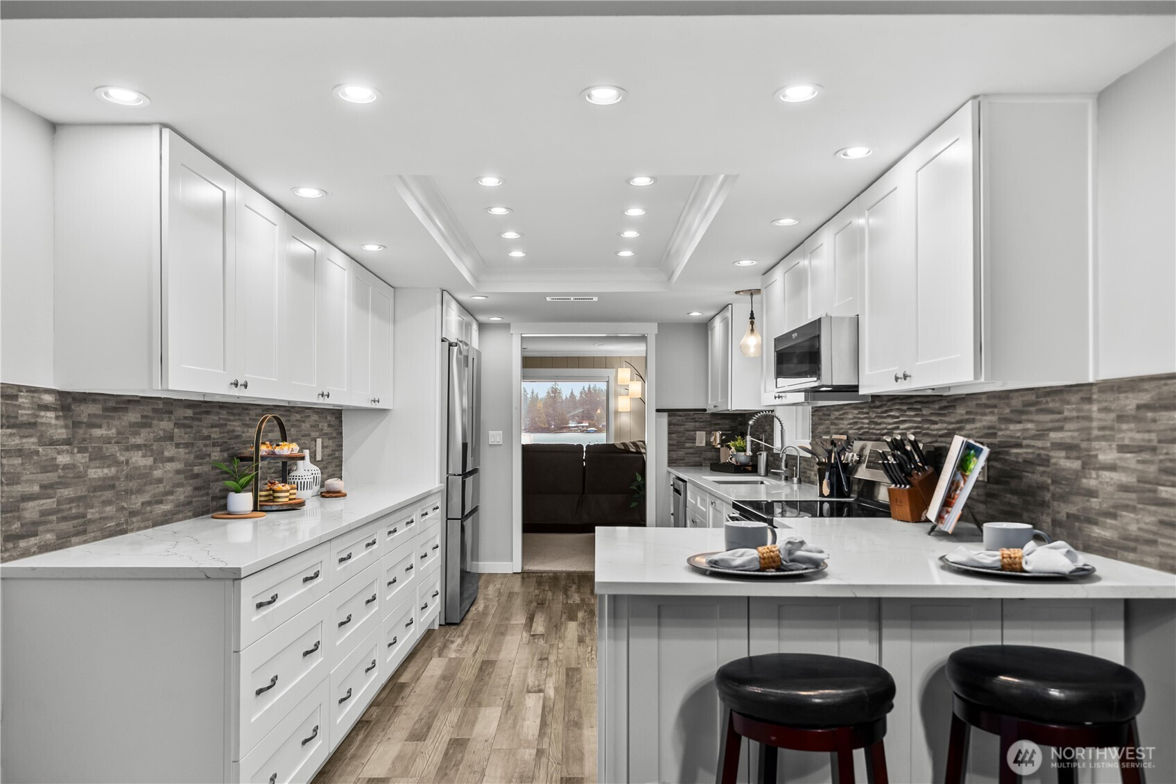 Sun soaked days, sparkling water, and the kind of view that makes everyday life feel like a getaway, this stunning Lake Sawyer waterfront delivers the lifestyle buyers dream about. Set on approximately one third acre with coveted southwestern exposure, this move in ready paradise was designed to celebrate the lake from nearly every angle. The main level offers open living spaces filled with natural light, expansive windows framing the water, and a beautifully remodeled kitchen completed in 2022 with quartz counters and updated finishes. Two main floor bedrooms, an updated bath, and easy flow to outdoor living spaces create flexibility for everyday living and entertaining. Upstairs, the primary suite is privately positioned at the back of the home to fully capture the expansive lake views. This oversized retreat features a large sitting area, ideal for relaxing or converting to a fourth bedroom, along with a beautifully remodeled five piece bath completed in 2024. Additional upgrades include a newer roof with transferable 10 year warranty, retractable awnings, heat pump with A/C, high end TimberTech PVC deck, and new hot tub. Outside, enjoy a dock with boat lift, beautiful low maintenance landscaping, sprinkler system, fire pit area, large front yard, tons of parking, detached garage, and dedicated RV parking. Heated shop area with half bath and mini kitchen offers added flexibility and possible future ADU potential. Tahoma Schools complete this exceptional lakefront setting.