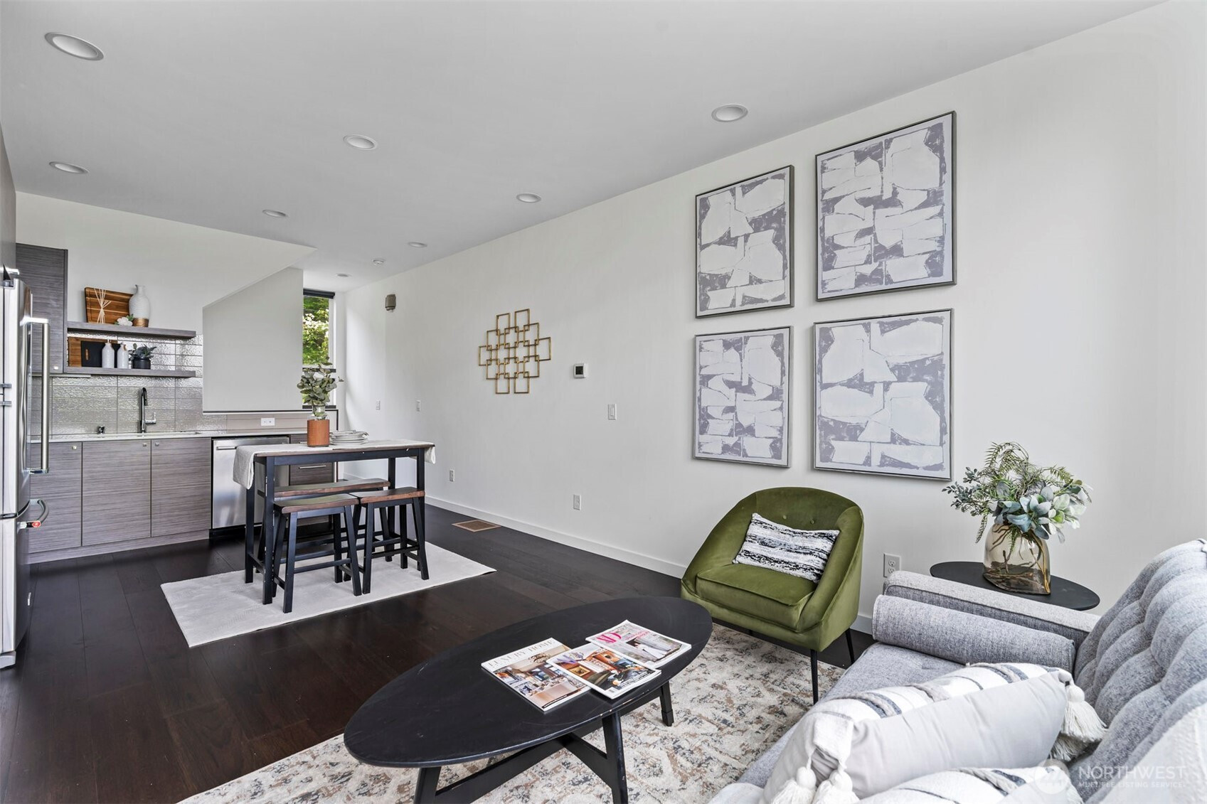 This pristine end-unit contemporary offers smart design and easy urban living. Light-filled and open, with an ideal bedroom layout: a private primary suite upstairs and a second bedroom on the ground level—perfect for guests, a home office, or rental flexibility. The main level features a sleek, modern kitchen with streamlined cabinetry and an airy living space designed for both everyday living and entertaining. Head up to your private rooftop deck to grill with friends and take in mountain views, or get your hands dirty in your own pea-patch garden below. Includes a dedicated parking space with EV charger. Move-in ready, No HOA dues, Walk Score of 88! Minutes to Madison Valley favorites, Capitol Hill, Downtown, Madison Park, and the Washington Park Arboretum. And the 'icing on the cake'—No HOA dues!! A rare opportunity you don’t want to miss!