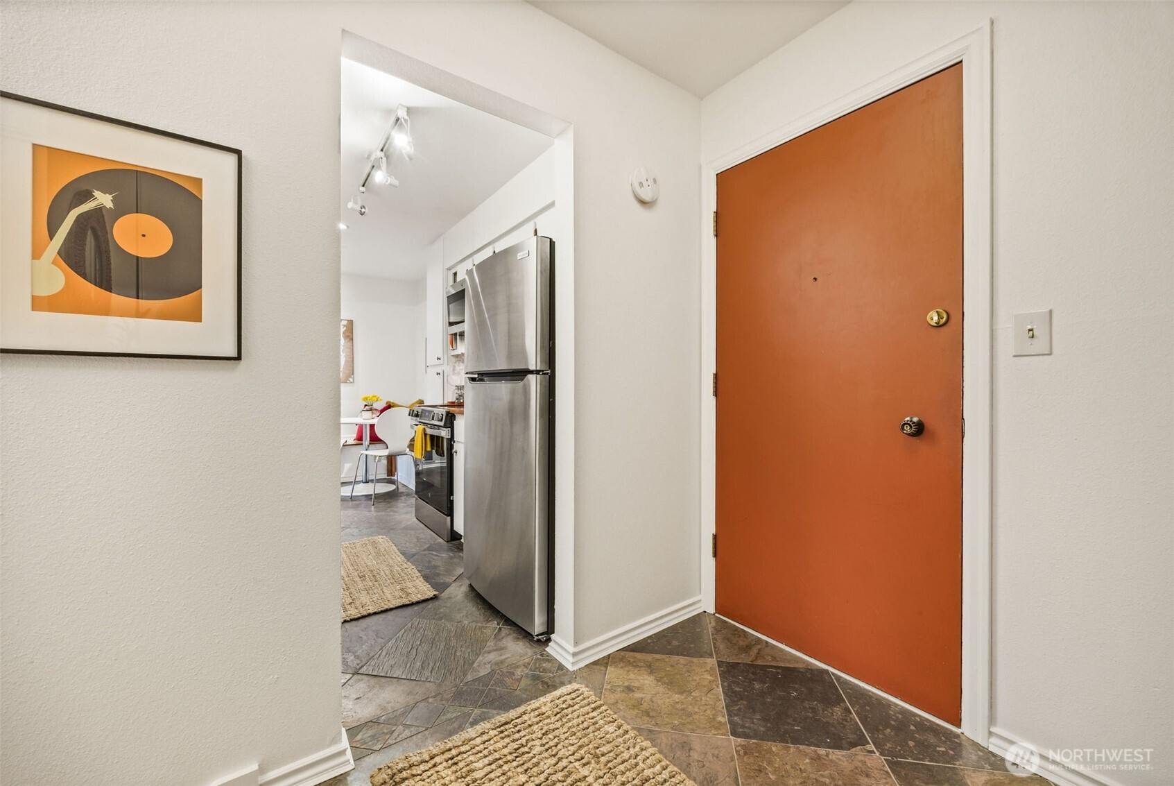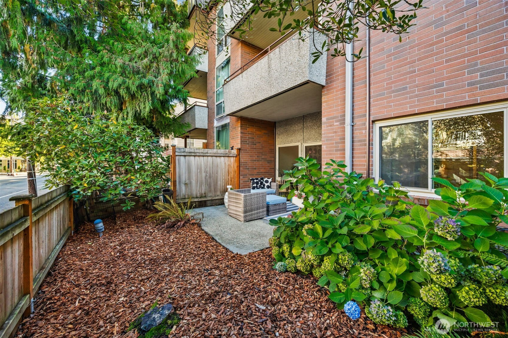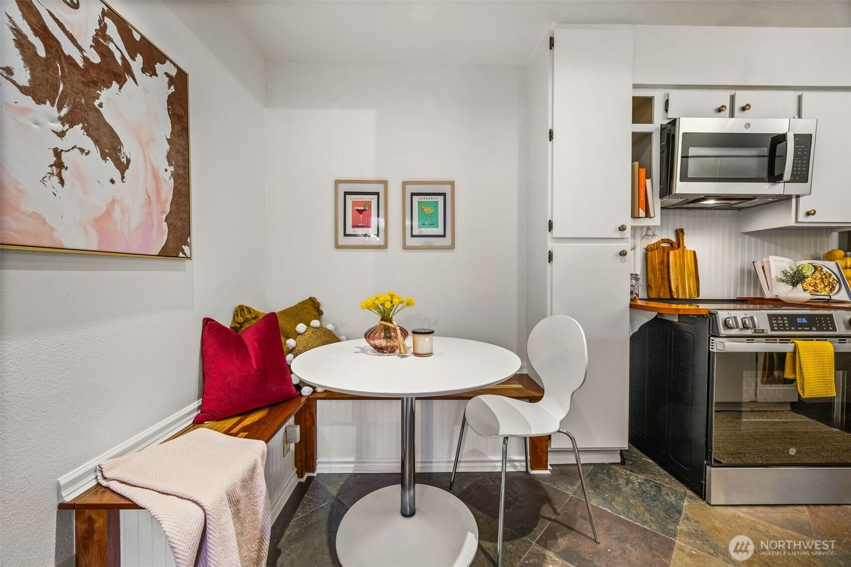 Rare Ravenna location near lightrail, Ravenna Park and local shops and restaurants. Enjoy your bright Mid-Century condo with a bedroom spacious enough to fit a king-sized bed, adorable built-in eating nook off the kitchen and an open concept living space. Kitchen features brand new stainless steel appliances and spacious countertops. Generous partially covered, fenced in patio to enjoy year round! Plenty of storage space in unit. Reserved covered parking space and storage locker with plenty of off street parking as well. Elevator and laundry room on-site.
