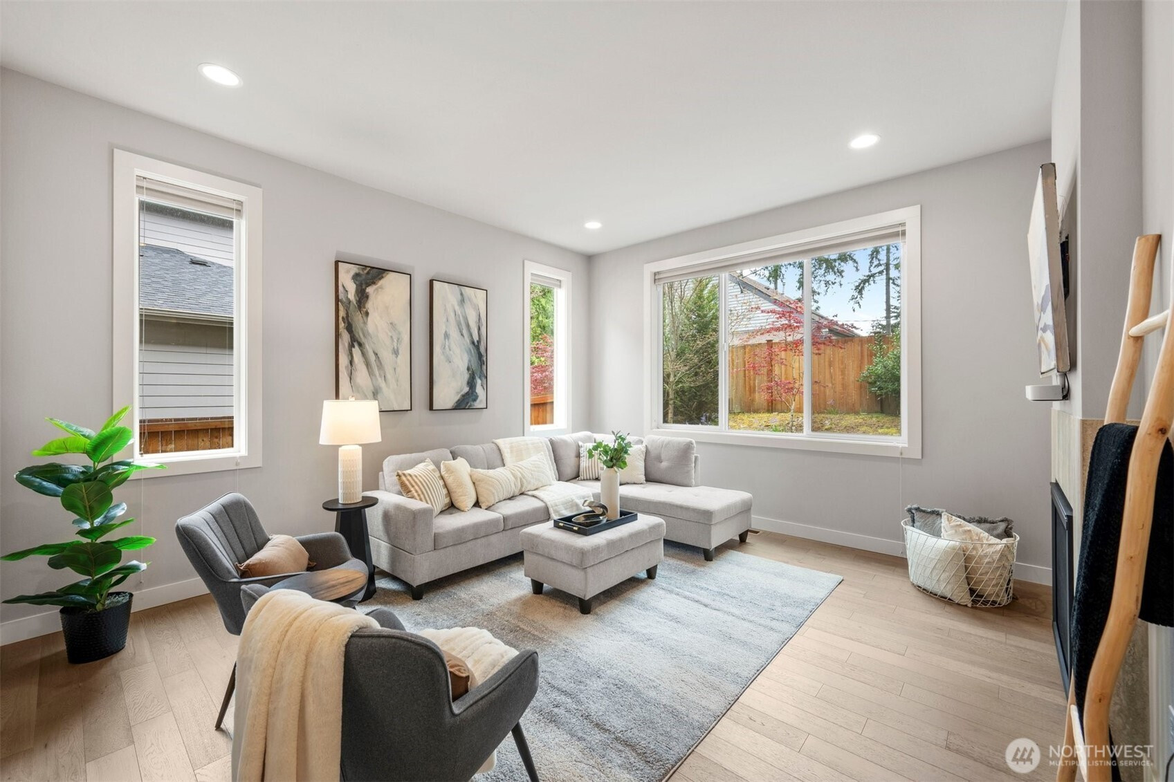 Welcome to this stunning 2017 home in Shoreline’s sought after Briarcrest community, offering modern style, soaring ceilings, oversized windows, and an open-concept design filled with natural light. The chef’s kitchen is the heart of the home, featuring a huge marble island, custom cabinetry, and beautiful finishes throughout. The extra-large primary suite is a true retreat with a spa-inspired bath, complete with a waterfall shower and separate soaking tub. Central A/C adds year-round comfort. Custom lighting throughout, a downstairs office, and a spacious bonus/media room with high-end projector and surround sound system provide exceptional flexibility. Enjoy effortless entertaining on the patio with a two-sided fireplace and a mounted TV that stays. Complete with a 2-car garage, extra storage, and an easy commute with quick access to I-5 and the new light rail station. This exceptional home blends comfort, function, and style in a prime location.