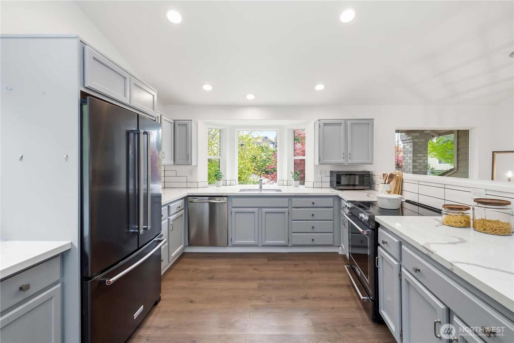 Discover the perfect blend of comfort and style in this stunning split-entry home located in Maple Valley's beloved Highlands At Lake Wilderness community. The main floor invites you in with a beautifully updated kitchen that flows seamlessly into the dining area. You can easily gather in the spacious living room, which is anchored by a cozy wood-burning fireplace perfect for crisp evenings. Head upstairs to find your private daily retreat. The primary suite features a full en suite bathroom for ultimate relaxation. Two additional guest rooms and a full guest bath provide plenty of space for guests or a quiet home office. The versatile lower level expands your living options. This floor includes a large great room, a private fourth bedroom, a full bathroom, and a dedicated utility room. You can use this flexible space for multi-generational living, hosting weekend guests, or creating the ultimate entertainment zone. Schedule your tour today and experience everything this remarkable Maple Valley property has to offer. Located in the Tahoma School District! A/C and Pre Inspected!