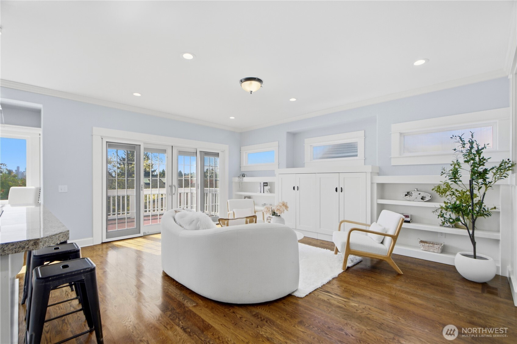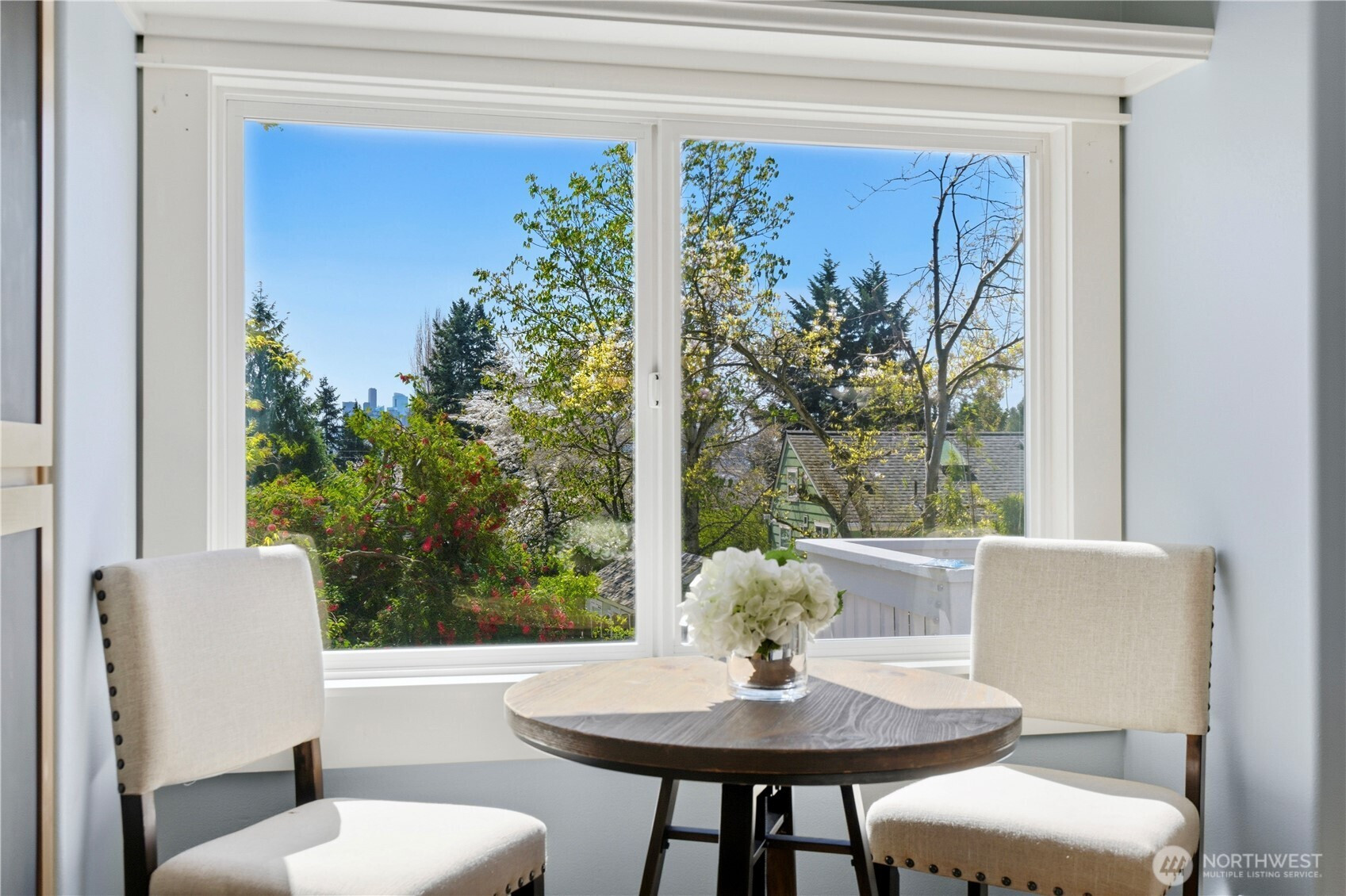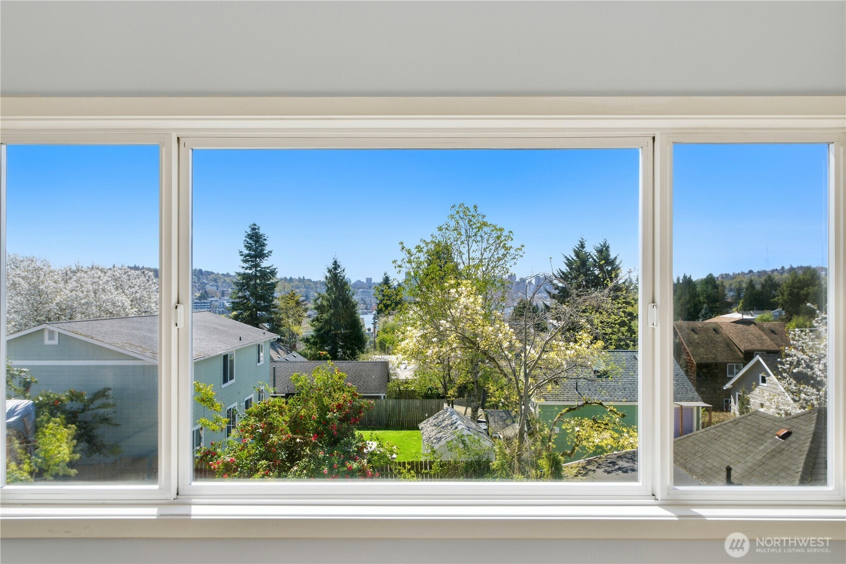 Experience the pinnacle of sophisticated urban living in this 2001-built Wallingford residence, featuring stunning city skyline views and soaring high ceilings. Perfectly positioned steps from neighbor cafes and the John Stanford, Hamilton, and Lincoln school corridor, this 3,000 sq ft, 4-bedroom home boasts pristine maple and oak hardwoods, premium wool carpets, and extensive custom bookshelves. The gourmet kitchen flows to a private deck via Pella gliders. Highlights include a primary sanctuary, versatile finished lower level, new roof, and Central AC. With a 92 Walk Score near the Burke-Gilman Trail and Gas Works Park, you are just 10 minutes from SLU and 20 minutes from Microsoft. A modern classic, meticulously maintained and ready for its next chapter.