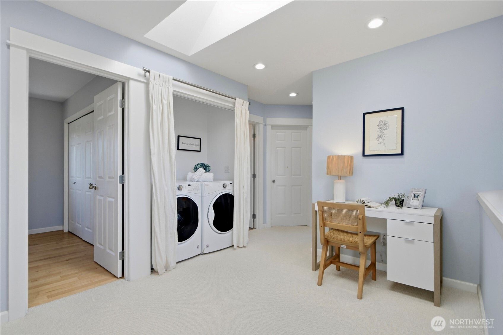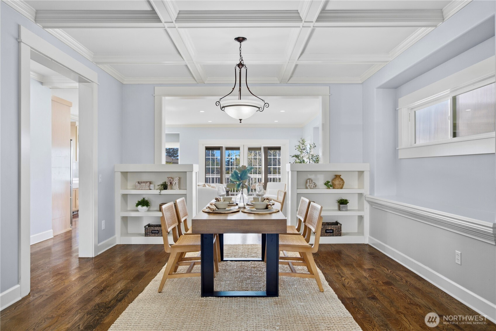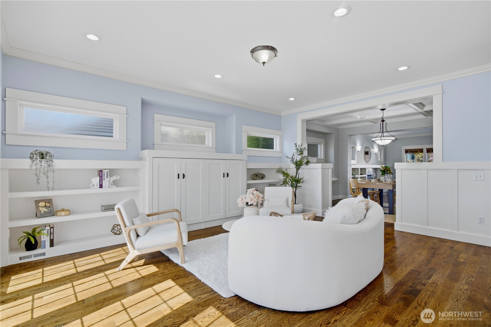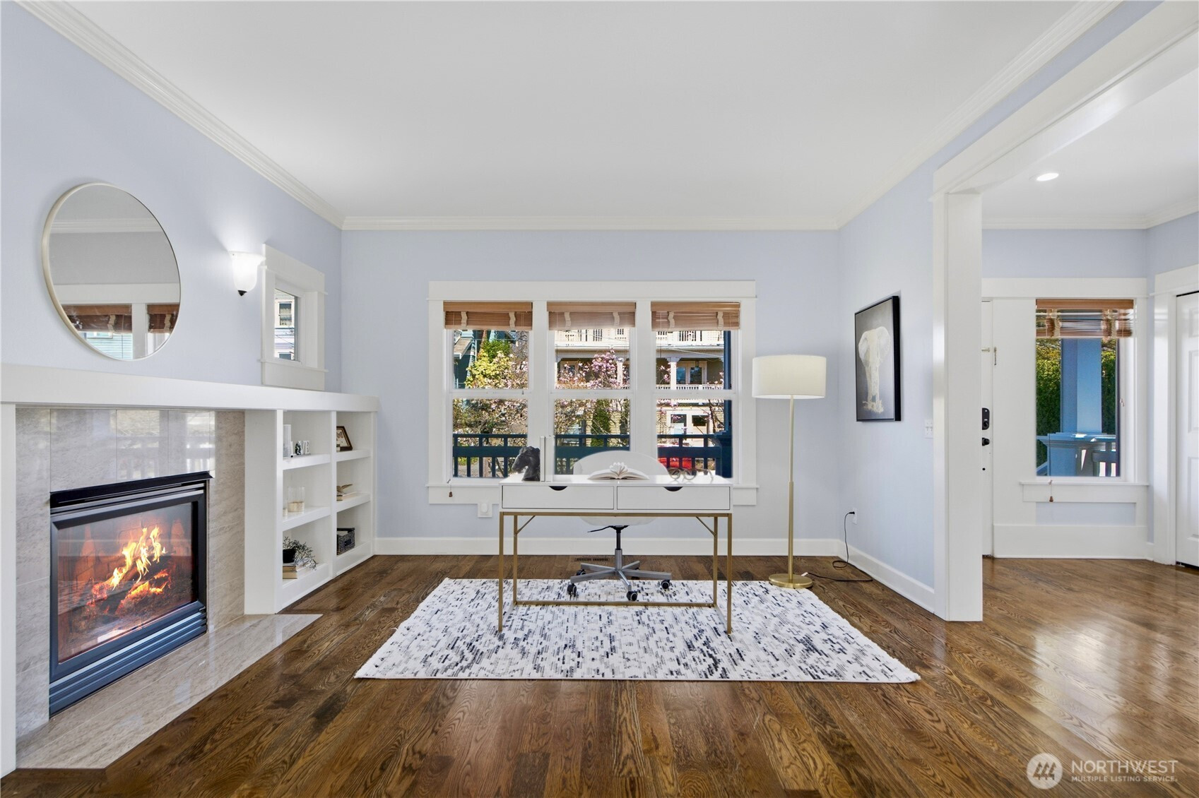 Experience the pinnacle of sophisticated urban living in this 2001-built Wallingford residence, featuring stunning city skyline views and soaring high ceilings. Perfectly positioned steps from neighbor cafes and the John Stanford, Hamilton, and Lincoln school corridor, this 3,000 sq ft, 4-bedroom home boasts pristine maple and oak hardwoods, premium wool carpets, and extensive custom bookshelves. The gourmet kitchen flows to a private deck via Pella gliders. Highlights include a primary sanctuary, versatile finished lower level, new roof, and Central AC. With a 92 Walk Score near the Burke-Gilman Trail and Gas Works Park, you are just 10 minutes from SLU and 20 minutes from Microsoft. A modern classic, meticulously maintained and ready for its next chapter.
