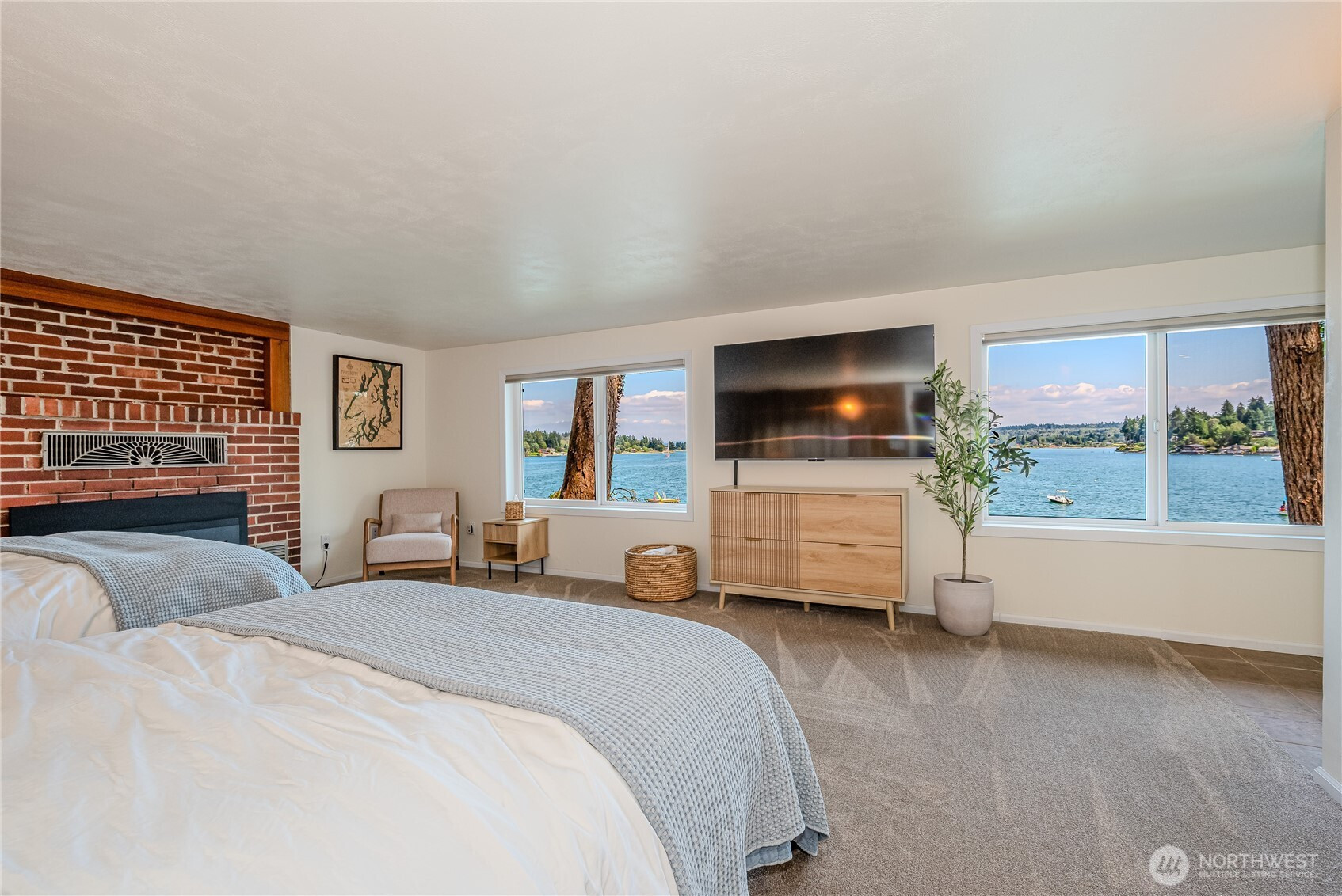 Enjoy waterfront living on inner Quartermaster Harbor with this charming 3-bedroom home set on a desirable medium-bank shoreline. Take in peaceful harbor views and the calm waters that make this location ideal for boating, kayaking, and paddleboarding. The home features comfortable living spaces, abundant natural light, and a layout designed to capture the beauty of the water. Two gas fireplaces, one on the main floor and one on the lower floor, create warm, inviting living spaces for relaxing or entertaining. Main floor has a spacious bedroom and full bath. The lower level has a bedroom with 1/2 bath ensuite and a primary bedroom with a 3/4 remodeled bath, as well as a walkout to the lower level. The home is currently being used as a successful VRBO and is being sold with all the furniture and all the furnishings! Perfect if you want to continue with the VRBO or if you just want to turn the key and enjoy your waterfront paradise. Steps down to the bulkhead where you can relax around a firepit or front row seats for the 4th of July. A storage shed is also located down by the water's edge for all your water toys. Complete with a permitted mooring buoy too! So many upgrades & updates, including mini-splits w/heat pump to provide warm heating and comfort cooling. Ideally located within walking distance to the Yacht Club & Marina and the bus line running right by your front door! Come enjoy the charm of waterfront living on one of the Island's most sought after locations.