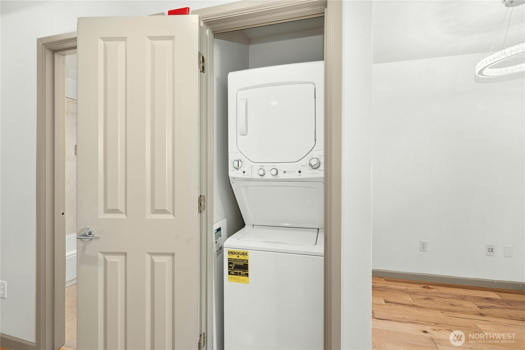 The Pomeroy is among the city’s coolest boutique buildings, with a secure entrance into a beautiful vestibule and lobby. As you enter you can't help but to notice the quality finishes and furnishings that have been curated to set the tone for the building; it is impressive to both guests and residents alike. Constructed of cement, steel and brick, this building was built to be both visually appealing, and to stand the test of time. It is just a short walk to the world-famous Pike Place Market, the waterfront, and the many restaurants, shops, and attractions that Belltown is famous for. This home is located on the 5th floor with an easterly view of the city through a full wall of windows, allowing the natural light to fill the space. The floorplan is smart and efficient with high ceilings, solid hard wood flooring, and a full-sized kitchen that doesn't skimp on features like granite counters, a gas cooktop, maple cabinetry, and a sprawling eating bar. The new (and paid for) rooftop deck is nothing short of spectacular with its 360-degree views of the city, sound, Olympics, and Mt. Rainier. There is no wonder it was voted Seattle's Best Roof Top Deck. Imagine barbequing, entertaining, or just hanging out with a glass of wine enjoying the view. The owners at the Pomeroy enjoy the lowest HOA dues per sq ft in the city; full disclosure resale certificate is available immediately for review. A secured one car deeded parking space is included, with a large adjacent storage room.
